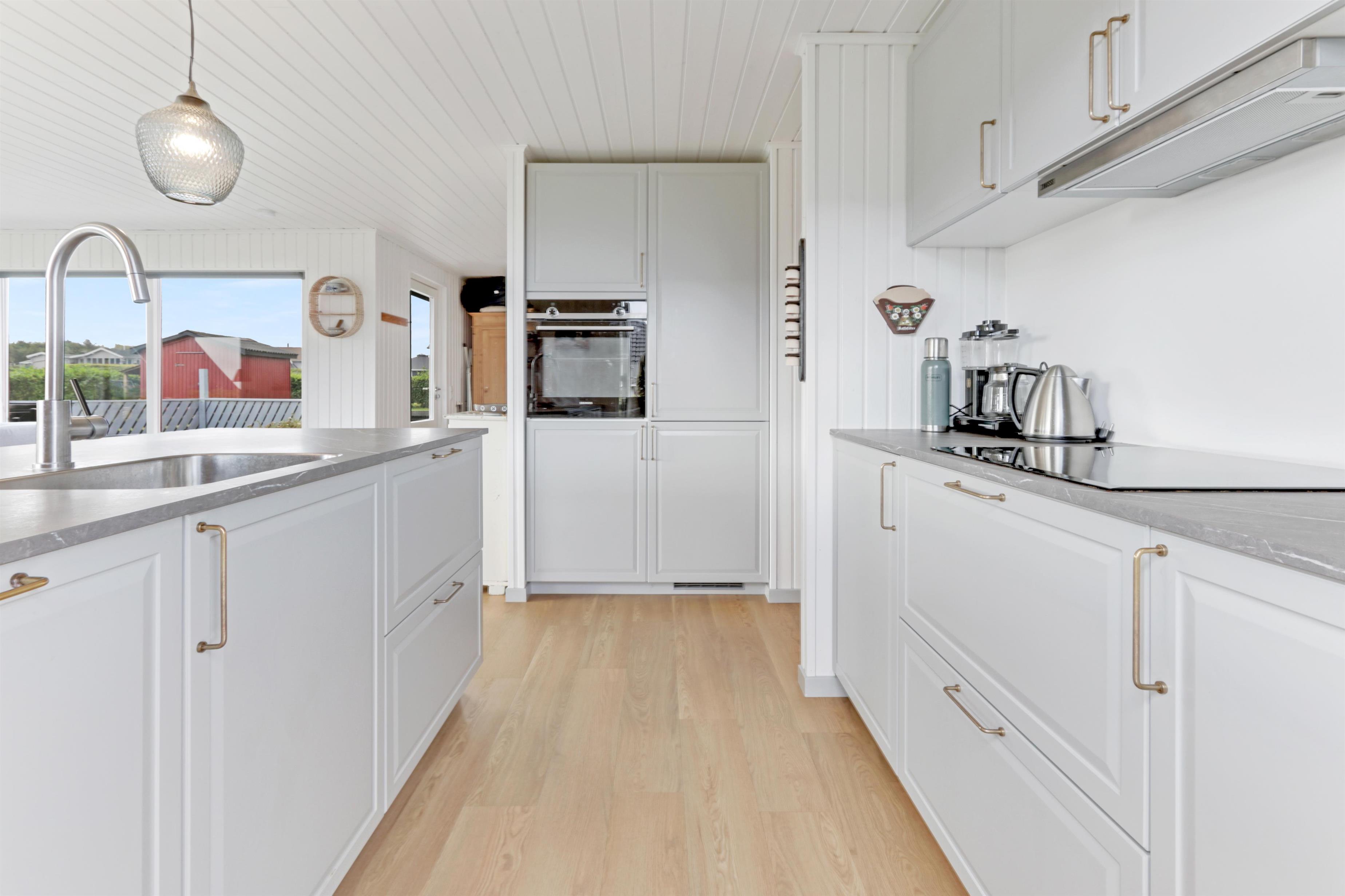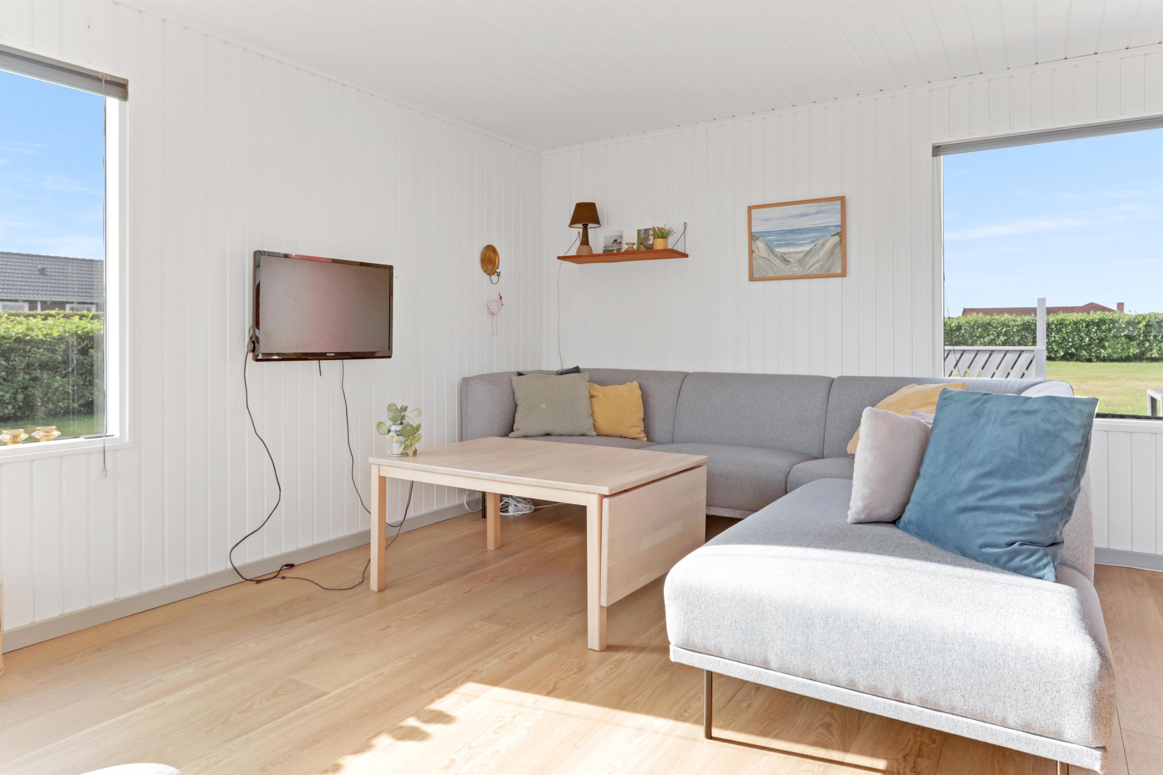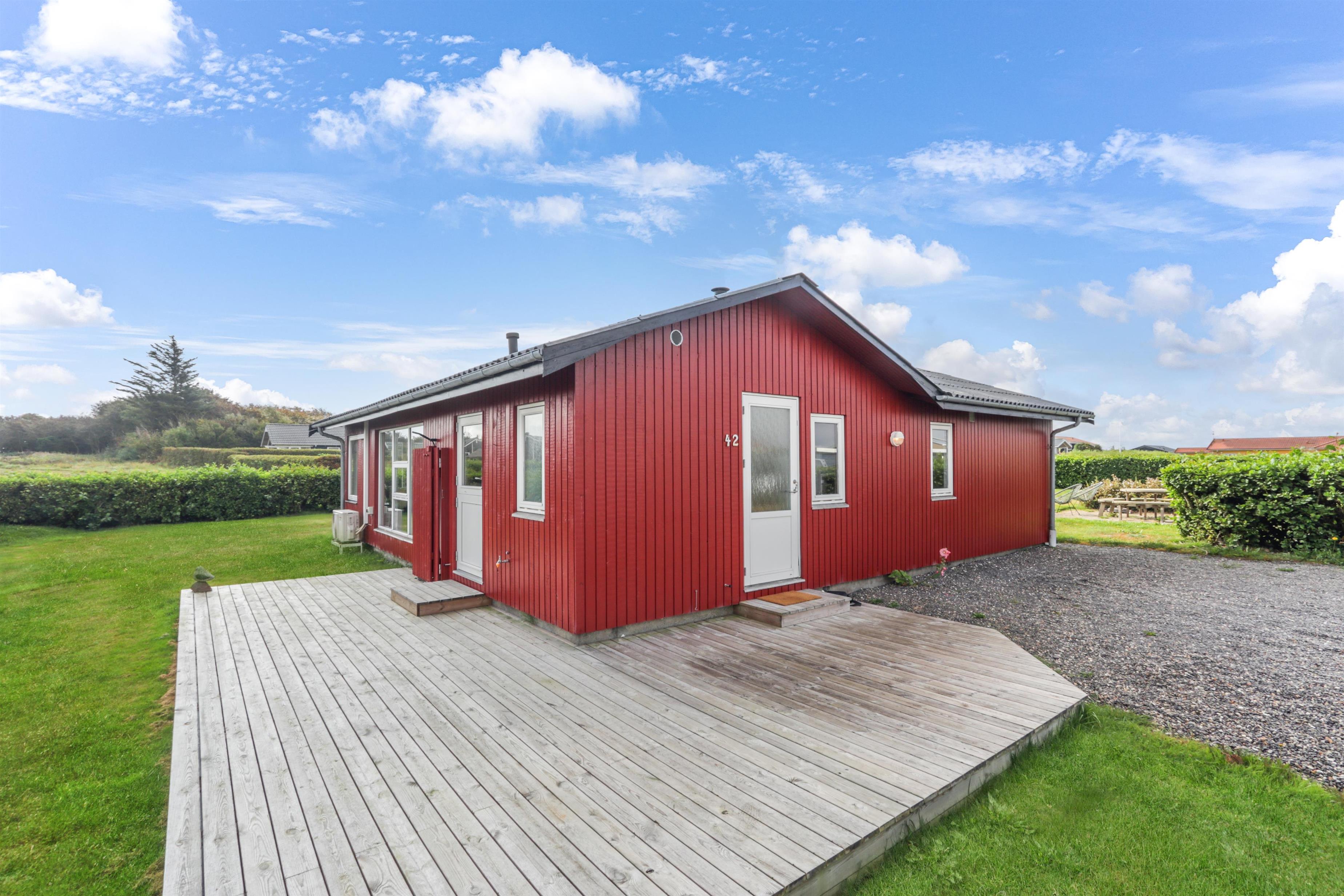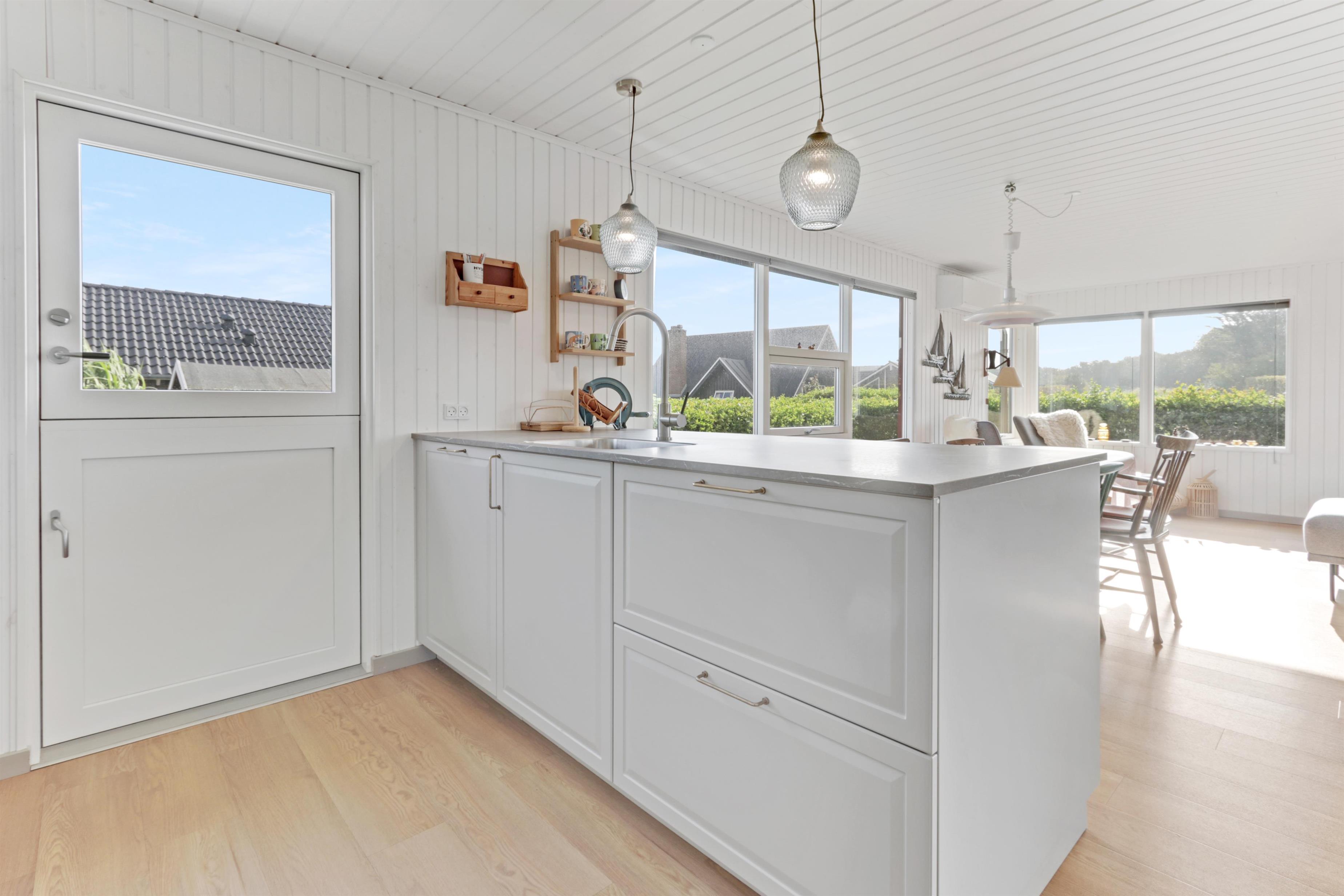 Schönes Ferienhaus von 73 qm mit 3 guten Schlafzimmern (1DB, 1DB, 2E). Ein kleiner Eingang heißt Sie willkommen. Kombinierter Wohn- und Küchenbereich, der im Jahr 2022 modernisiert wurde. Der schöne Küchenbereich ist hell und freundlich und verfügt über alle Haushaltsgeräte: Glaskeramik-Kochfelder, Einbaubackofen, Kühlschrank mit Gefrierfach und Geschirrspüler. Das Wohnzimmer mit guten Polstermöbeln, Esstisch, Fernsehen nur mit Chromecast und HDMI-Buchse- es gibt keine deutschen Programme. Wenn Sie ein Mobiltelefon oder ein anderes Gerät bei sich haben, können Sie streamen, was Sie abonniert haben. Es gibt auch ein CD/Radio. Neuer, schöner Holzofen, der zusammen mit der Wärmepumpe dazu beiträgt, die Heizkosten zu senken. Praktische Hartböden im Wohnzimmer und in der Küchenecke. Kleines Badezimmer mit Dusche, Toilette und Waschbecken. Haustiere sind nicht erlaubt. Nichtraucher-Haus.
