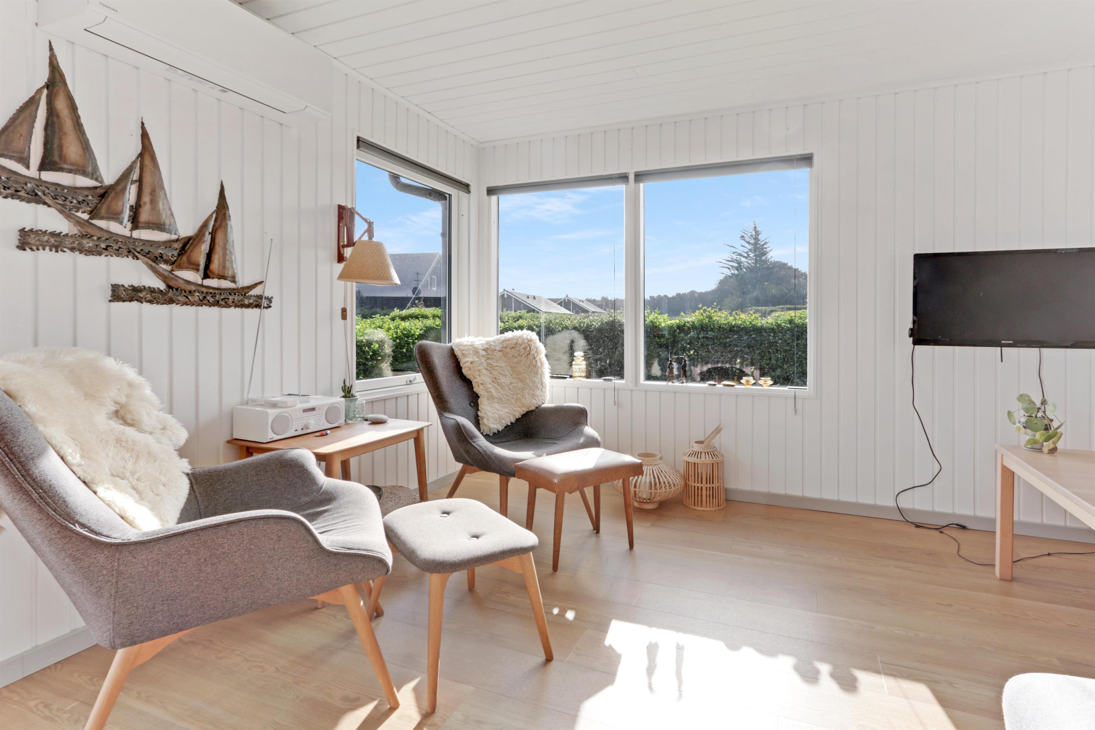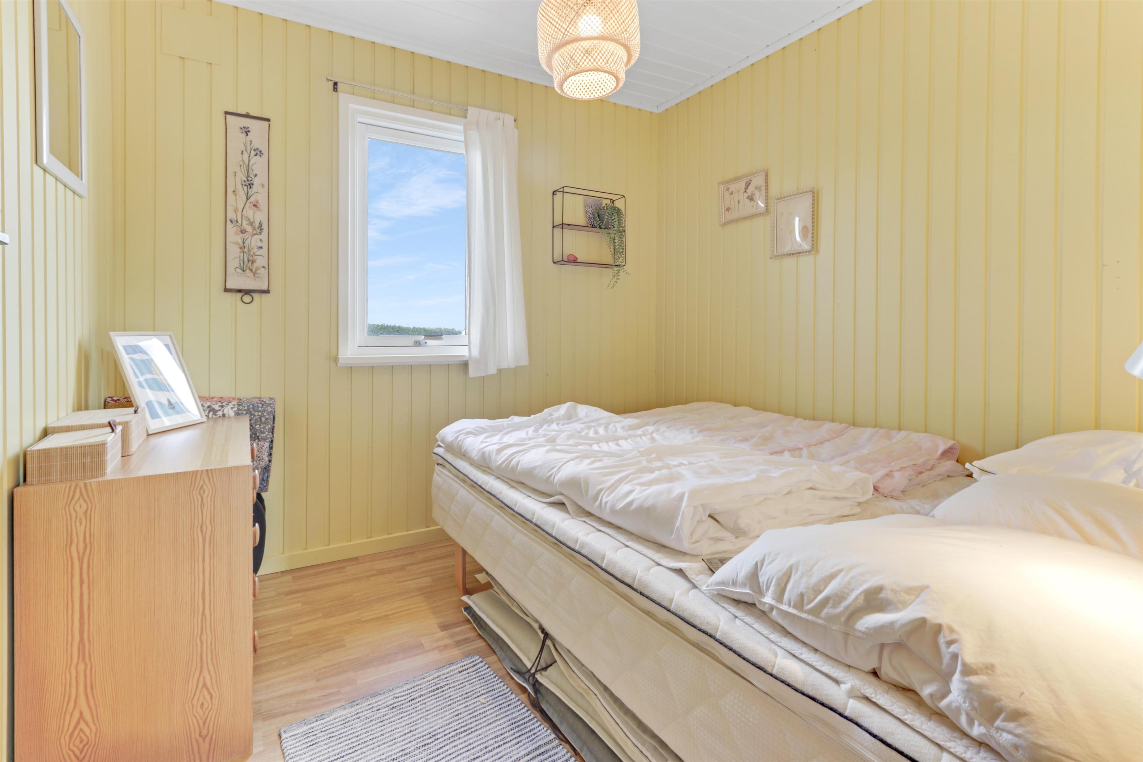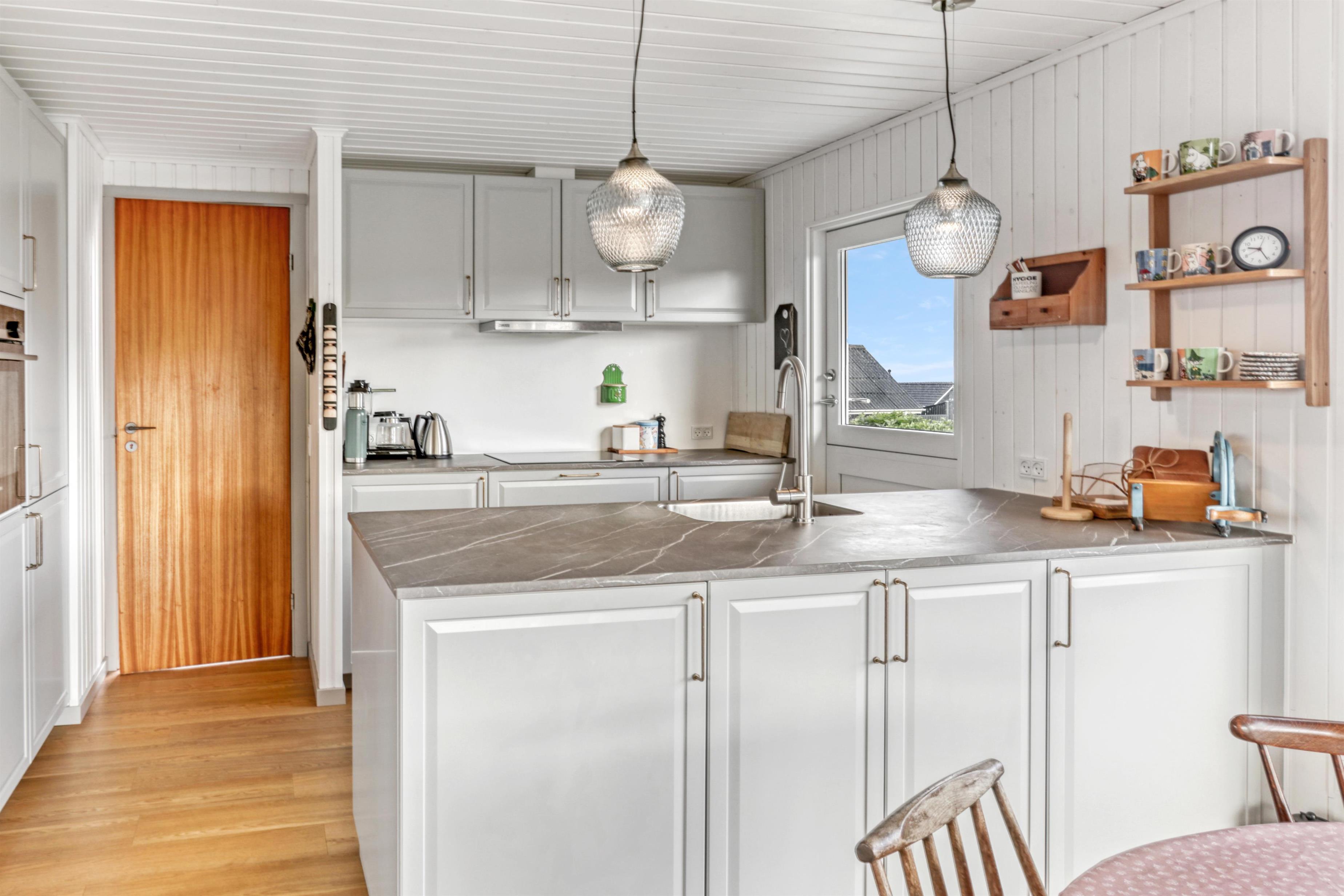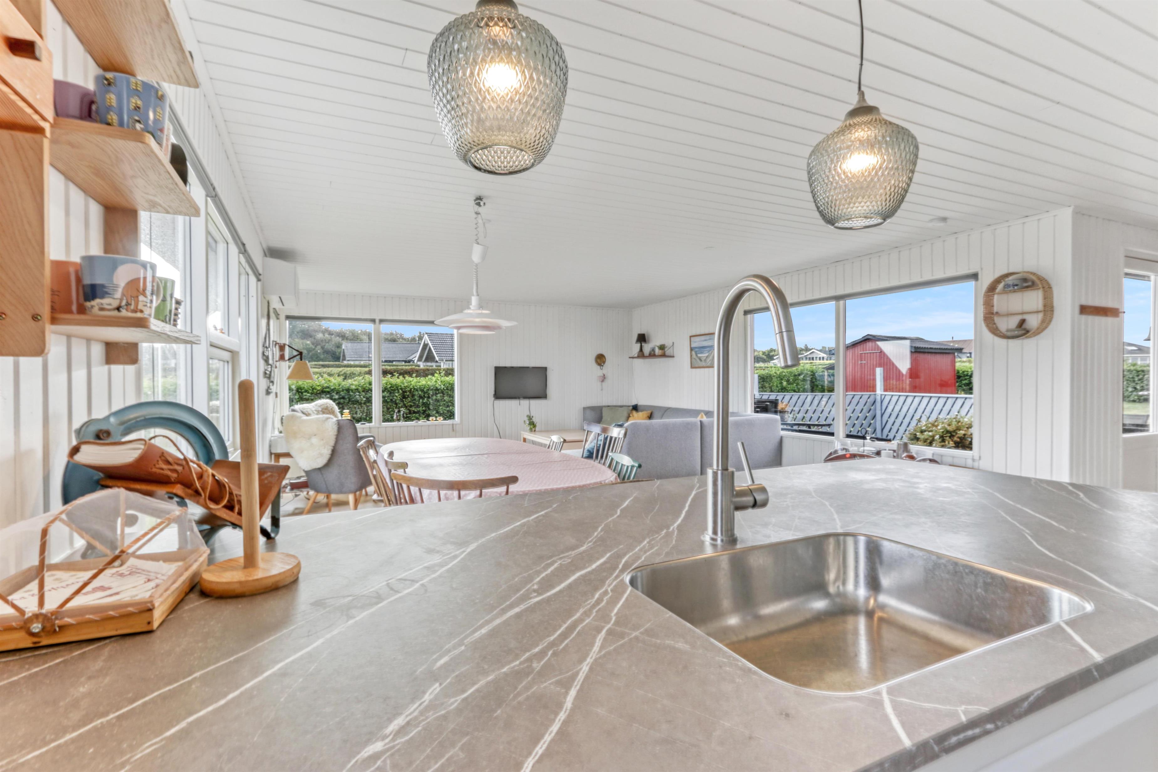 Schönes Ferienhaus von 73 qm mit 3 guten Schlafzimmern (1DB, 1DB, 2E). Ein kleiner Eingang heißt Sie willkommen. Kombinierter Wohn- und Küchenbereich, der im Jahr 2022 modernisiert wurde. Der schöne Küchenbereich ist hell und freundlich und verfügt über alle Haushaltsgeräte: Glaskeramik-Kochfelder, Einbaubackofen, Kühlschrank mit Gefrierfach und Geschirrspüler. Das Wohnzimmer mit guten Polstermöbeln, Esstisch, Fernsehen nur mit Chromecast und HDMI-Buchse- es gibt keine deutschen Programme. Wenn Sie ein Mobiltelefon oder ein anderes Gerät bei sich haben, können Sie streamen, was Sie abonniert haben. Es gibt auch ein CD/Radio. Neuer, schöner Holzofen, der zusammen mit der Wärmepumpe dazu beiträgt, die Heizkosten zu senken. Praktische Hartböden im Wohnzimmer und in der Küchenecke. Kleines Badezimmer mit Dusche, Toilette und Waschbecken. Haustiere sind nicht erlaubt. Nichtraucher-Haus.
