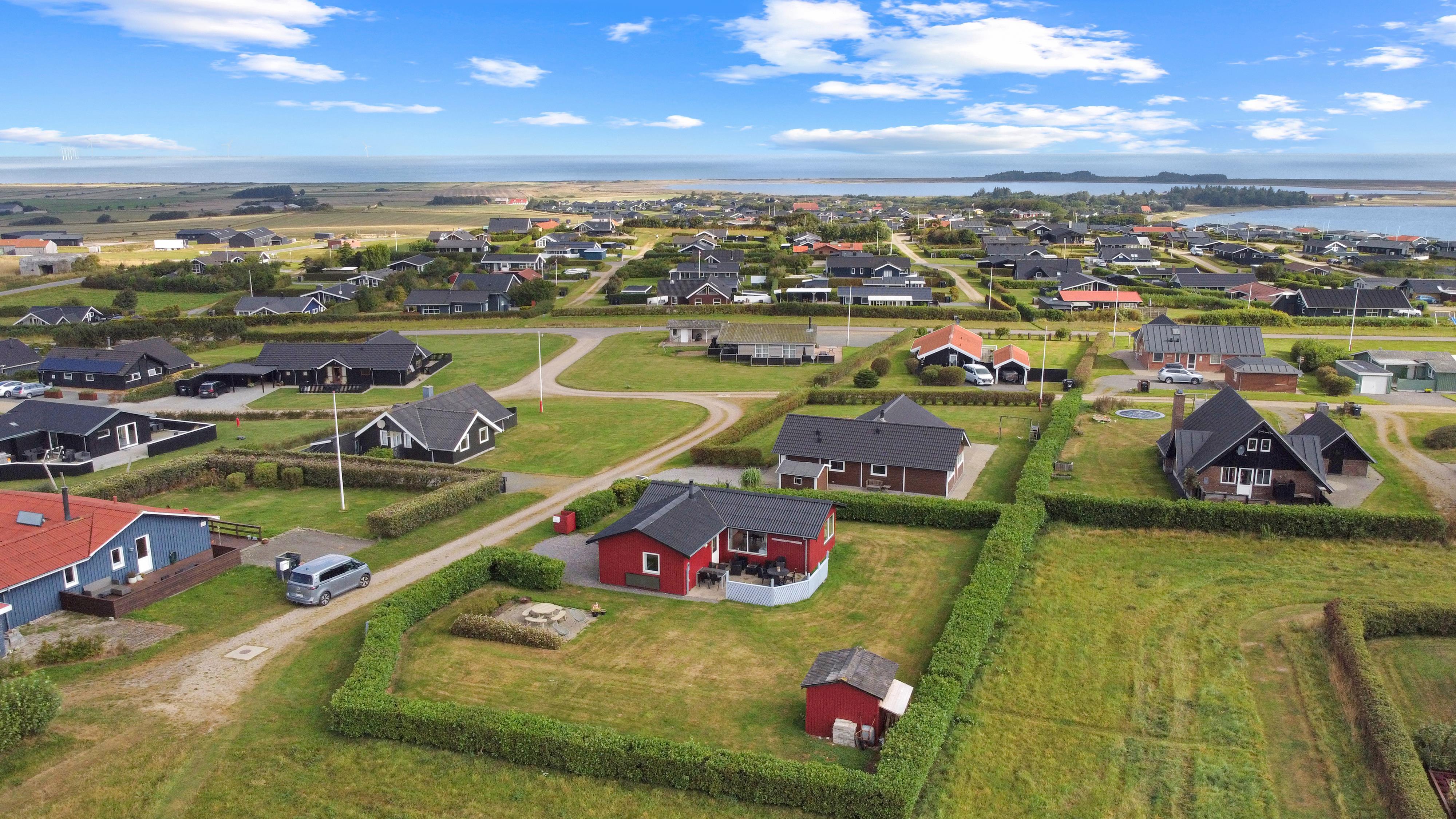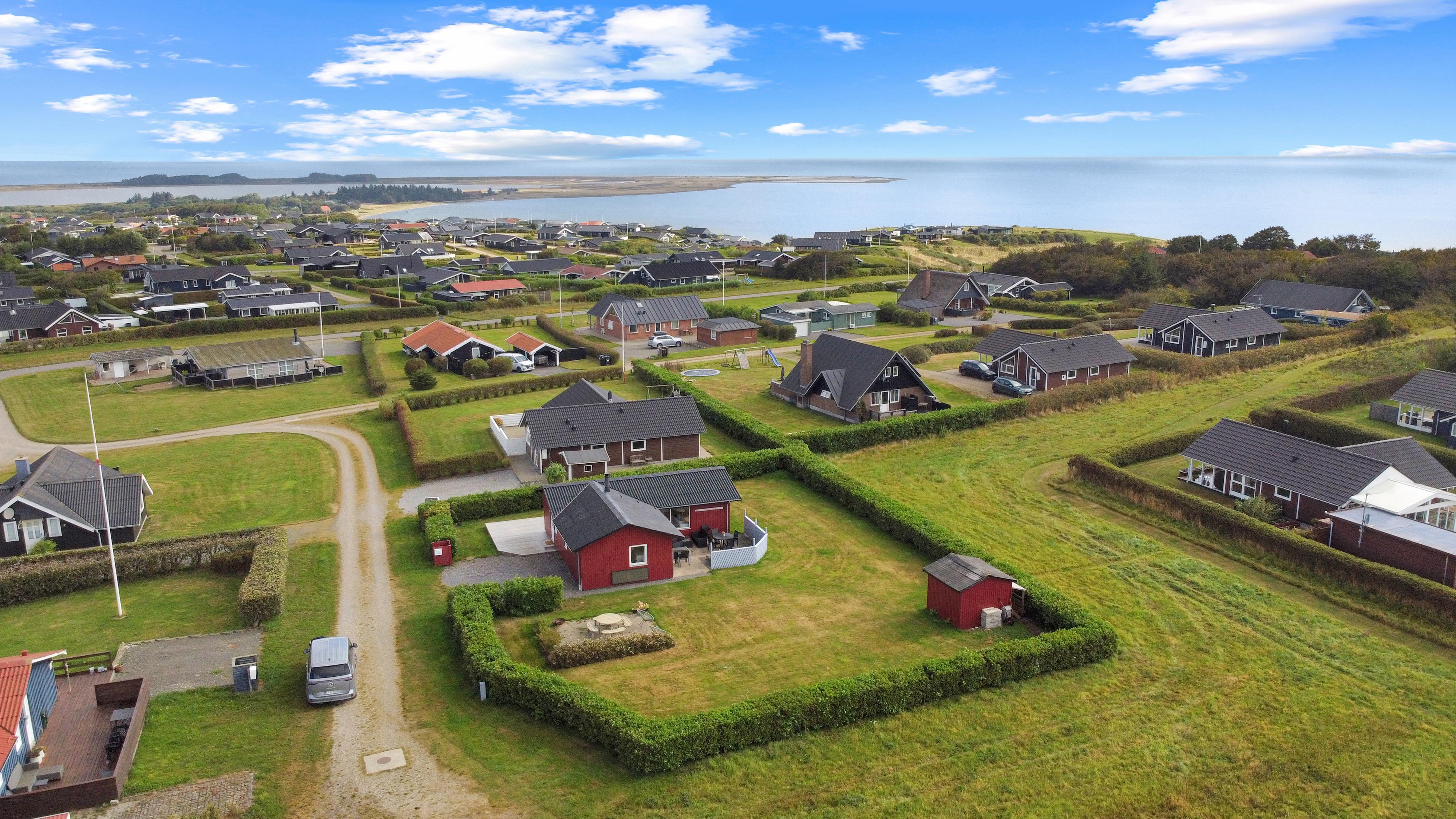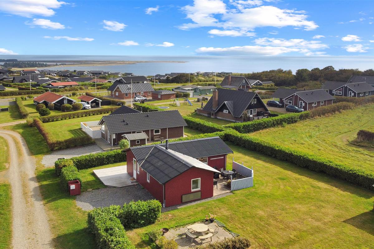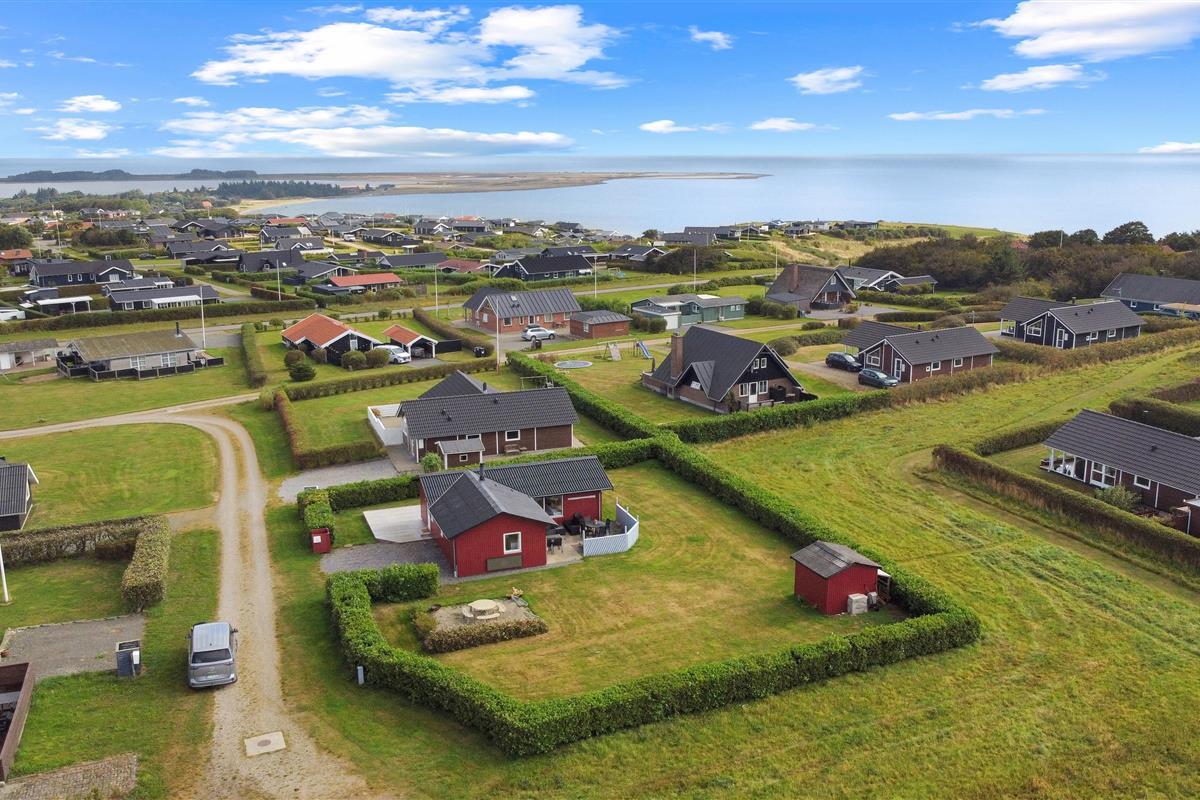 Das Haus liegt auf einem ca. 895 qm großen, gepflegten Grundstück am Ende einer Sackgasse und am Rande eines unbebauten Nachbargrundstücks. Es gibt einen wunderschönen Blick auf die Landschaft mit dem Limfjord im Hintergrund. Schöne eingezäunte Terrasse mit Gartenmöbeln, Sonnenliegen und Grill. Auf der anderen Seite des Hauses befindet sich eine neu angelegte Terrasse mit Lounge-Set und Blick auf die Landschaft und den Limfjord. Vom Haus aus gibt es ein schönes Wegesystem, das in wenigen Minuten direkt zum Wasser führt. Ca. 400 m vom Haus entfernt befindet sich der neue schöne Naturholzspielplatz mit Bolzplatz und Rutsche. Nach Lemvig, einer lebhaften Handelsstadt mit vielen Geschäften, einem Fischrestaurant, einem Museum usw., sind es nur vier Kilometer. Wenn Sie mit dem Auto anreisen, ist ein Ausflug nach Thyborøn ein Erlebnis für sich und kann in 20 Minuten erreicht werden. Hier gibt es verschiedene Aktivitäten wie eine Fischauktion, das Seekriegsmuseum oder einen Besuch im spannenden Jütland-Aquarium, wo die Kinder Fische und Krabben sehen und anfassen können, oder einen Besuch im völlig einzigartigen Schneckenhaus. Der Tag endet mit einem Eis in der Hand, während Sie am Hafenkai entlang spazieren und sich die vielen Fischerboote ansehen.