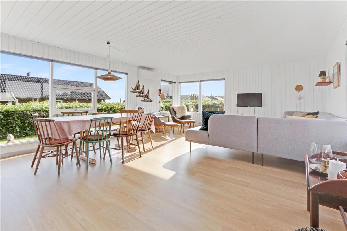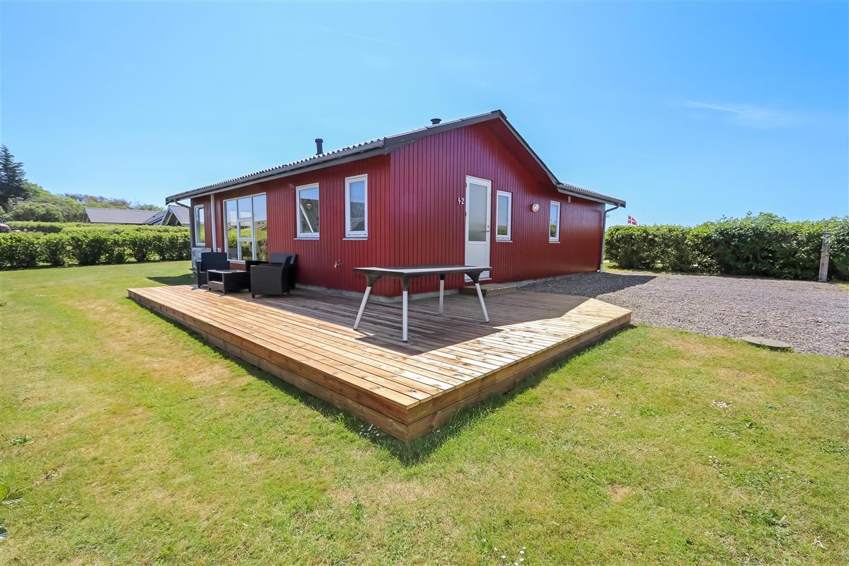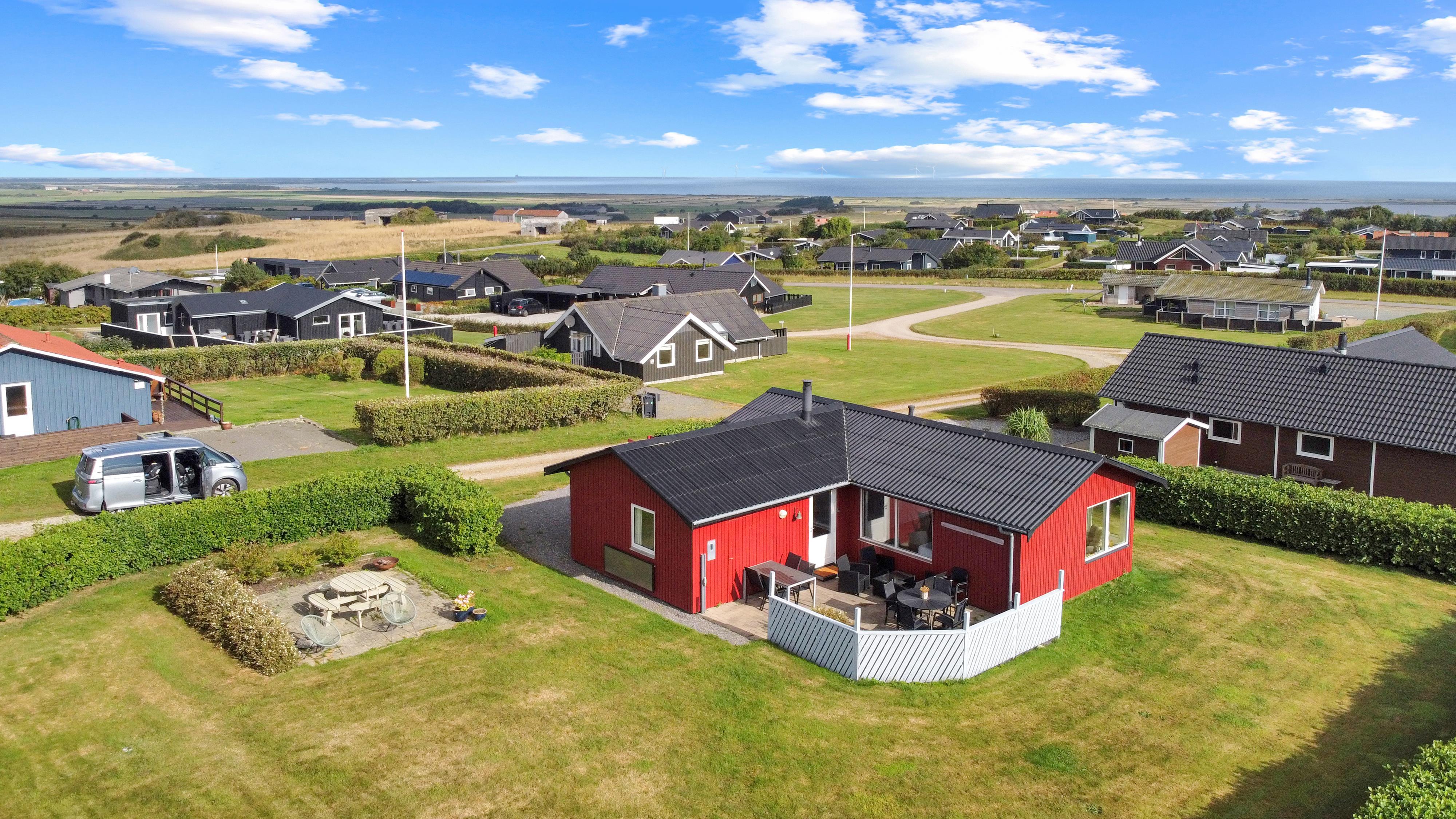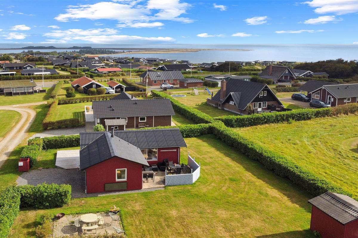Das Haus liegt auf einem ca. 895 qm großen, gepflegten Grundstück am Ende einer Sackgasse und am Rande eines unbebauten Nachbargrundstücks. Es gibt einen wunderschönen Blick auf die Landschaft mit dem Limfjord im Hintergrund. Schöne eingezäunte Terrasse mit Gartenmöbeln, Sonnenliegen und Grill. Auf der anderen Seite des Hauses befindet sich eine neu angelegte Terrasse mit Lounge-Set und Blick auf die Landschaft und den Limfjord. Vom Haus aus gibt es ein schönes Wegesystem, das in wenigen Minuten direkt zum Wasser führt. Ca. 400 m vom Haus entfernt befindet sich der neue schöne Naturholzspielplatz mit Bolzplatz und Rutsche. Nach Lemvig, einer lebhaften Handelsstadt mit vielen Geschäften, einem Fischrestaurant, einem Museum usw., sind es nur vier Kilometer. Wenn Sie mit dem Auto anreisen, ist ein Ausflug nach Thyborøn ein Erlebnis für sich und kann in 20 Minuten erreicht werden. Hier gibt es verschiedene Aktivitäten wie eine Fischauktion, das Seekriegsmuseum oder einen Besuch im spannenden Jütland-Aquarium, wo die Kinder Fische und Krabben sehen und anfassen können, oder einen Besuch im völlig einzigartigen Schneckenhaus. Der Tag endet mit einem Eis in der Hand, während Sie am Hafenkai entlang spazieren und sich die vielen Fischerboote ansehen.