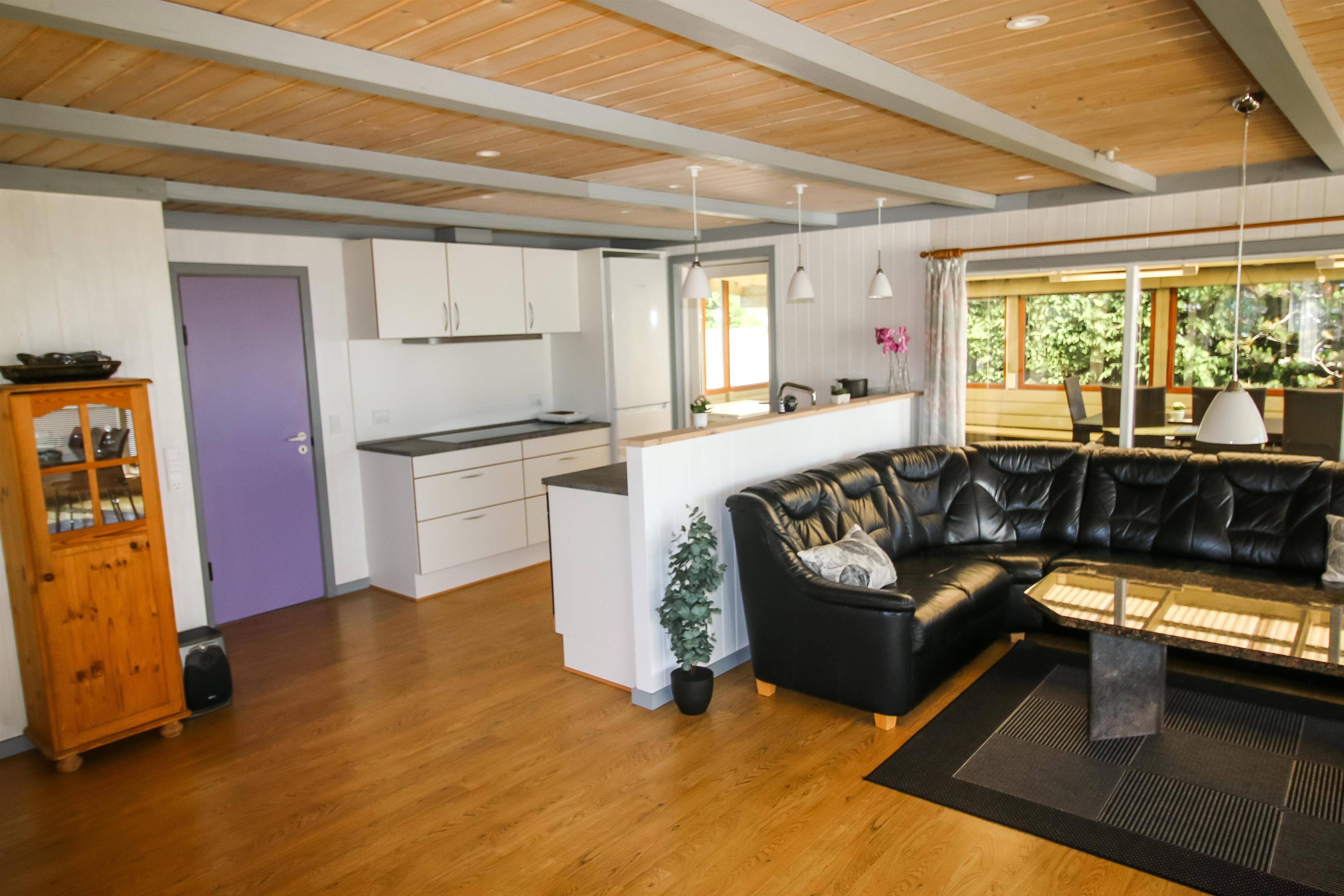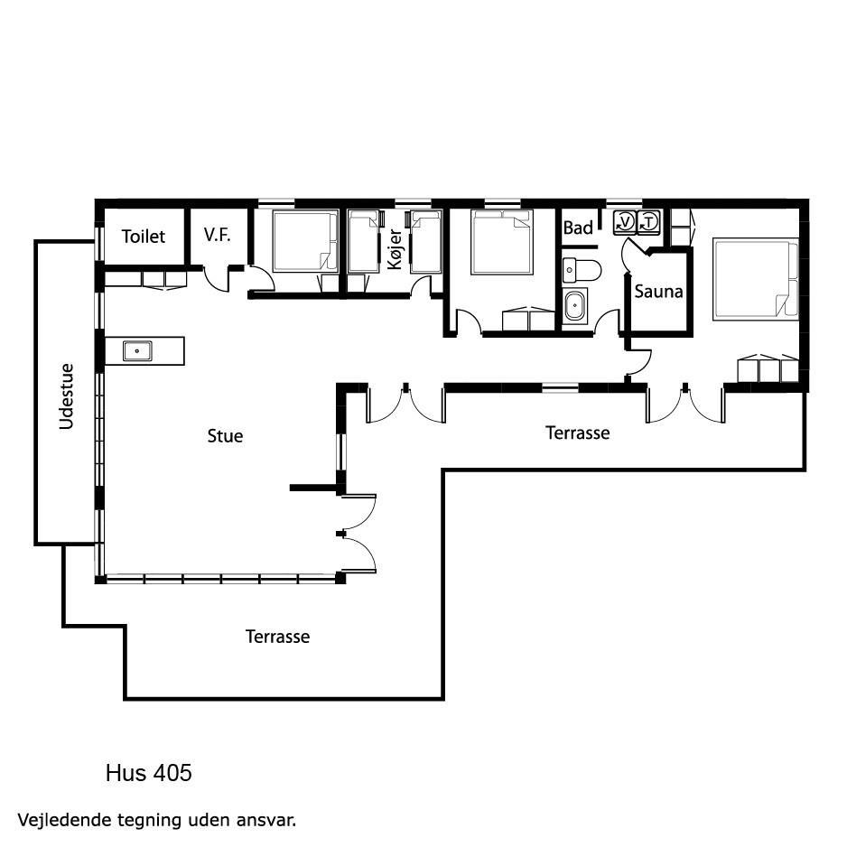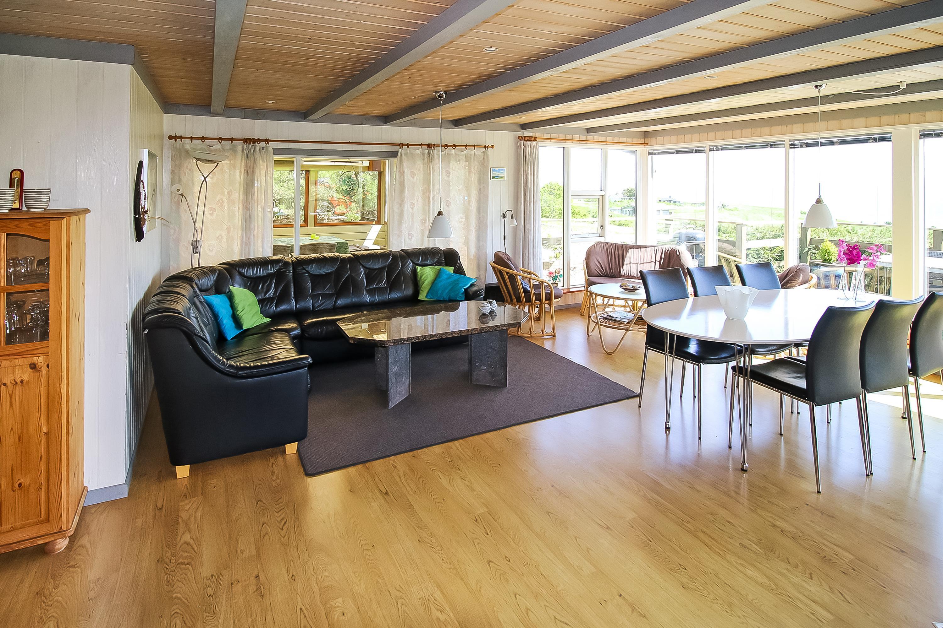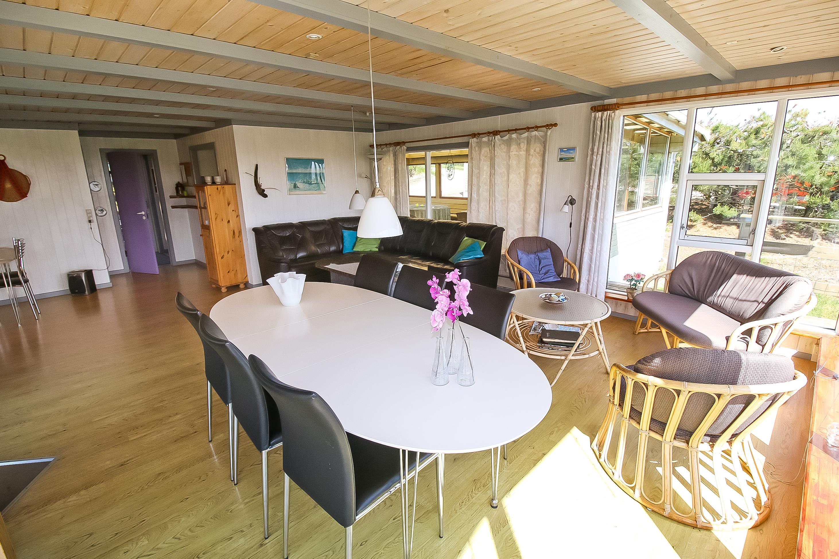 4 Schlafzimmer (1 DB, 1 DB, 1 DB, 4 EB). Wohn- und Esszimmer mit schönen Ledermöbeln sowie TV mit dänischem und deutschem Programm. Gut ausgestattete Küche mit Geschirrspüler und Mikrowelle. Großes Bad mit WC, Waschbecken, Dusche und Infrarotkabine (Sauna). Zweites Bad mit WC, Waschbecken, Dusche und Fußbodenheizung. Waschmaschine und Wärmepumpe vorhanden. Zusätzliche Gefrierkapazitäten im Gartenhaus.