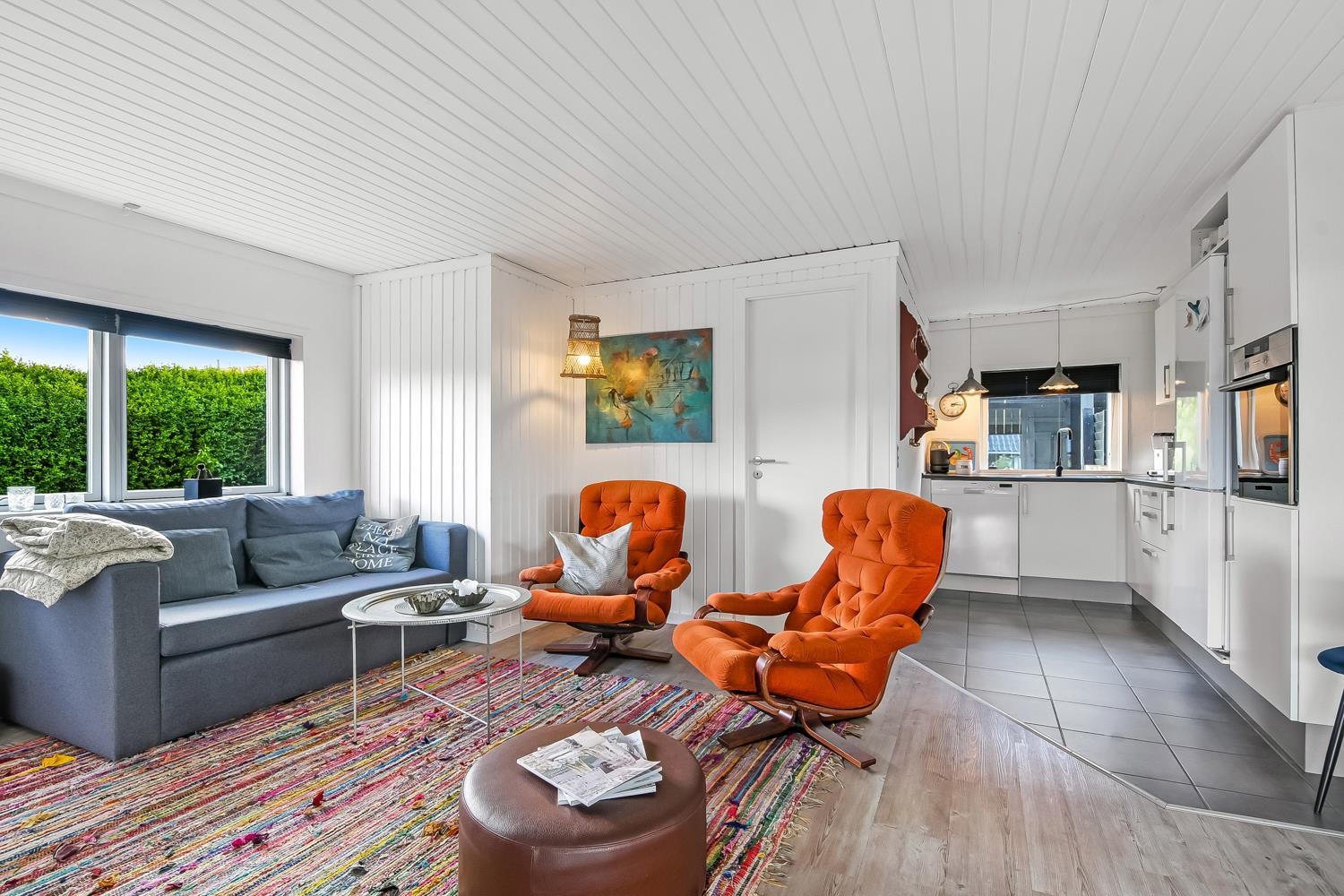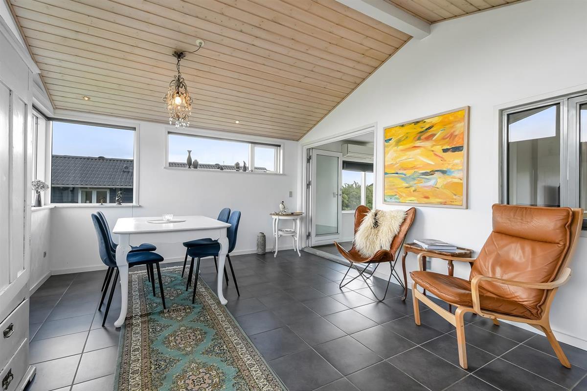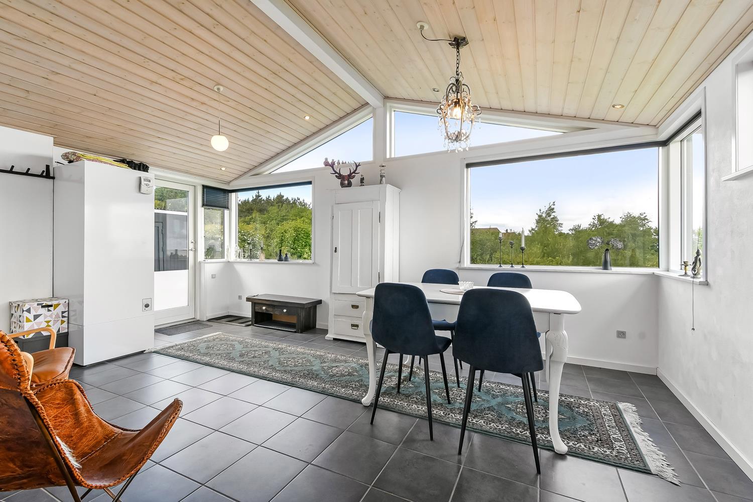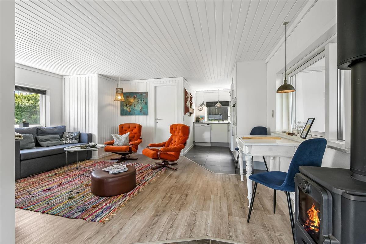 Gepflegtes Ferienhaus von etwa 79 m² und wunderschön eingerichtet mit schönen Möbeln und Fernseher mit deutschen Kanälen und der Möglichkeit des Streamings. Das Haus verfügt über ein kombiniertes Wohnzimmer und einer Küchenzeile mit Keramikkochfeldern, eingebautem Backofen, Abzugshaube, Mikrowelle, Geschirrspüler und Kühlschrank. Es gibt 2 Schlafzimmer mit Teppichboden - ein 3/4 und zwei Einzelbetten. Vom Wohnzimmer aus haben Sie durch die großen Flügeltüren Zugang zu einem erweiterten Esszimmer mit Essbereich, von dem aus Sie einen herrlichen Blick auf die Landschaft mit dem Limfjord im Hintergrund genießen können. Von hier aus haben Sie auch Zugang zum Badezimmer des Hauses mit Toilette, Waschbecken, versenkter Dusche, Waschmaschine und Fliesenboden mit Fußbodenheizung. Rauchen ist im Haus nicht gestattet. Maximal 1 kleiner Hund ist erlaubt. Ein wirklich schönes Häuschen, das unglaublich gemütlich und leicht zu sehen ist.
