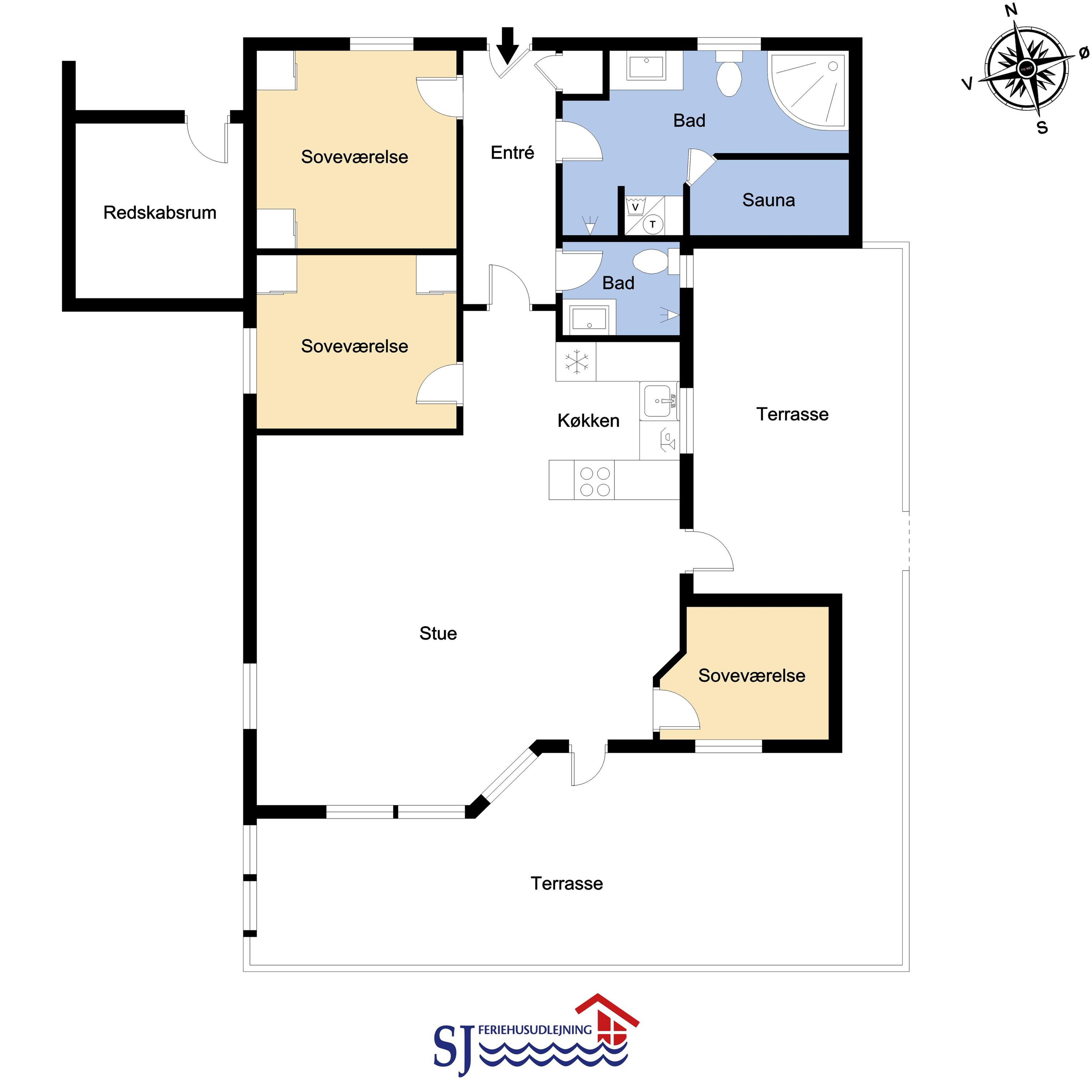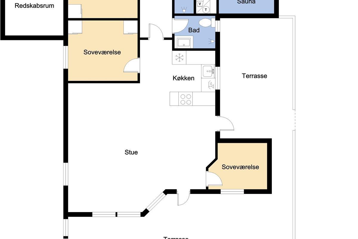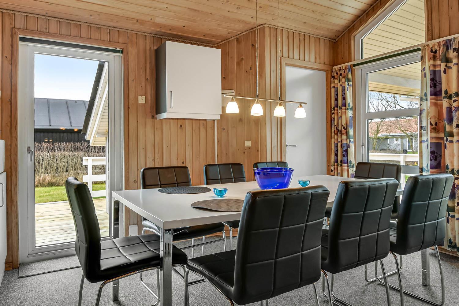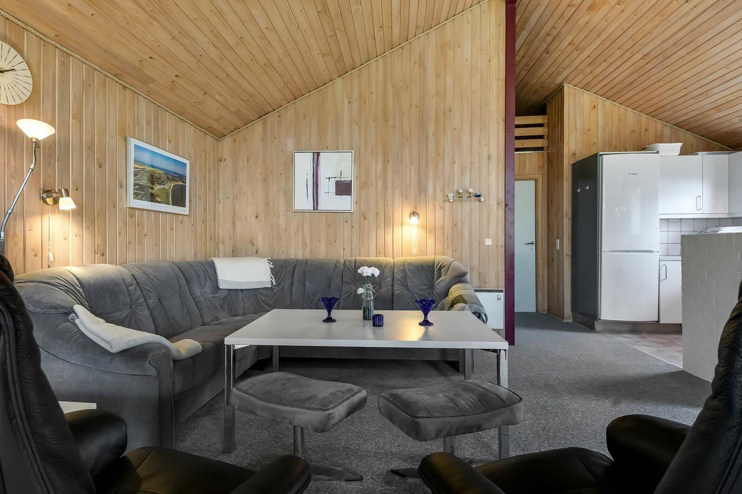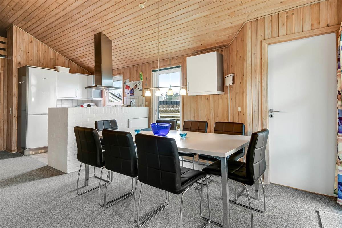 Das Haus hat einen schönen grossen, hellen und geräumigen Wohnraum, der mit der Küche kombiniert ist. Die Küche ist mit Herd mit Cerankochfeld, Kühlschrank mit Gefrierfach, Mikrowelle und Geschirrspüler ausgestattet. Ausserdem gibt es eine separate Gefriertruhe im Haus mit 85 l. Im Wohnraum haben Sie einen Kaminofen, Wärmepumpe, CD-Spieler, DVD und Fernseher mit DR1 TV2 und Parabolantenne für die deutschen Programme. Es gibt einen schönen Esstisch mit Platz für die ganze Familie. Ein Kinderstuhl und Kinderbett gibt es für die kleinsten Gäste. Es gibt 3 Schlafräume im Haus 1 mit 1 DB und 2 mit jeder 2 EZ und ausserdem gibt es 2 Schlafplätze auf dem offenen Schlafboden (hier müssen Sie eine Leiter hochklettern). Es gibt 2 Badezimmern und das grosse Bad ist mit Sauna und Whirlpool und natürlich auch mitDusche, Toilette und Waschbecken. Hier finden Sie auch die Waschmaschine und den Trockner. Das andere Badezimmer ist mit Toilette, Dusche und Waschbecken.