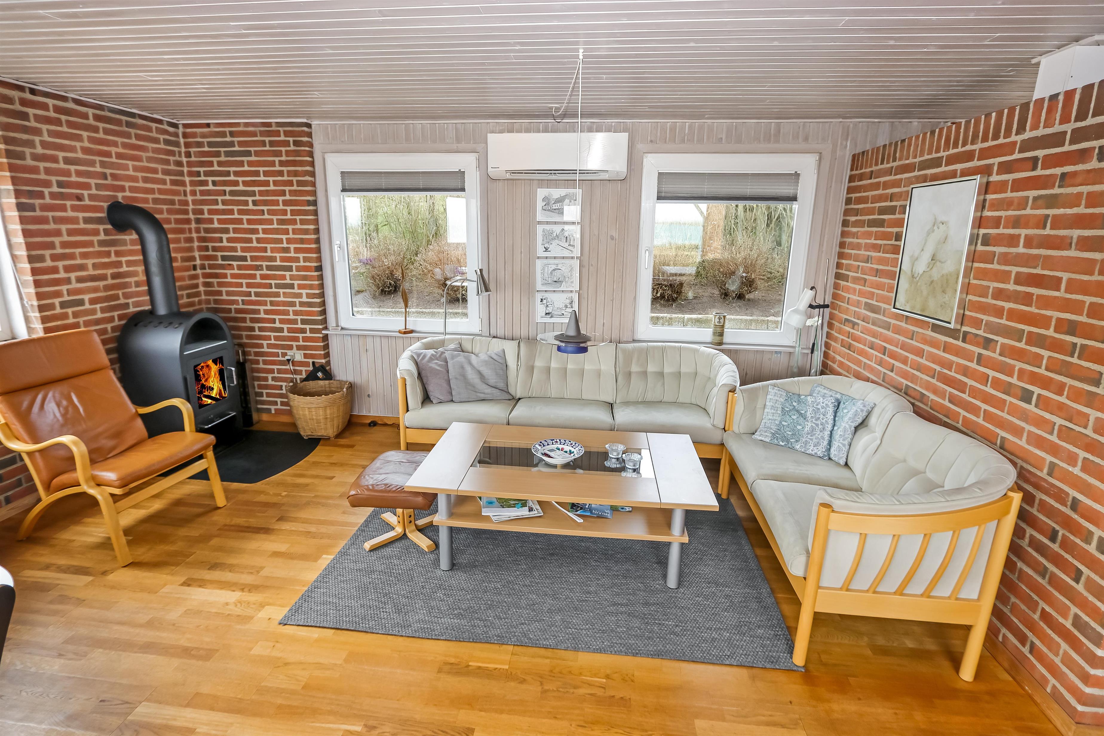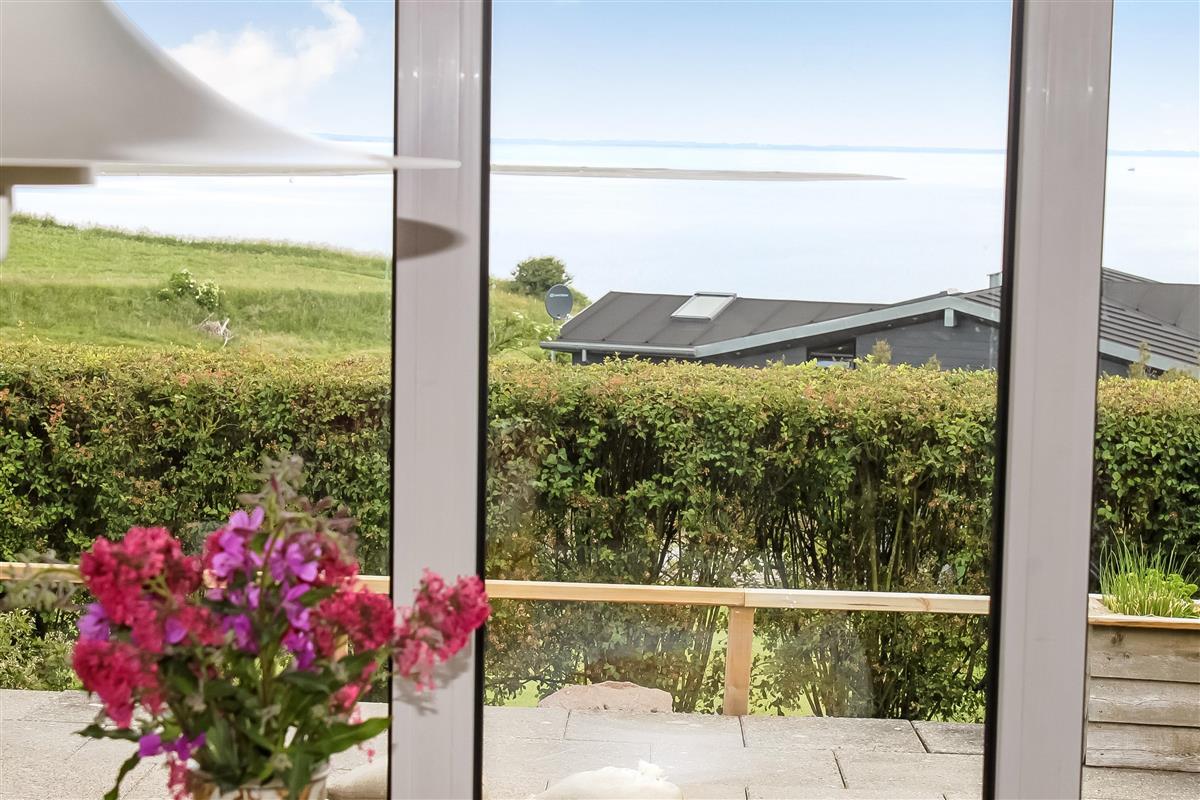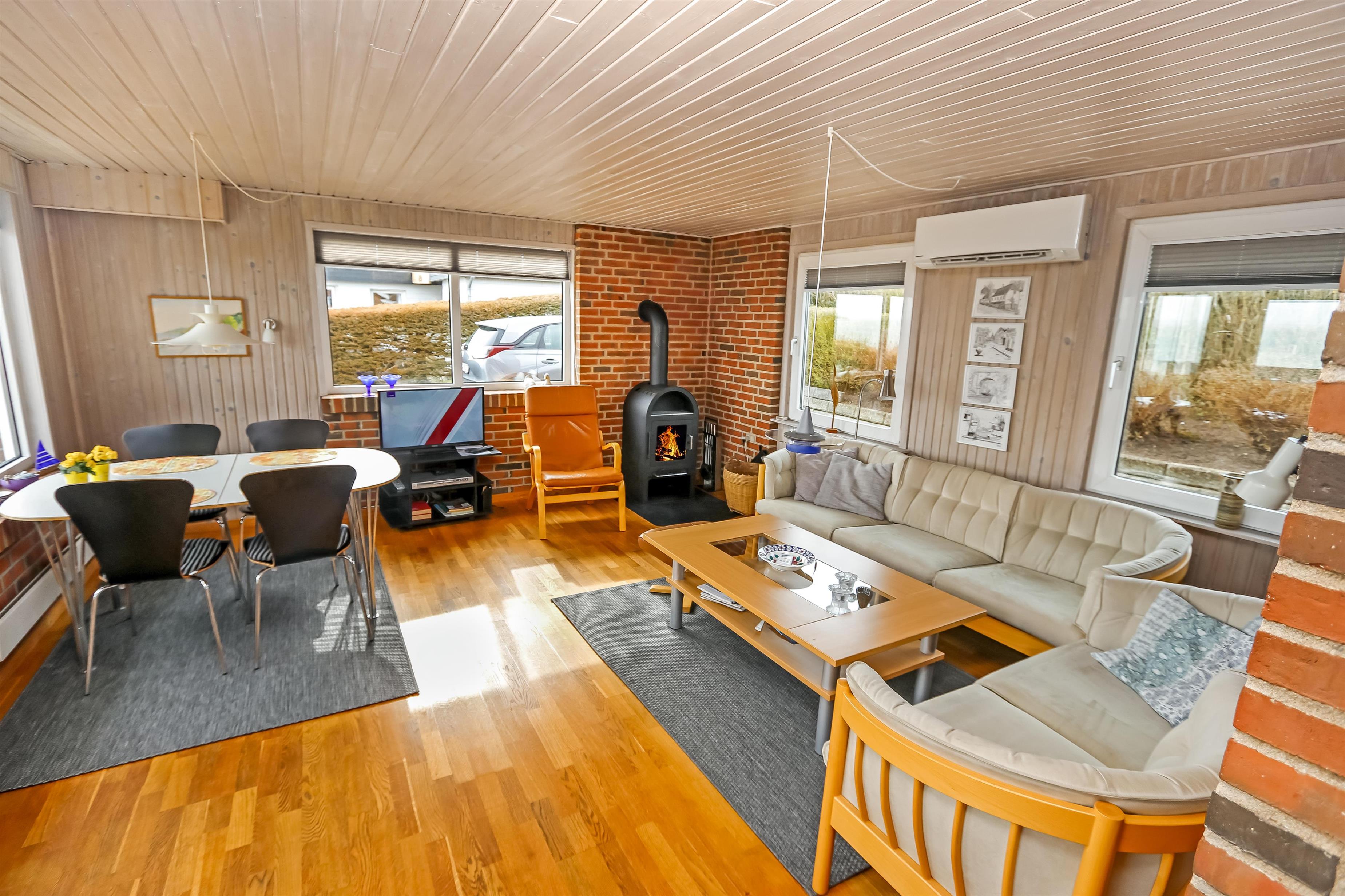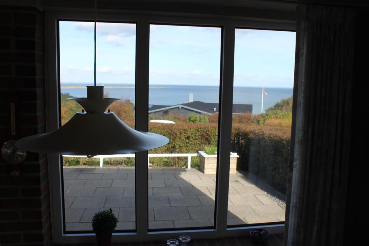 Dieses sehr gepflegte Ferienhaus aus Holz und Stein liegt auf einem schönen Grundstück mit Blick auf dem Limfjord und die Gegend. Freies WLAN.