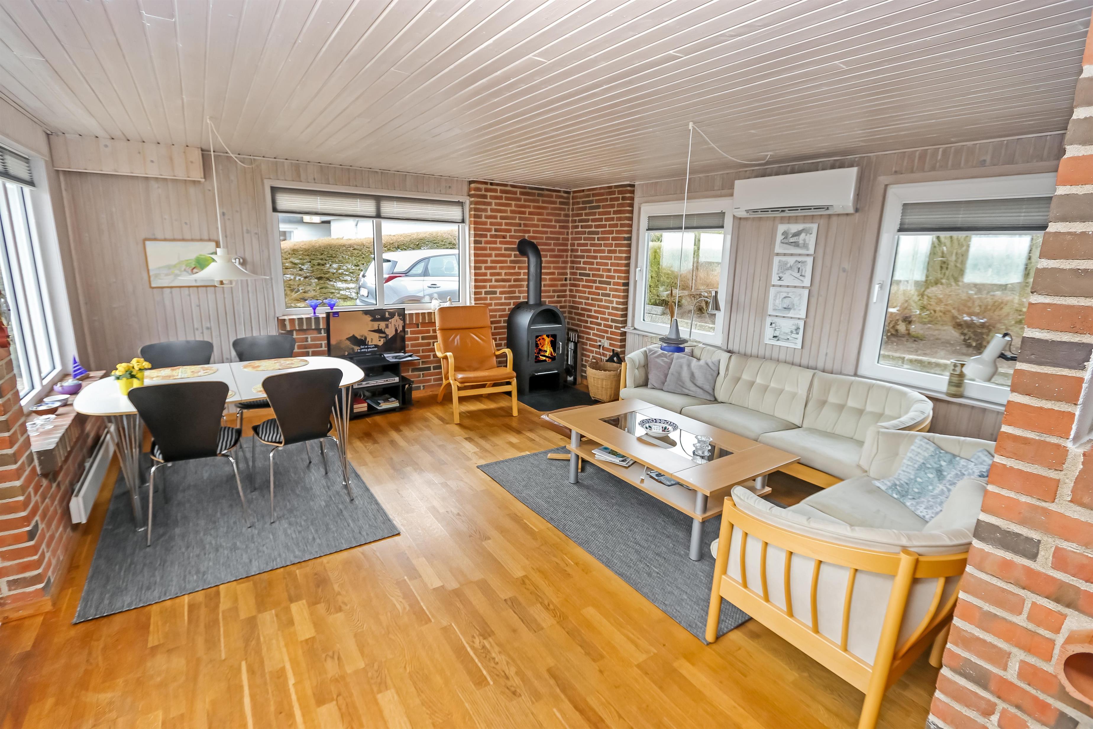 Das Haus liegt auf einem 1200 m² großen Grundstück mit Rasen. Offene Terrasse mit Gartenmöbeln, Sonnenliegen und Grill. Von die Terrasse haben Sie einen herrlichen Blick über den Limfjord und die Umgebung. Vom Haus aus gibt es gute Möglichkeiten zum Wandern oder mit dem Fahrrad zu fahren. Den Gjellerodder Spielplatz können Sie zu Fuss erreichen. Ein schönes rustikales Ferienhaus für die kleine Familie oder ein Pärchen, die ein Haus in einer schönen Lage suchen.