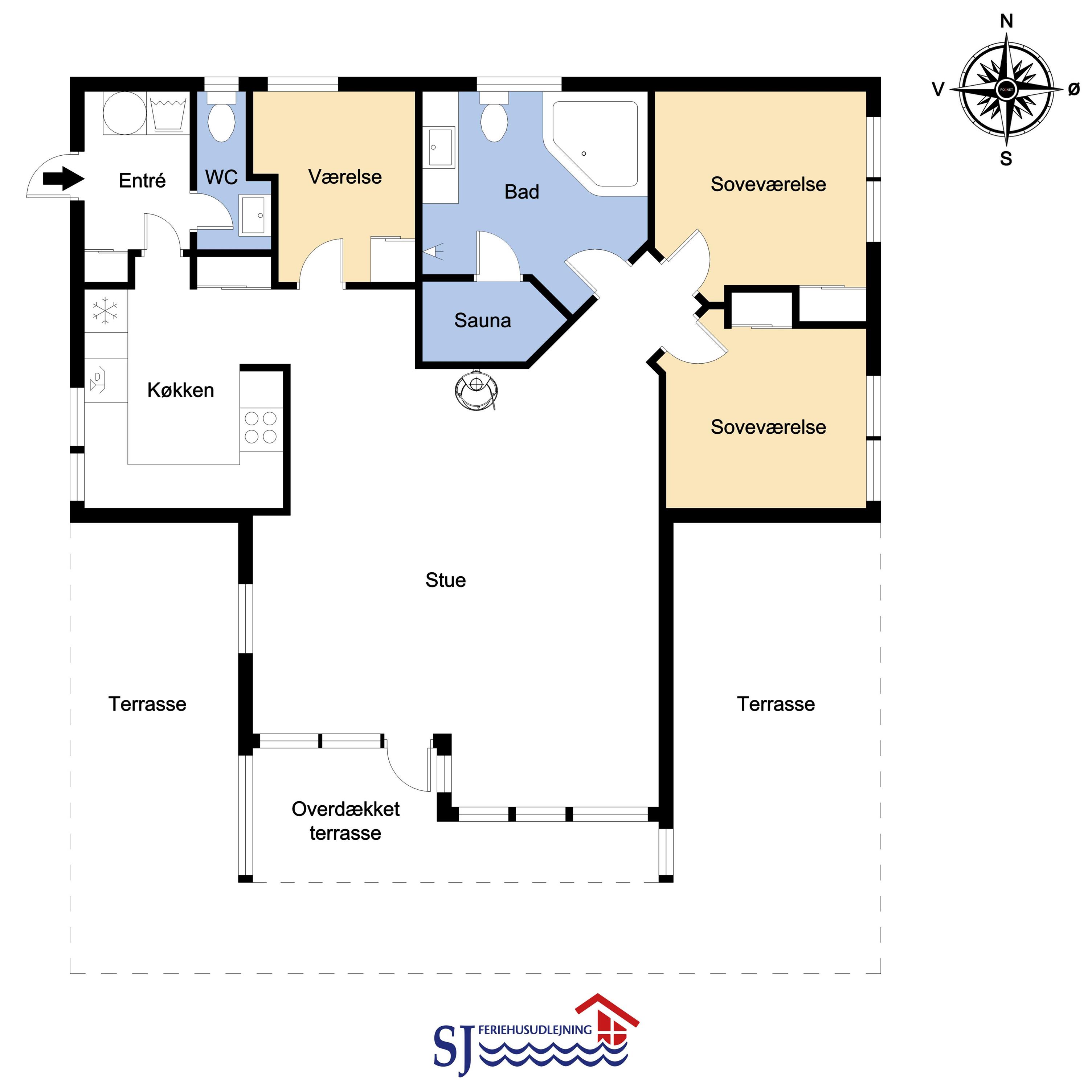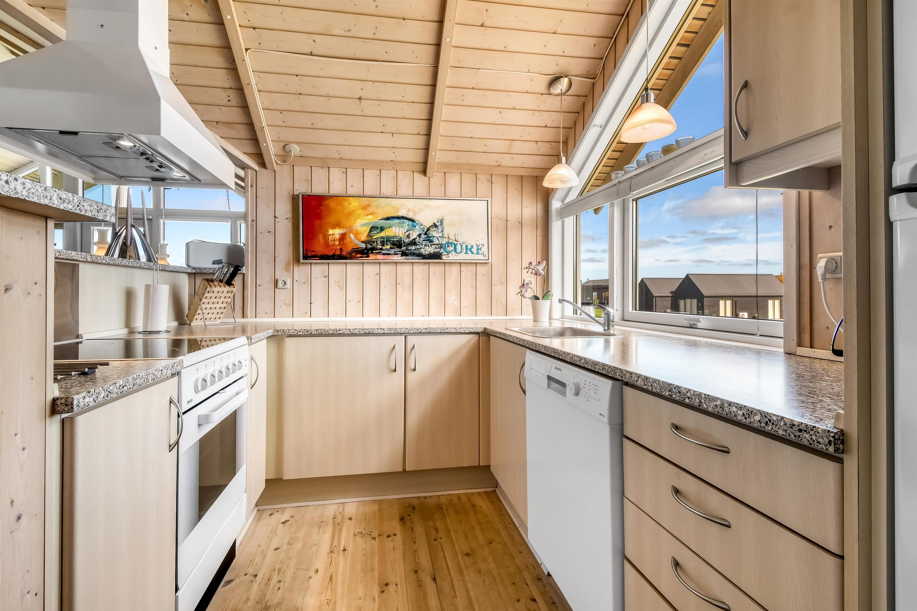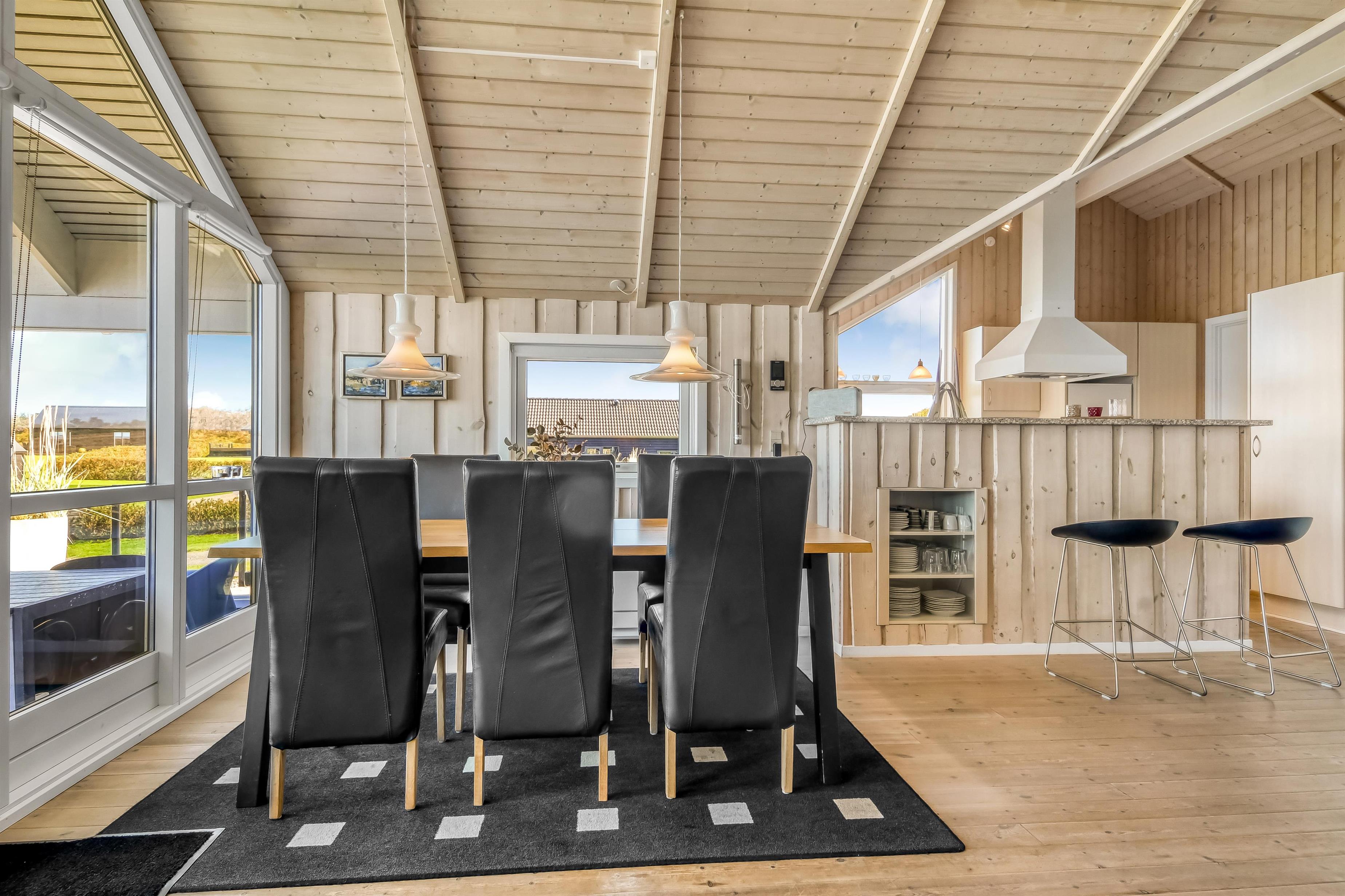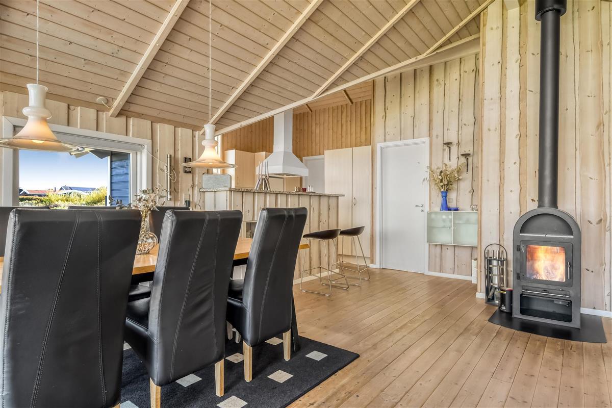 Das Haus ist hell und freundlich gestaltet mit großen Fenstern, die viel Licht in den Raum bringen. Es gibt eine kombinierte Küche und ein Wohnzimmer. Die Küche ist gut ausgestattet mit einem Ceranfeld-Kochherd, einem Kühl-/Gefrierschrank, einem Geschirrspüler, einer Mikrowelle und einer Dunstabzugshaube. Im Wohnzimmer und in der Küche gibt es Holzböden. Das Wohnzimmer ist mit Leder- und Polstermöbeln, einem gemütlichen Kamin und einem Fernseher mit Satellitenschüssel (deutsche Programme), sowie DR und TV2 ausgestattet. Außerdem gibt es einen Chromecast, mit dem Sie Ihre eigenen abonnierten Programme streamen können. 3 gute Schlafzimmer: 1DB + 1DB + 1E. Das Haus verfügt über 2 Badezimmer. Das große Badezimmer ist mit Toilette, Waschbecken, Dusche, Whirlpool, Zugang zur Sauna und Fußbodenheizung ausgestattet. Gäste-WC mit Toilette und Waschbecken. Hauswirtschaftsraum mit Waschmaschine und Trockner. Haustiere sind nicht erlaubt. Wenn Sie ein Elektroauto oder einen Plug-in-Hybrid haben, verfügt das Haus über eine Ladebox.