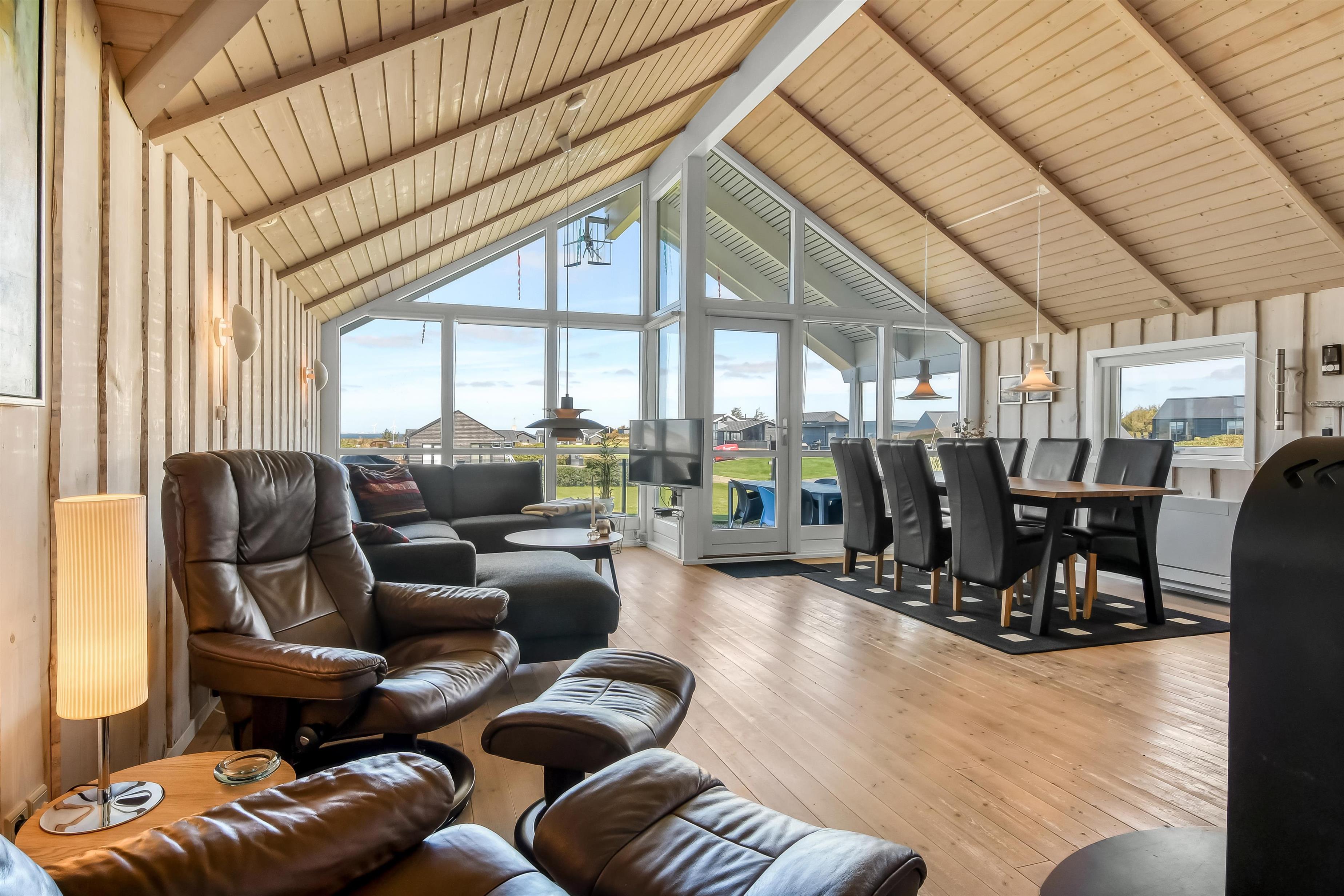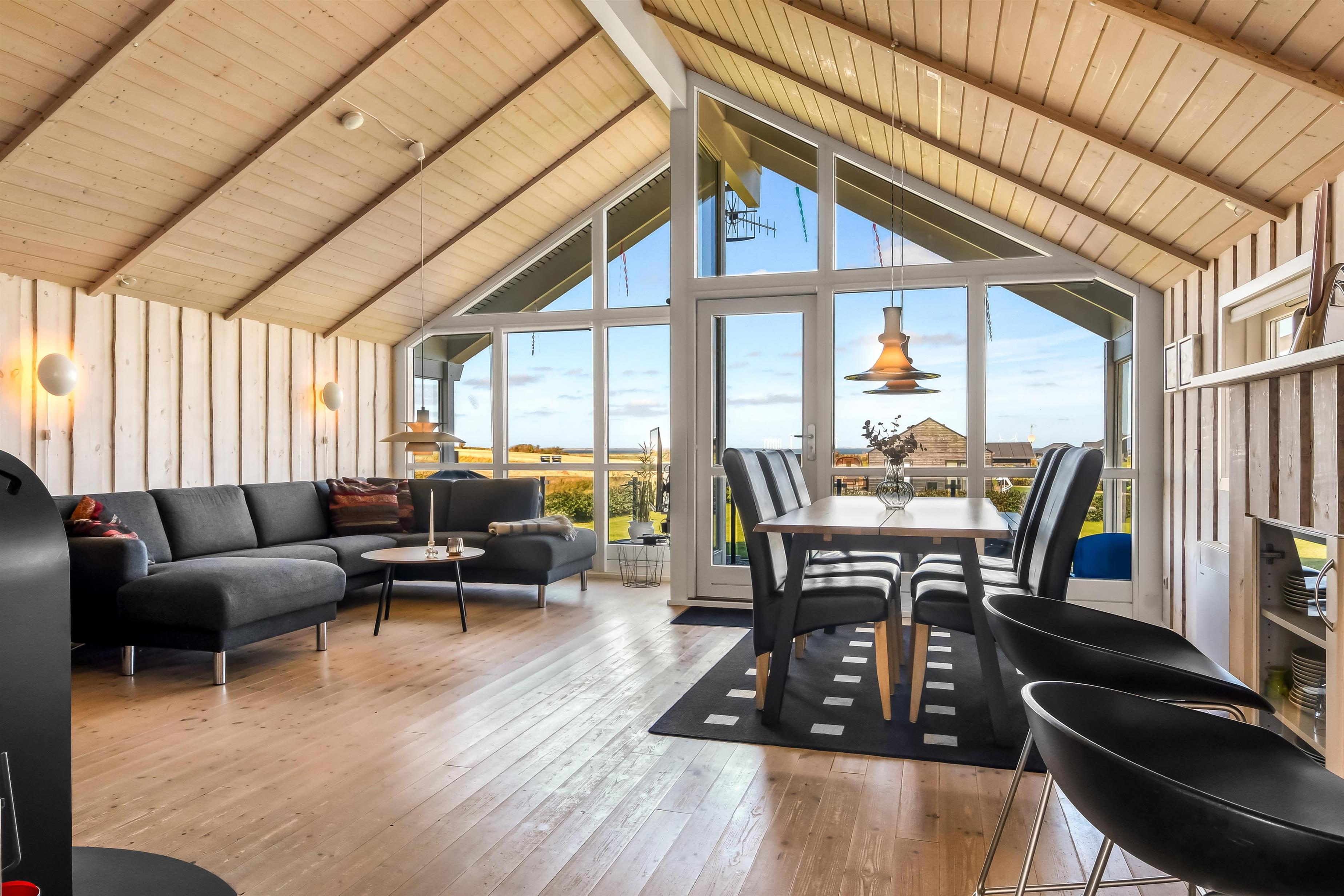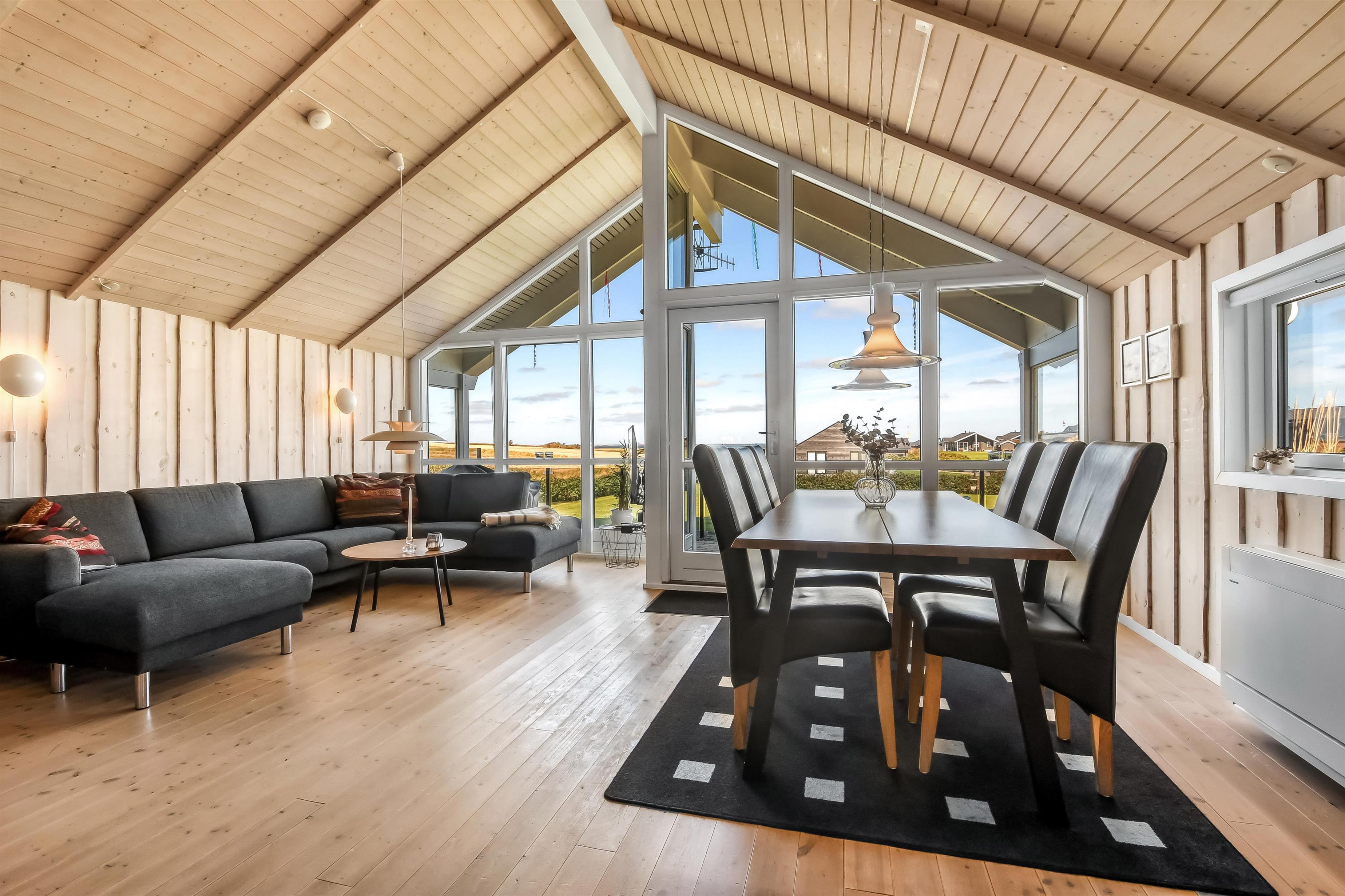 Dieses schöne Ferienhaus befindet sich auf einem 1600 m² großen Grundstück mit herrlichem Blick über den Limfjord. Rund um das Haus gibt es eine Terrasse mit Gartenmöbeln und Grill, die nach Bedarf platziert werden können, sodass Sie die Aussicht genießen oder einen Platz in der Sonne oder im Schatten finden können. Es sind nur 350 m bis zum Limfjord, wo es einen schönen kinderfreundlichen Strand mit Badesteg gibt. In der Nähe des Badestrandes befindet sich der neue Spielplatz aus Holz, der kostenlos genutzt werden kann. Die Handelsstadt Lemvig ist nur eine kurze Autofahrt vom Haus entfernt und bietet mehrere gute Restaurants, einen Spielplatz an der Hafenpromenade und viele gute Geschäfte. Ein schönes Haus in einer wunderbaren Gegend mit vielen guten Möglichkeiten zum Wandern, Laufen und Radfahren.