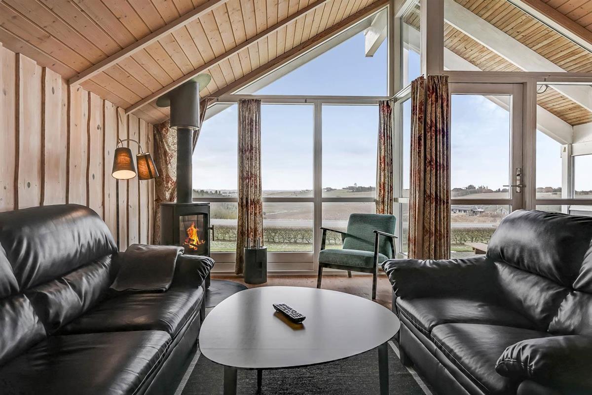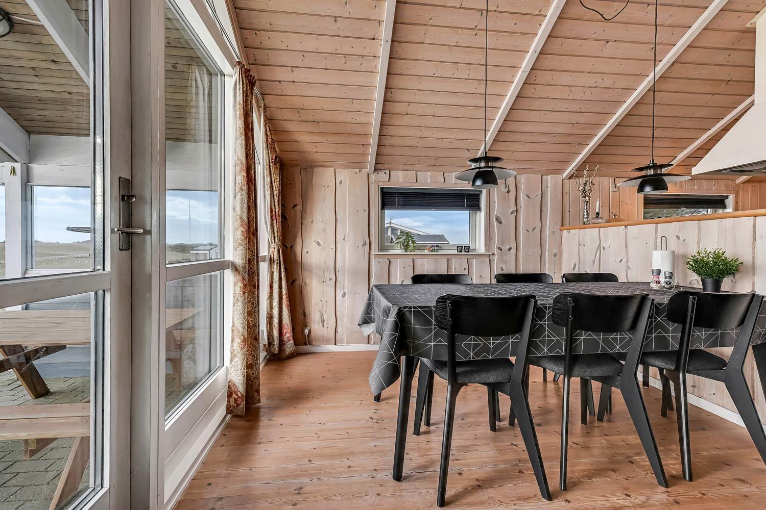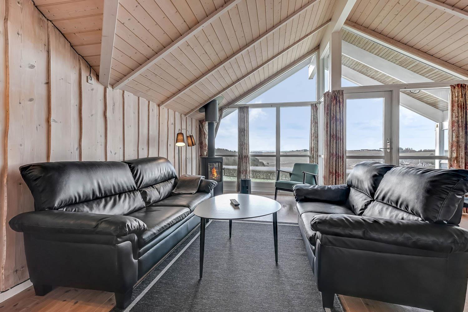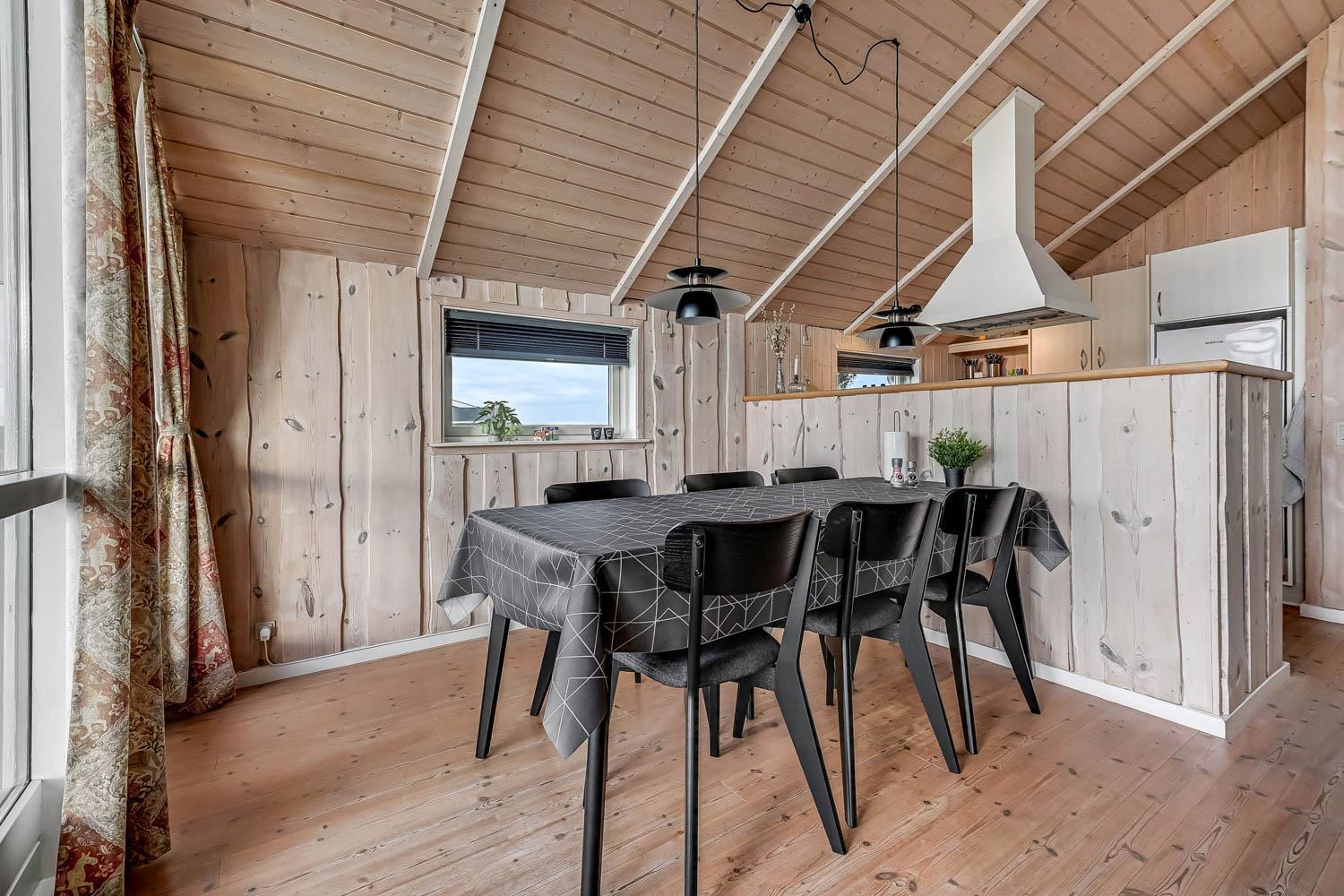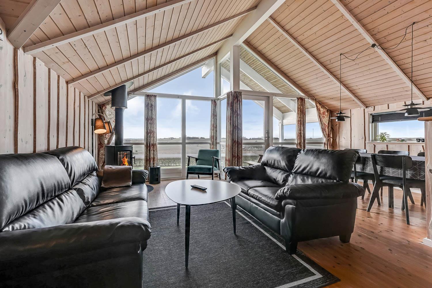 Die Einrichtung ist hell und einladend mit großen Fenstern, die den beeindruckenden Ausblick betonen. Hohe Decken, moderne Möbel, helle Holzdecken und -wände sowie Holzböden im gesamten Haus schaffen eine warme und gemütliche Atmosphäre.