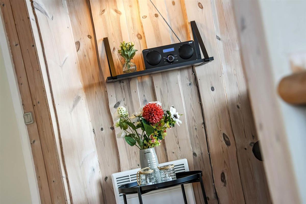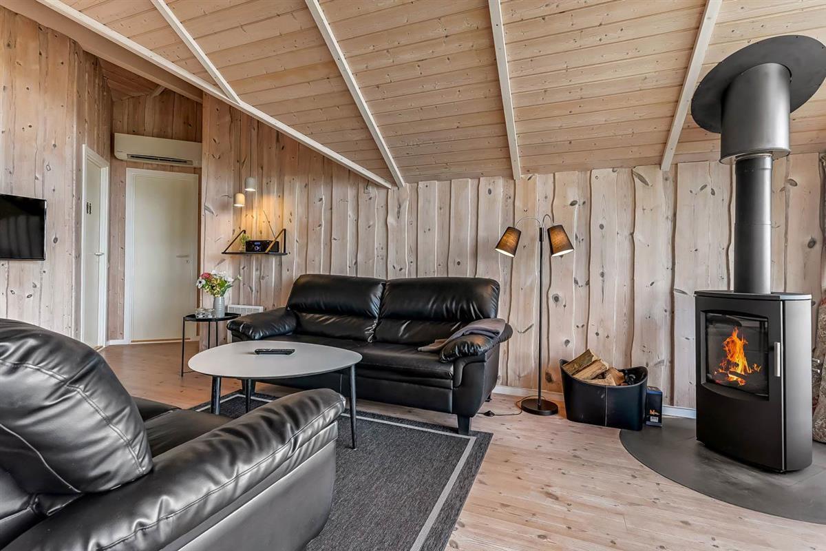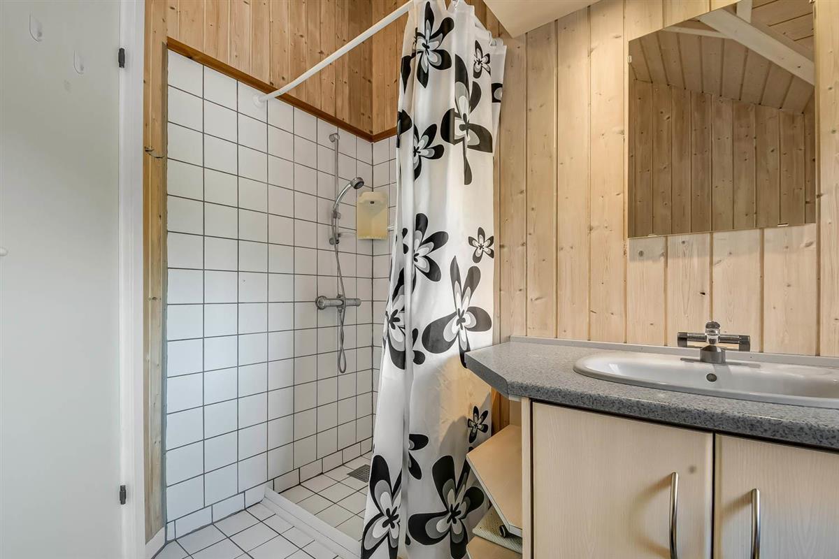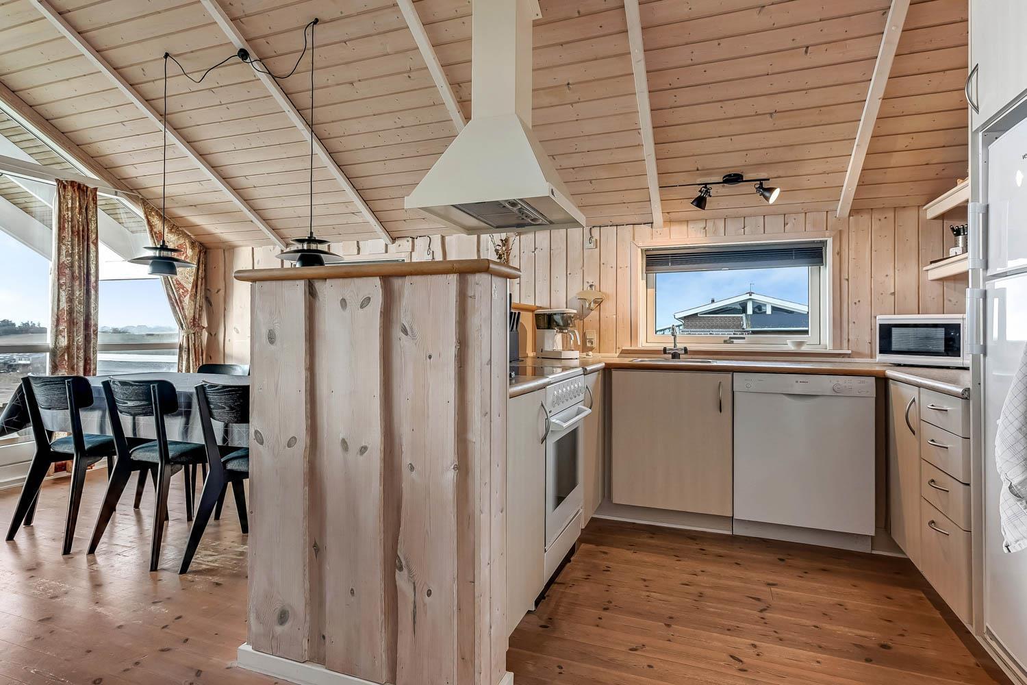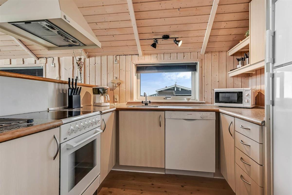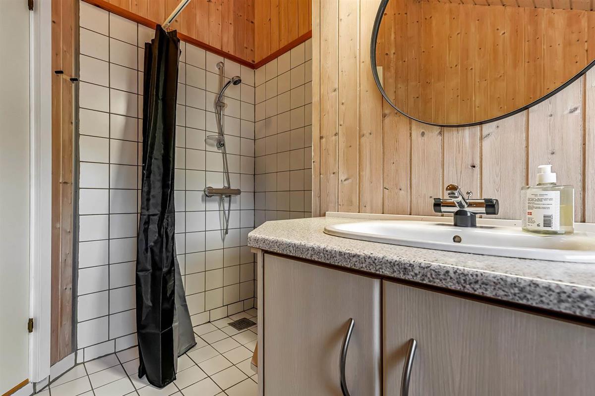 Vom Haus führt ein schöner Pfad direkt hinunter zum Wasser mit Badesteg – in nur wenigen Minuten zu erreichen. Nicht weit entfernt befindet sich ein großer, schöner Naturspielplatz aus Holz mit Fußballplatz, Schaukeln, Rutschen und vielem mehr. Auch Einkaufsmöglichkeiten, Café und der Strand von Gjellerodde sind in kurzer Entfernung erreichbar.