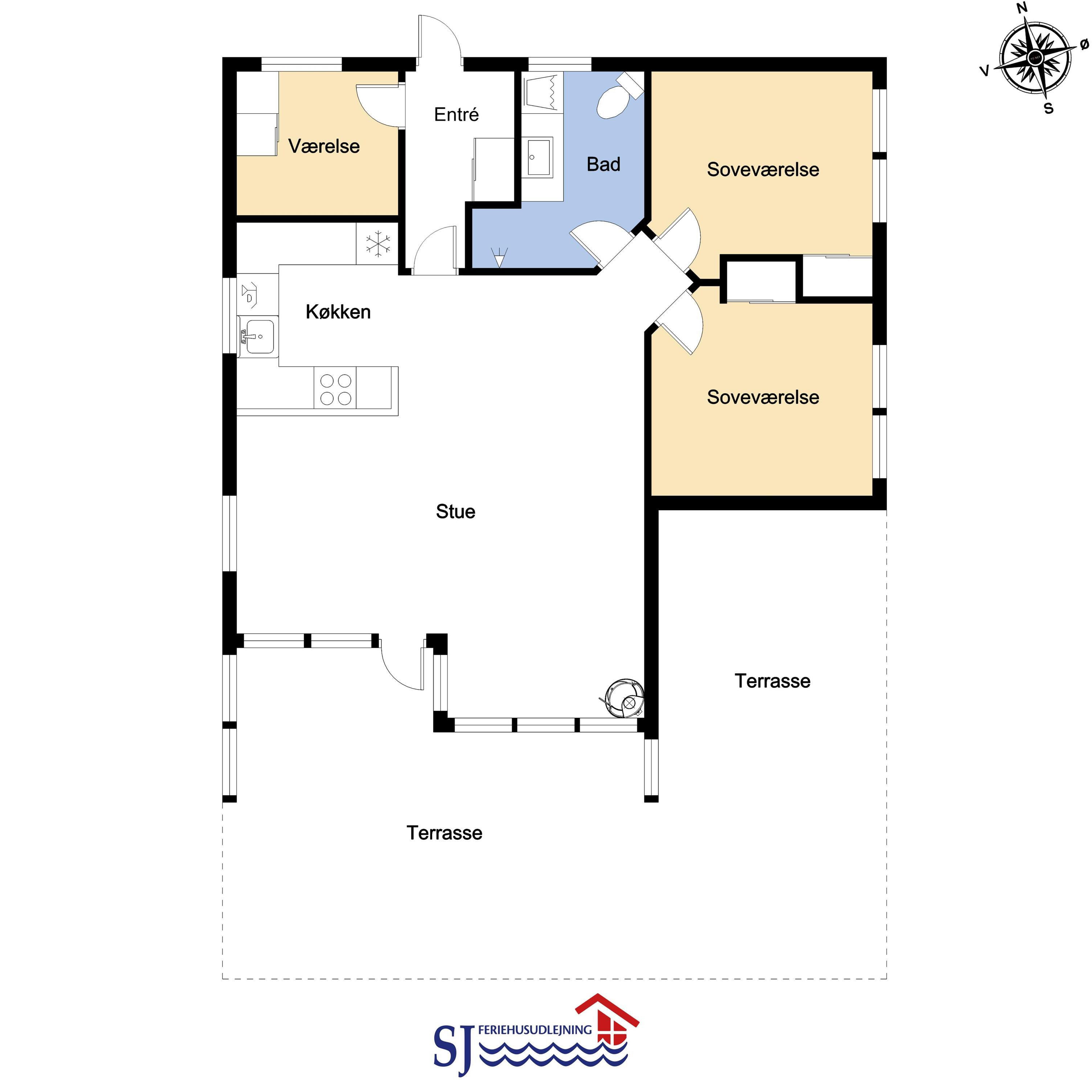 Ein Fernseher mit dänischen (DR) und deutschen Programmen über Satellit steht zur Verfügung.