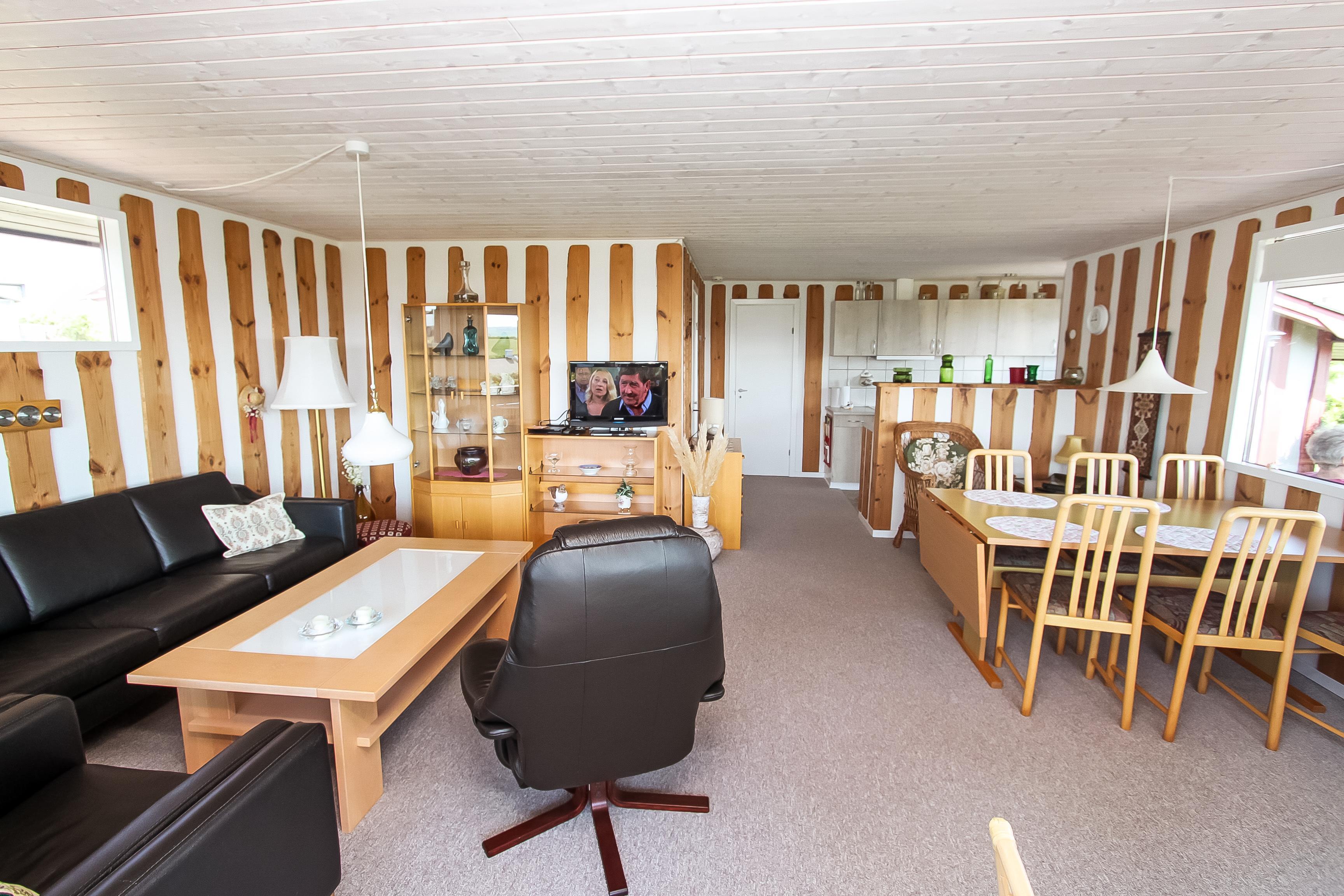 Gemütlich eingerichtetes Ferienhaus mit etwa 70 m2. Vom Grund, Terrasse und Wohnraum haben Sie ein wunderschönen Blick über den Limfjord. Wohnraum und Küche sind kombiniert. Wohnraum mit TV mit dänischen und deutschen Programmen, Stereoanlage mit CD-Player, Ledermöbeln und Esstisch. Küche mit Ausgang zur Terrasse, Herd mit Cerankochfeld, Kühlschrank mit Gefrierfach. Schönes Badezimmer mit Toilette, Waschbecken und Dusche. 3 Schlafräume: 1DB + 1B + 1B. Wohnraum und Zimmer sind mit Teppichboden. Nichtraucher-Haus. Max. 1 Haustier ist erlaubt.