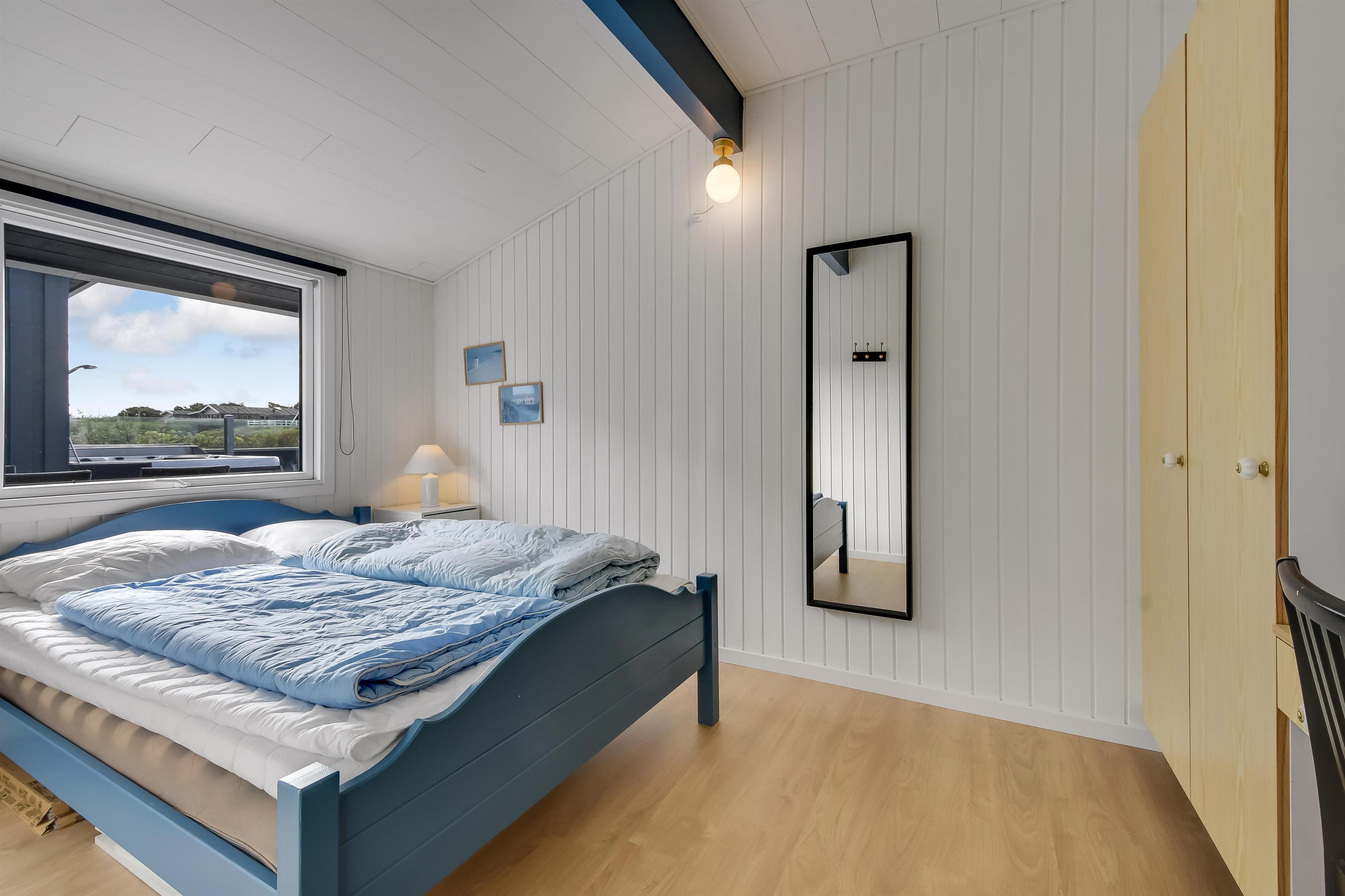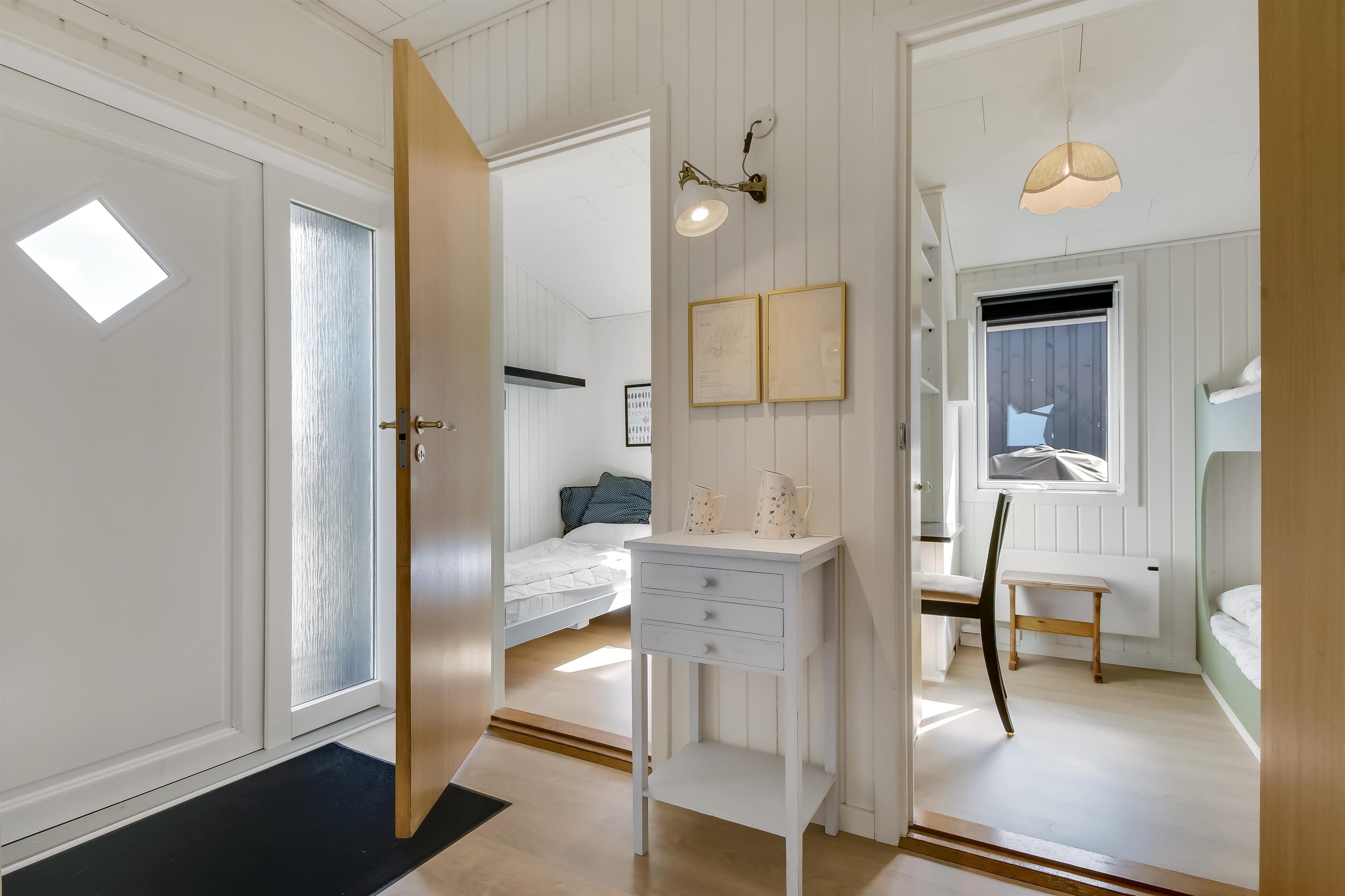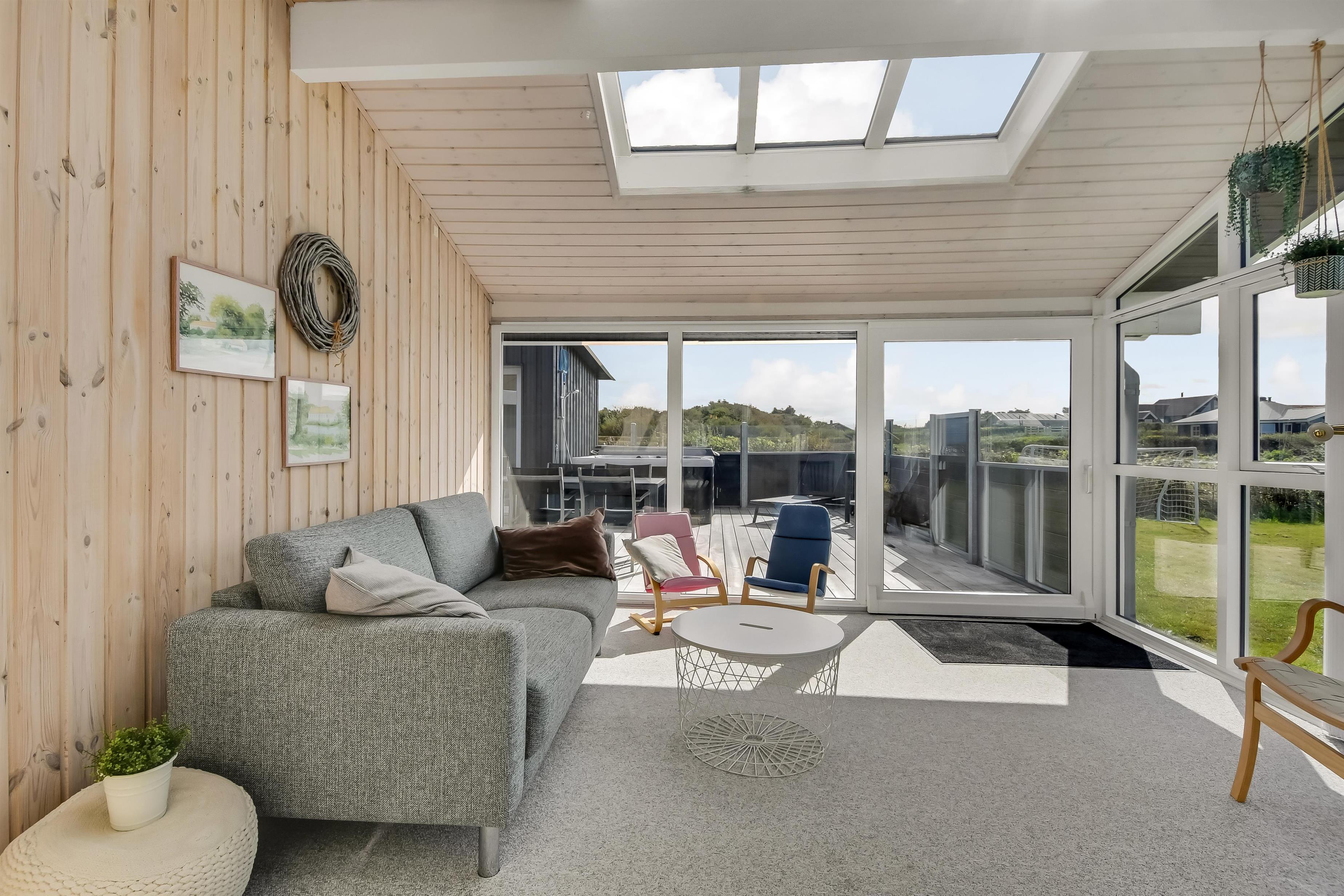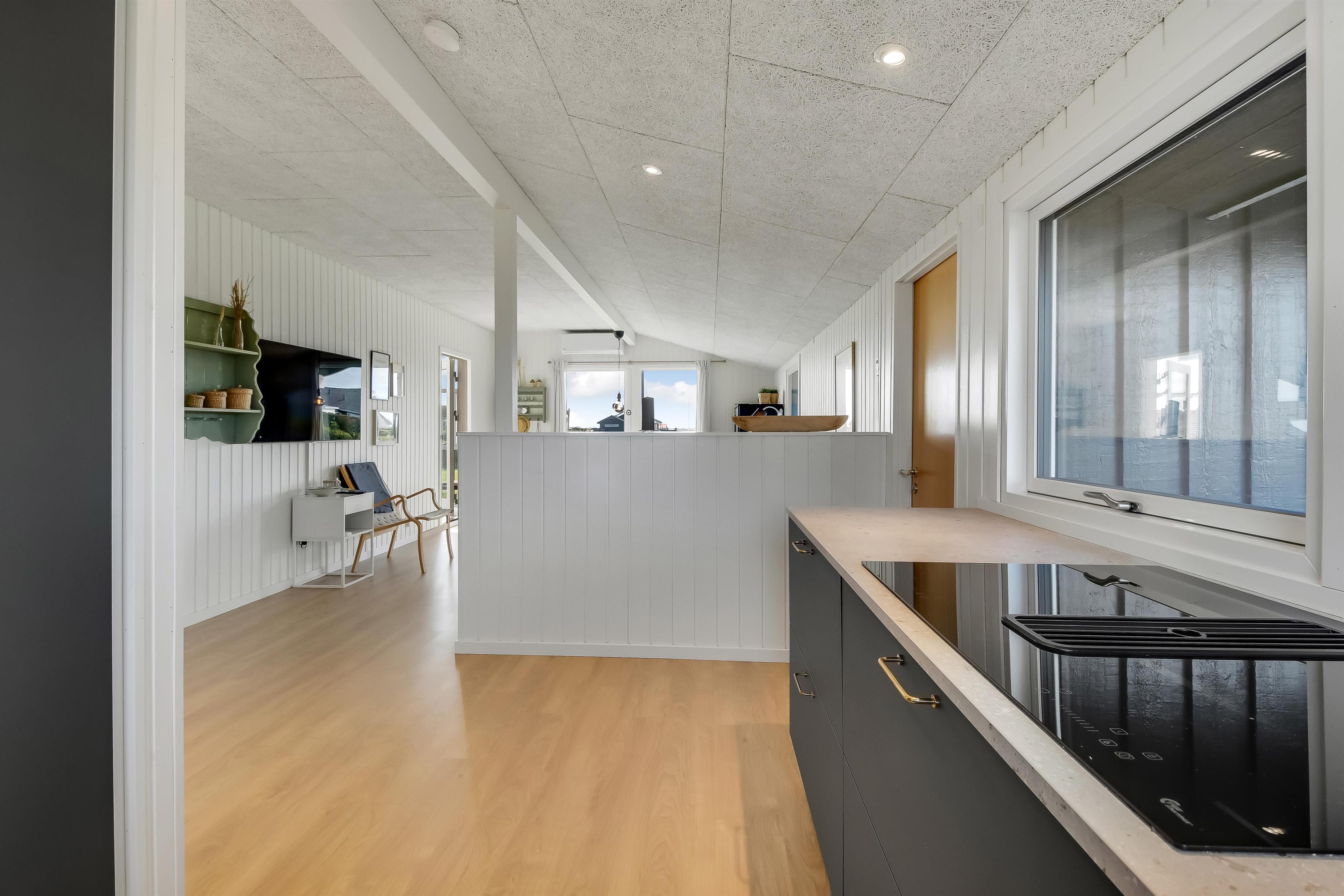 Das Haus mit 97 qm ist gut eingerichtet und im Jahr 2023 neu renoviert. Es hat 5 Schlafräume und 2 Badezimmer. 4 Schlafräume sind im Haus und 1 Schlafraum mit Badezimmer mit Toilette liegt im Anbau. Sie gelangen im Haus über den großen Flur zum Badezimmer und zu 3 von 5 Schlafräumen: 1DB + 1E + 1B. Im Zentrum befindet sich der kombinierte Wohnraum mit TV, (Deutsche und Dänsche Programme) Esszimmer und Küche mit hohen geöffneten Decken. In Verlängerung zum Wohnraum gibt es einen Ausgang zu einer der neuen Terrassen, die geschlossen und mit Außen-Whirlpool versehen ist. Das größte Zimmer (1DB) liegt alleine und hat ein eigenes Badezimmer sowie Ausgang zu einer der Terrassen. Im Anbau (1DB) gibt es Fußbodenheizung und Toilette und ein Trockner. Das Haus ist mit Qualitätsmaterialien renoviert worden und steht hell und schön da. Die moderne Küche ist mit Ceranfeld-Kochplatte, großem Kühlschrank, Mikrowelle und Geschirrspüler ausgestattet. Es gibt Fußbodenheizung im größten Teil des Hauses; eine Wärmepumpe ist vorhanden und kann das ganze Haus aufwärmen und spart auch Energiekosten. Wenn Sie ein Elektroauto oder einen Plug-in-Hybrid haben, verfügt das Haus über eine Ladebox. Rauchen ist nicht erlaubt. 1 Kinderbett und 1 Kinderstuhl. Max. 3 Hund sind erlaubt.