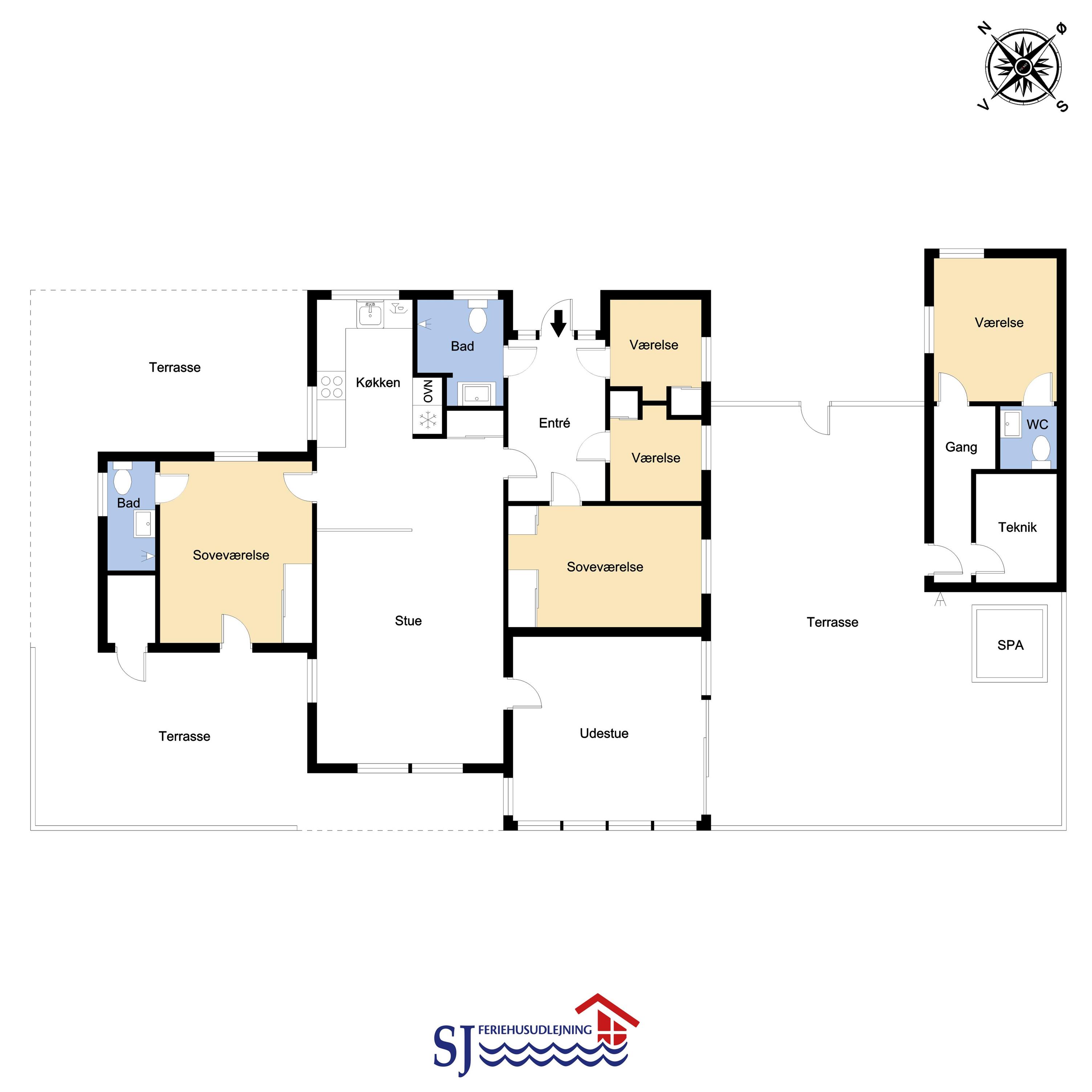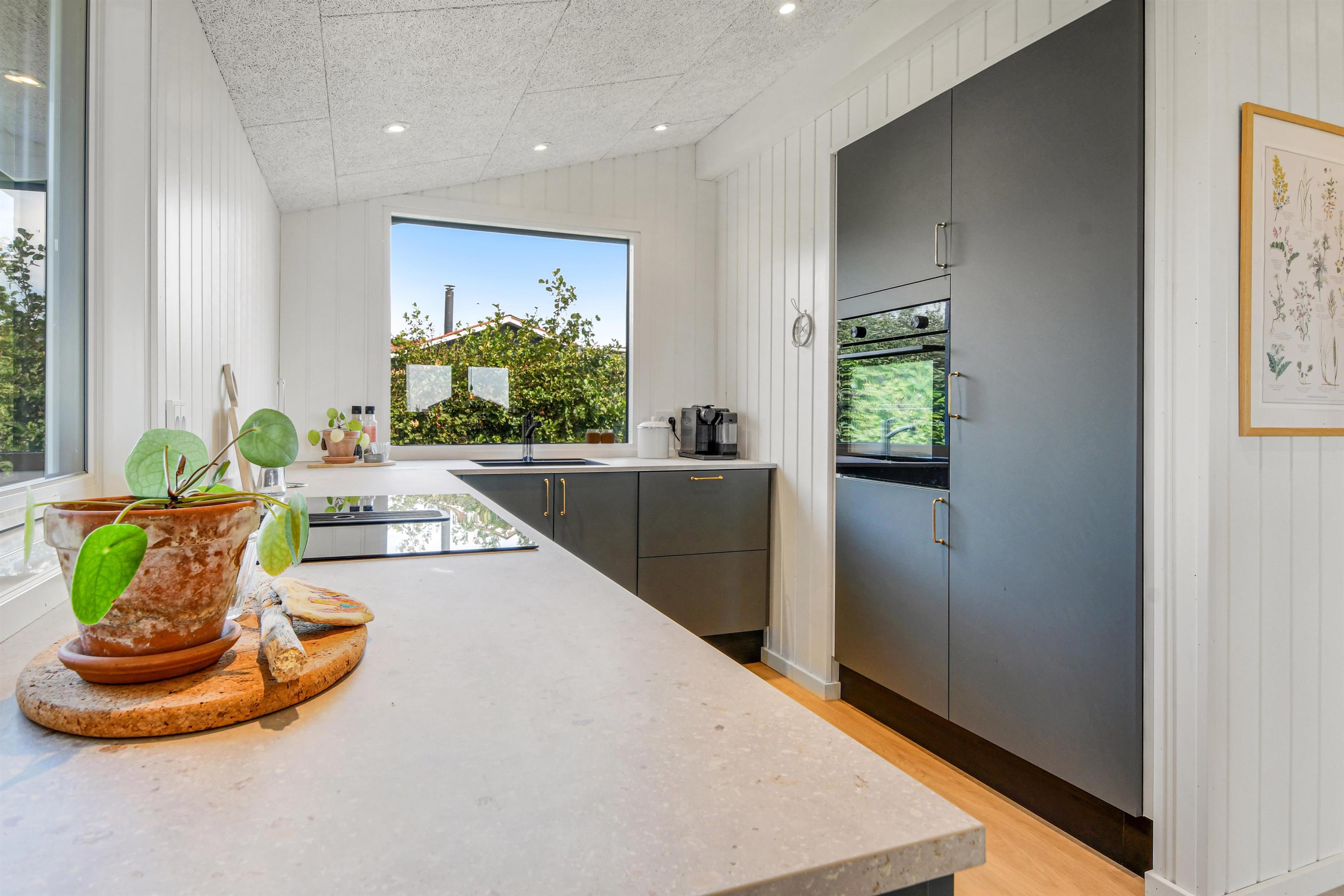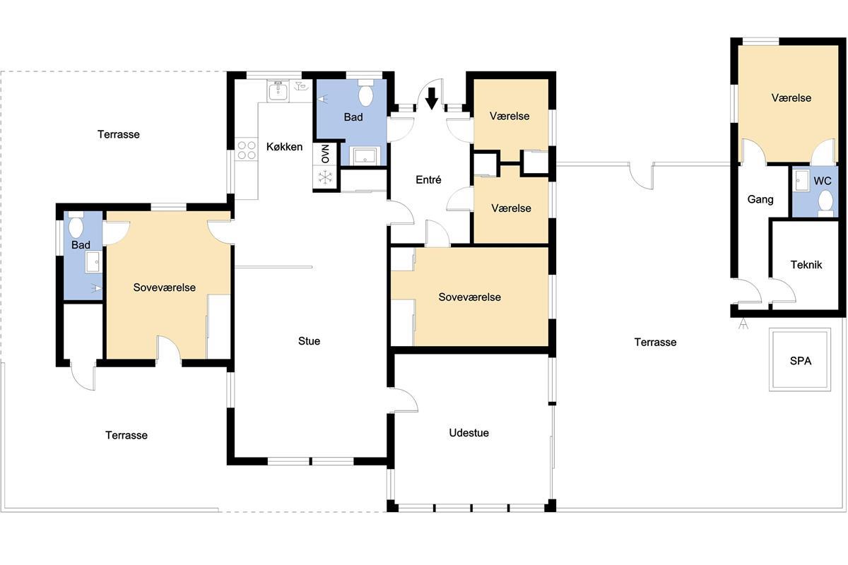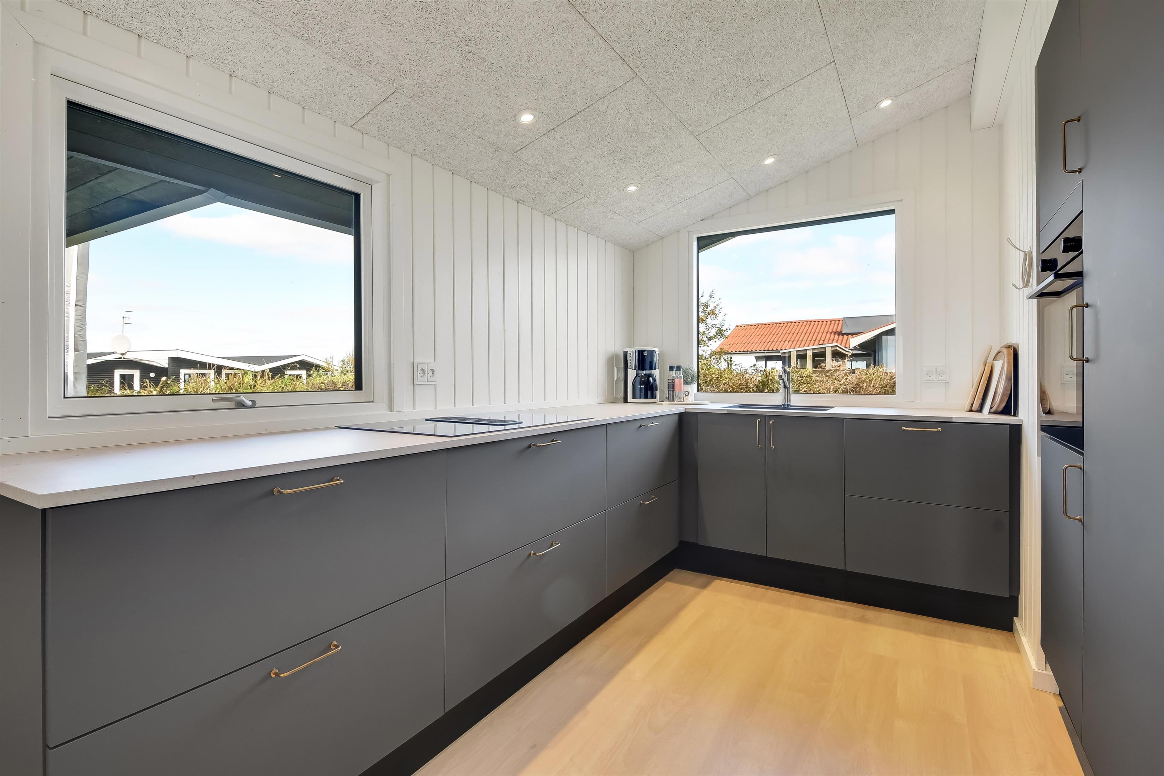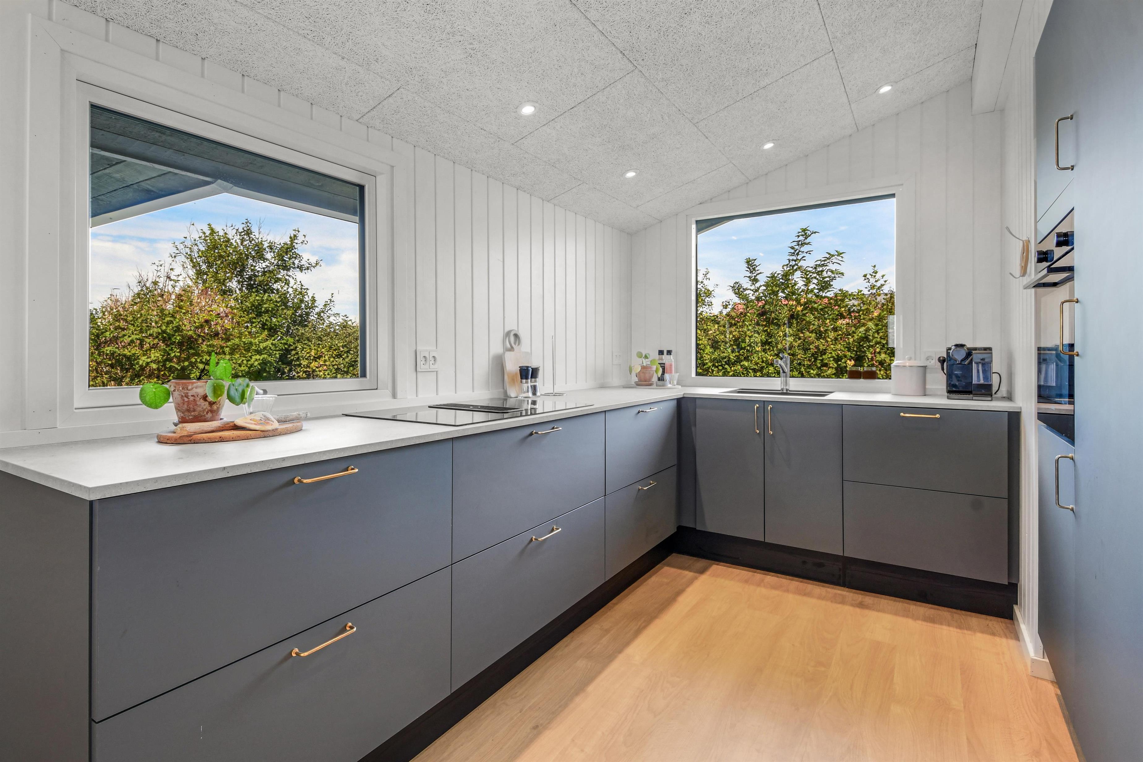 Das Haus mit 97 qm ist gut eingerichtet und im Jahr 2023 neu renoviert. Es hat 5 Schlafräume und 2 Badezimmer. 4 Schlafräume sind im Haus und 1 Schlafraum mit Badezimmer mit Toilette liegt im Anbau. Sie gelangen im Haus über den großen Flur zum Badezimmer und zu 3 von 5 Schlafräumen: 1DB + 1E + 1B. Im Zentrum befindet sich der kombinierte Wohnraum mit TV, (Deutsche und Dänsche Programme) Esszimmer und Küche mit hohen geöffneten Decken. In Verlängerung zum Wohnraum gibt es einen Ausgang zu einer der neuen Terrassen, die geschlossen und mit Außen-Whirlpool versehen ist. Das größte Zimmer (1DB) liegt alleine und hat ein eigenes Badezimmer sowie Ausgang zu einer der Terrassen. Im Anbau (1DB) gibt es Fußbodenheizung und Toilette und ein Trockner. Das Haus ist mit Qualitätsmaterialien renoviert worden und steht hell und schön da. Die moderne Küche ist mit Ceranfeld-Kochplatte, großem Kühlschrank, Mikrowelle und Geschirrspüler ausgestattet. Es gibt Fußbodenheizung im größten Teil des Hauses; eine Wärmepumpe ist vorhanden und kann das ganze Haus aufwärmen und spart auch Energiekosten. Wenn Sie ein Elektroauto oder einen Plug-in-Hybrid haben, verfügt das Haus über eine Ladebox. Rauchen ist nicht erlaubt. 1 Kinderbett und 1 Kinderstuhl. Max. 3 Hund sind erlaubt.