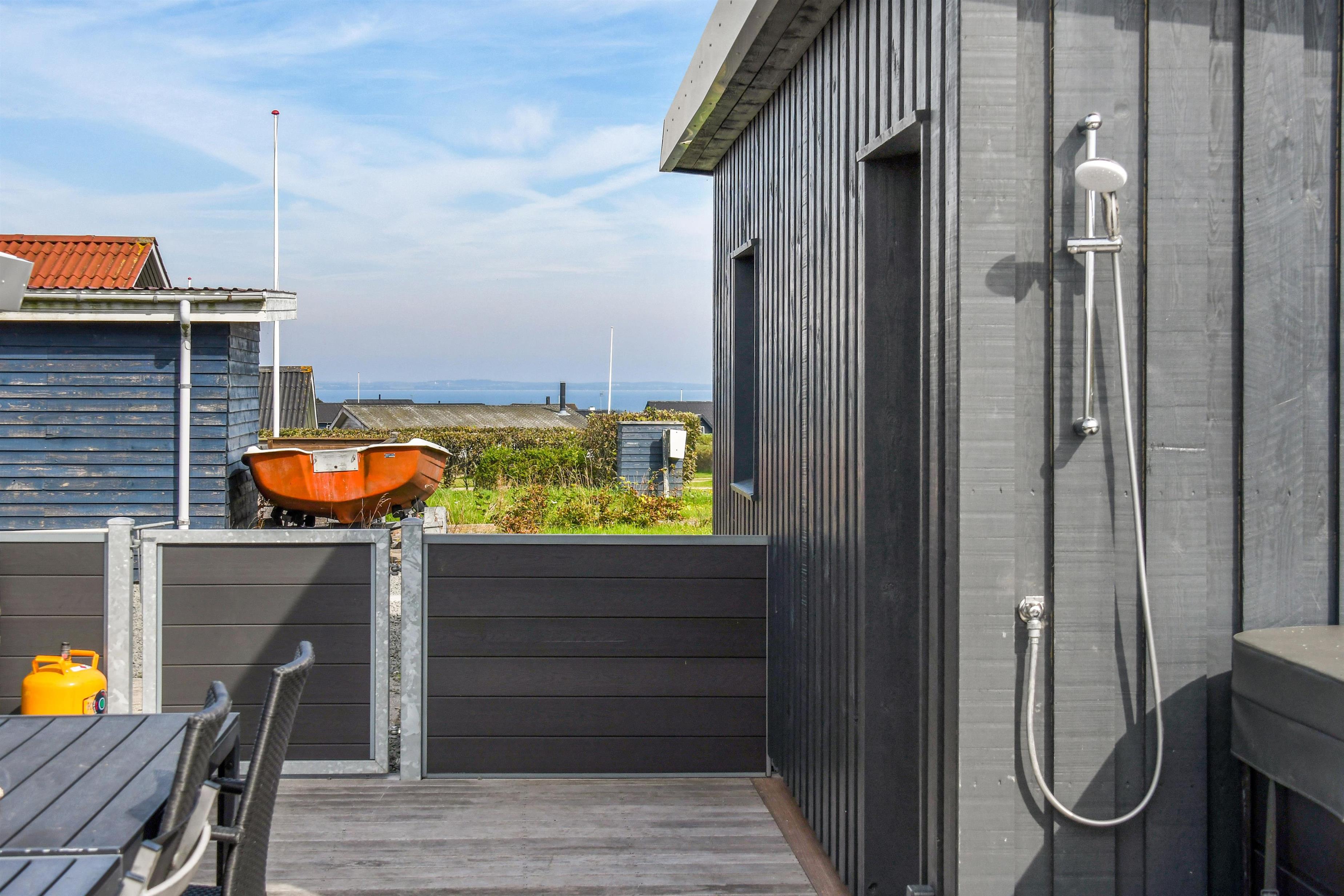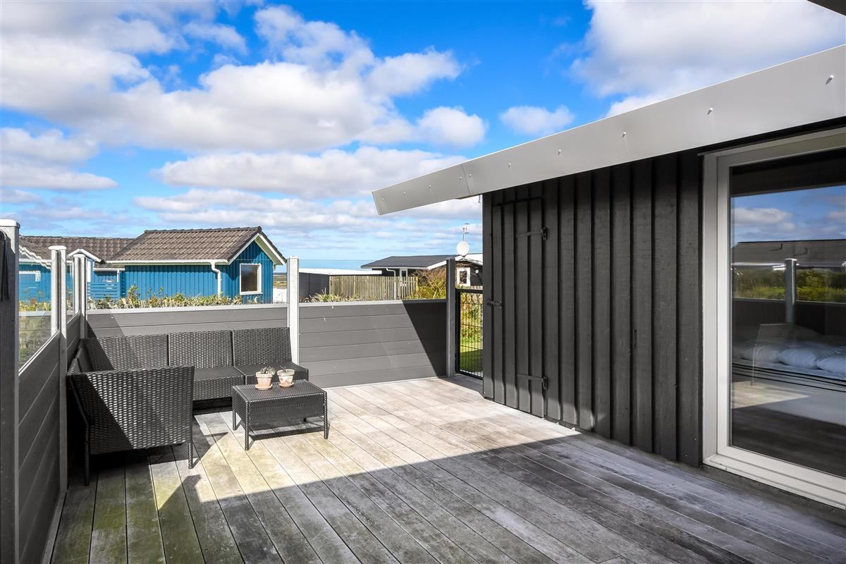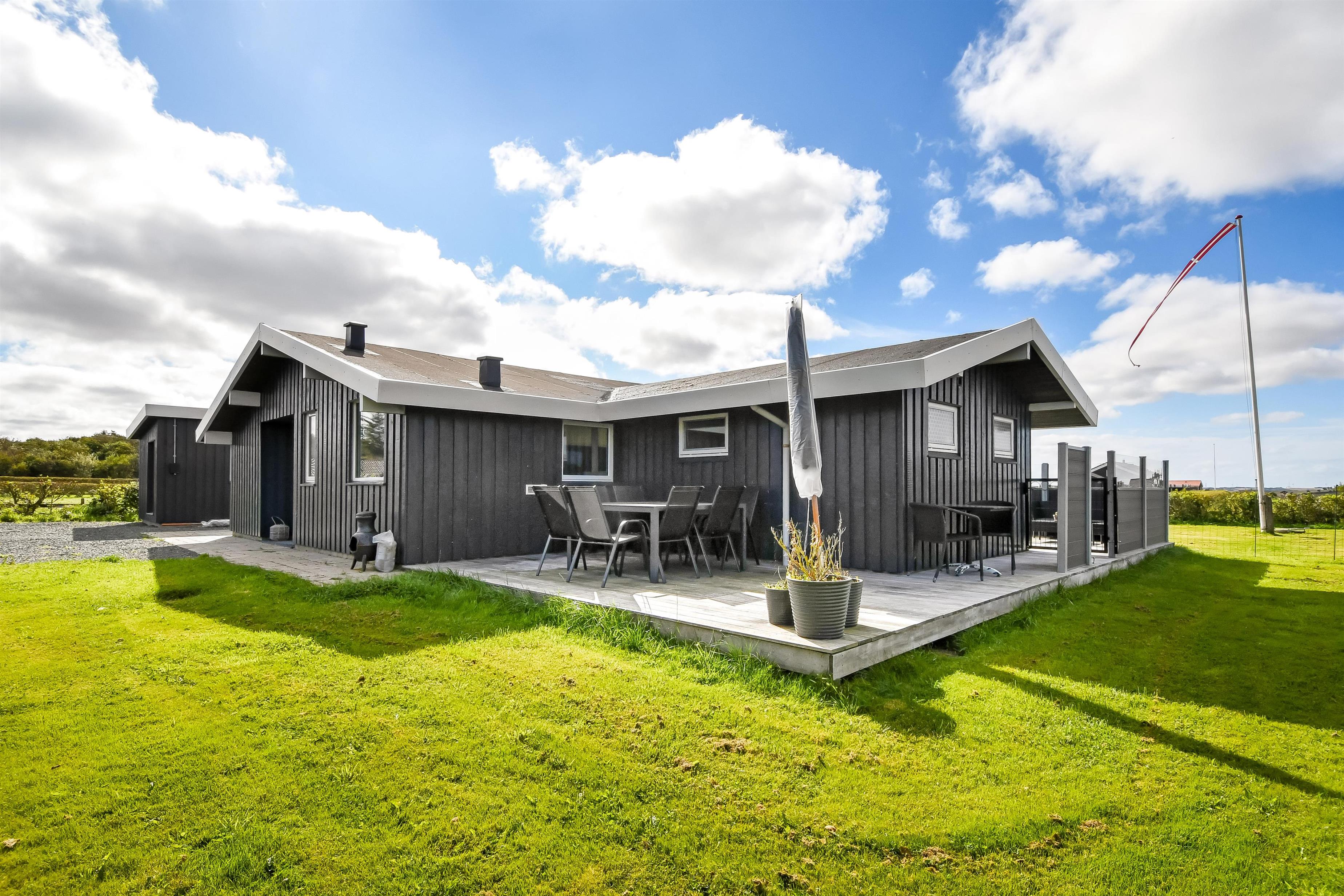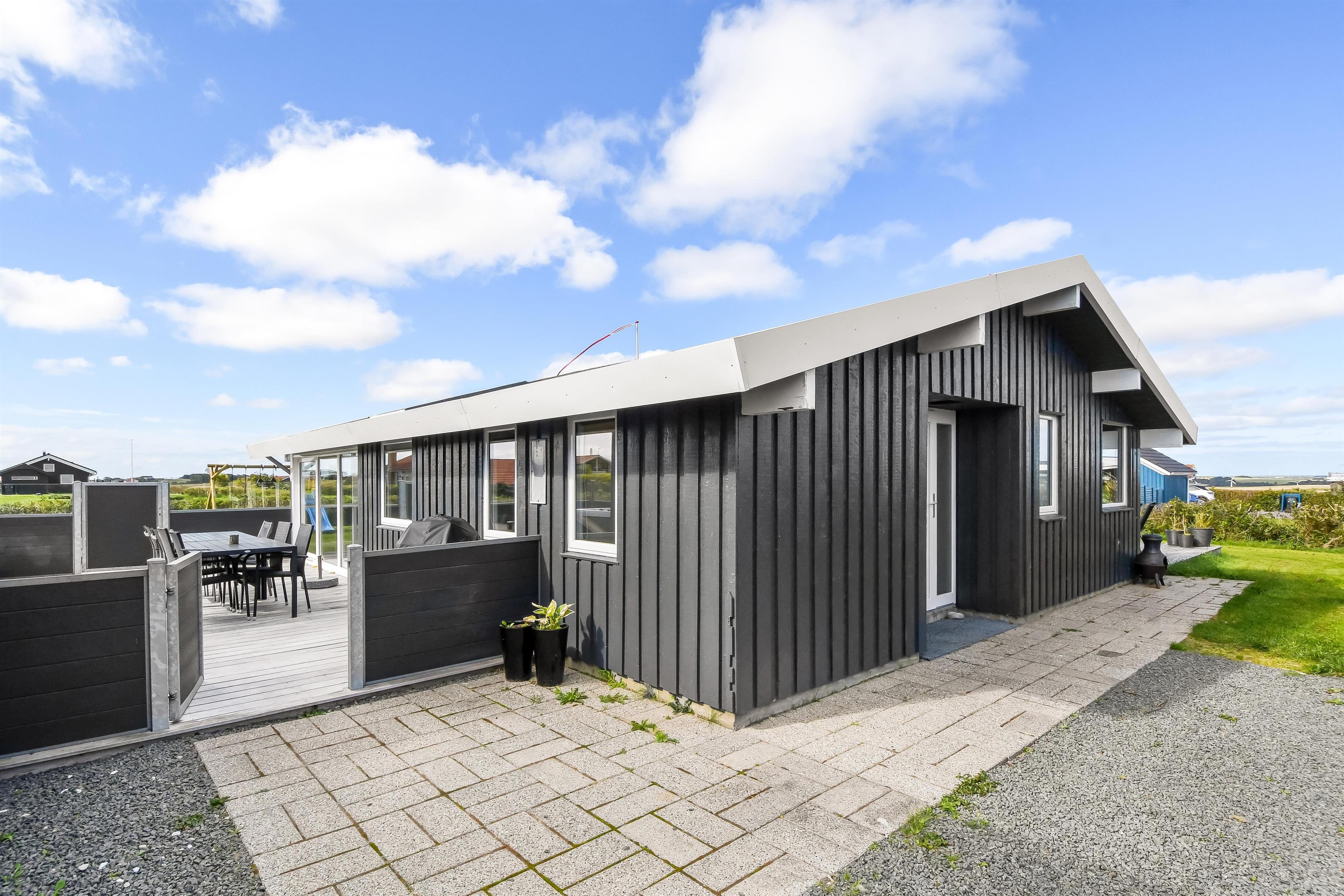 Das Haus liegt auf einem etwa 865 qm großen, eingezäunten Grundstück, in hoher und ungestörter Lage an einem ruhigen Stichweg. Gepflegtes Grundstück mit Trampolin, Schaukel und bloß 700 m vom Strand entfernt. Fantastische, teilweise überdachte Terrassen-Anlage mit Gartenmöbeln, Grill und Sonnenliegen. Hier gibt es auch einen tollen Außen-Whirlpool, den Sie egal wie das Wetter ist, auch abends mit Blick zum Sternenhimmel genießen können. Hier finden Sie immer einen Platz entweder in der Sonne oder windgeschützt und mit Blick zum Limfjord. Gartenmöbel, Sonnenliegen und Grill können nach Bedarf umgestellt werden. Auch auf der hinteren Seite des Hauses gibt es eine Terrasse mit Gartenmöbeln und Blick über die Landschaft. Vom Haus gibt es ein Wegsystem, das Sie in wenigen Minuten zum Fjord, Badestrand und Badebrücken leitet. In der Nähe vom Haus liegt der neue Naturspielplatz aus Naturmaterialien, wo es z.B. Rutsche, Schaukel und vieles andere gibt. Es gibt auch ein Restaurant und einen Eiskiosk, die nur in der Saison geöffnet haben. Außerdem sind es nur 4 km nach Lemvig, einem Handelsort mit vielen Geschäften, Restaurants, Kino, Skaterbahn, Museum u.a.