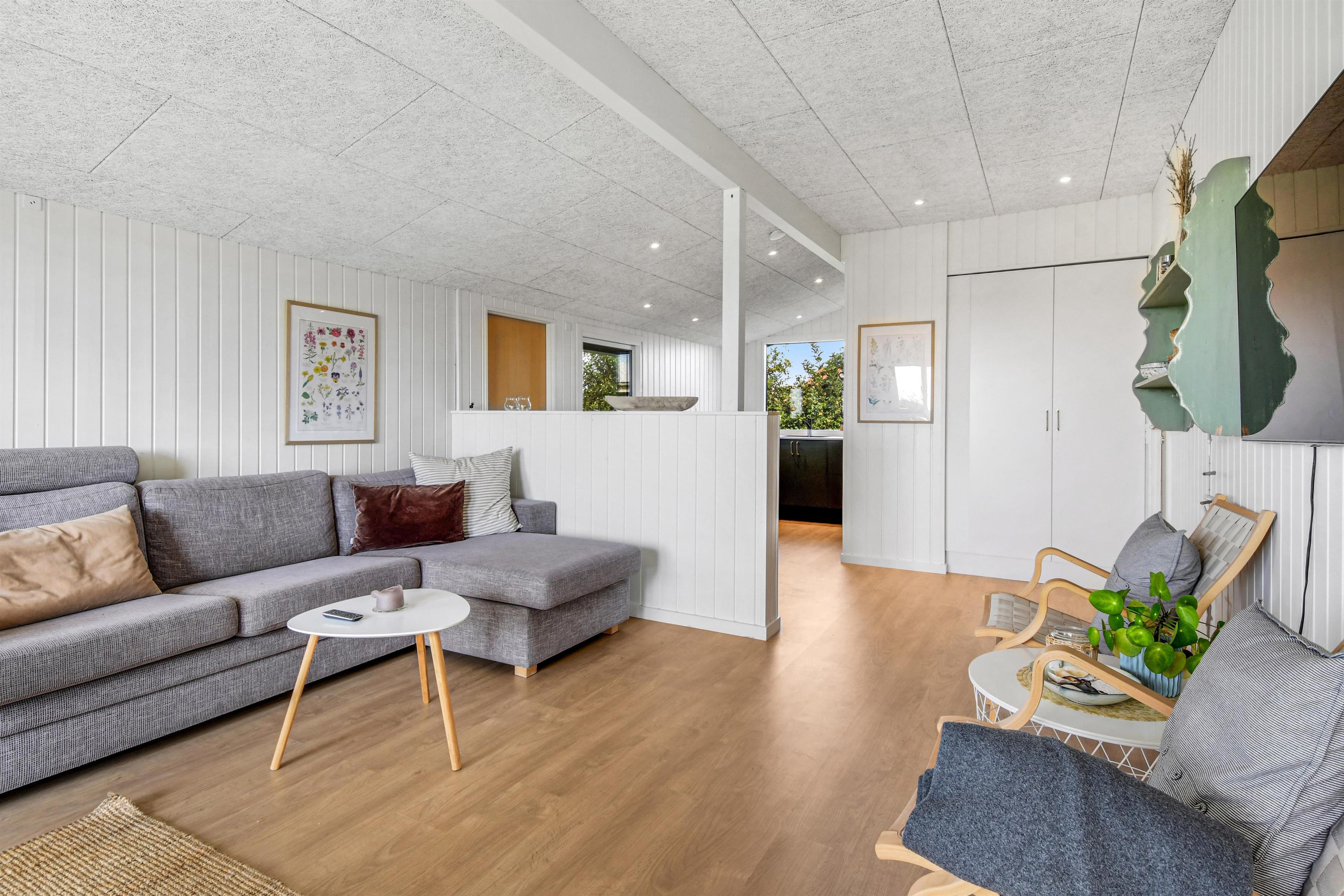 Schönes und helles Ferienhaus am Ende eines Stichweges mit schöner, windgeschützter Terrassenanlage mit Morgen- und Abendsonne. Vom Grundstück gibt es außerdem einen tollen Blick zum Limfjord. Das Haus ist ideal für 2 Erwachsene, 2 Familien oder eine Großfamilie, die gerne in einer kinderfreundlichen Gegend wohnen möchten. Bis zu drei Hunde dürfen mitgebracht werden. Das Haus hat freies Glasfasernetz, ist hell und gemütlich eingerichtet, liegt auf einem ruhigen Stichweg und ist bloß 700 m vom Limfjord entfernt.