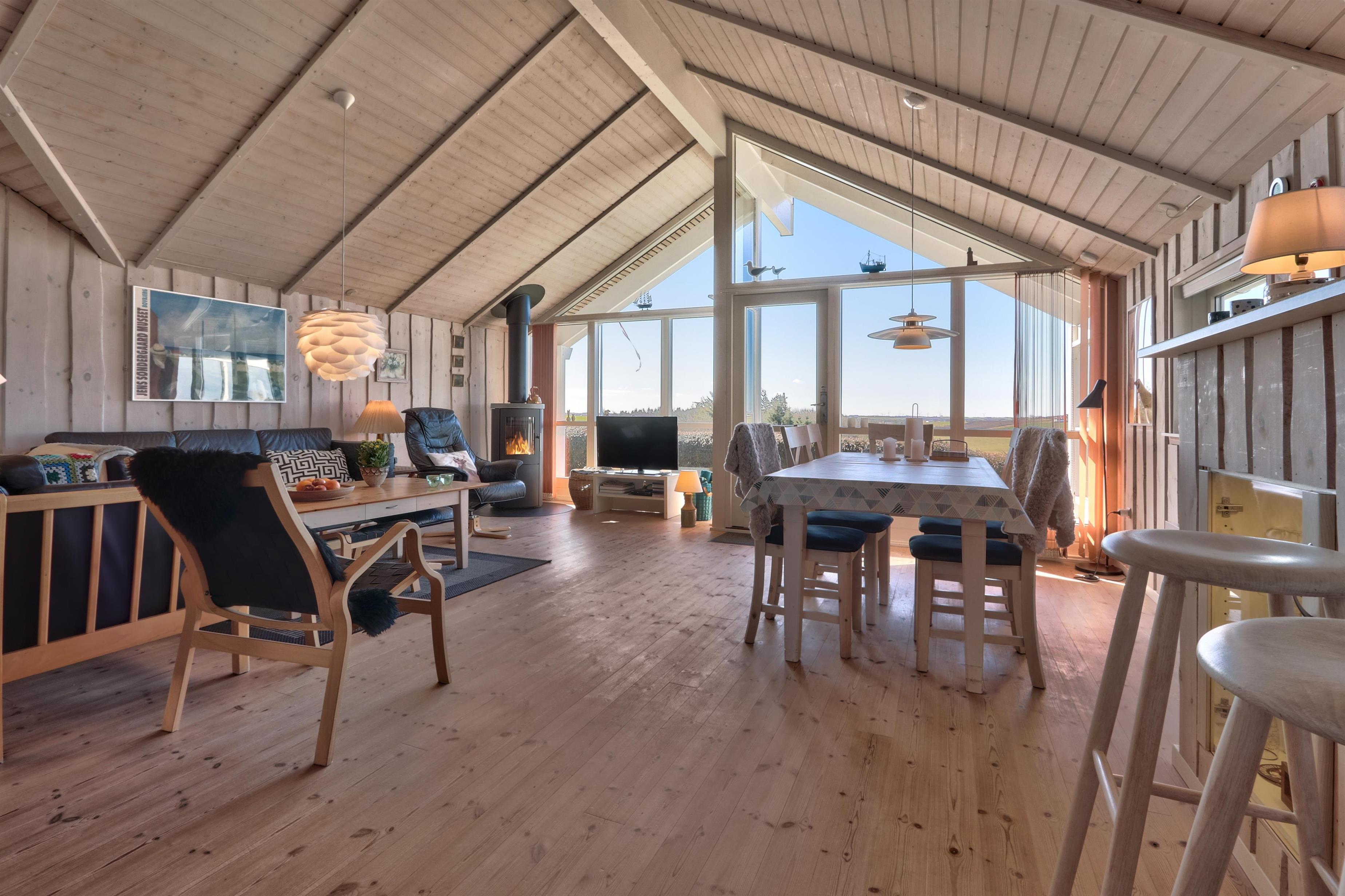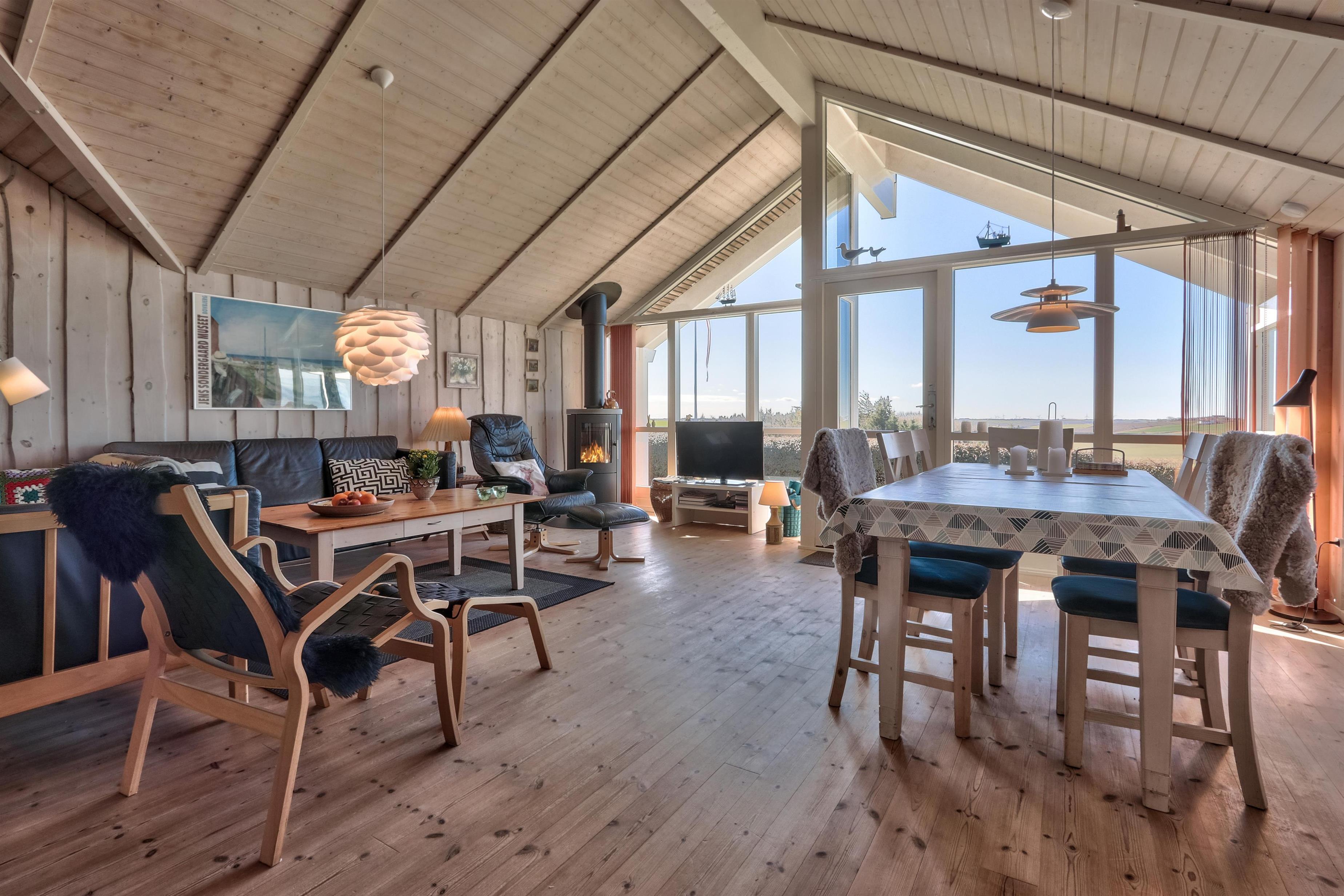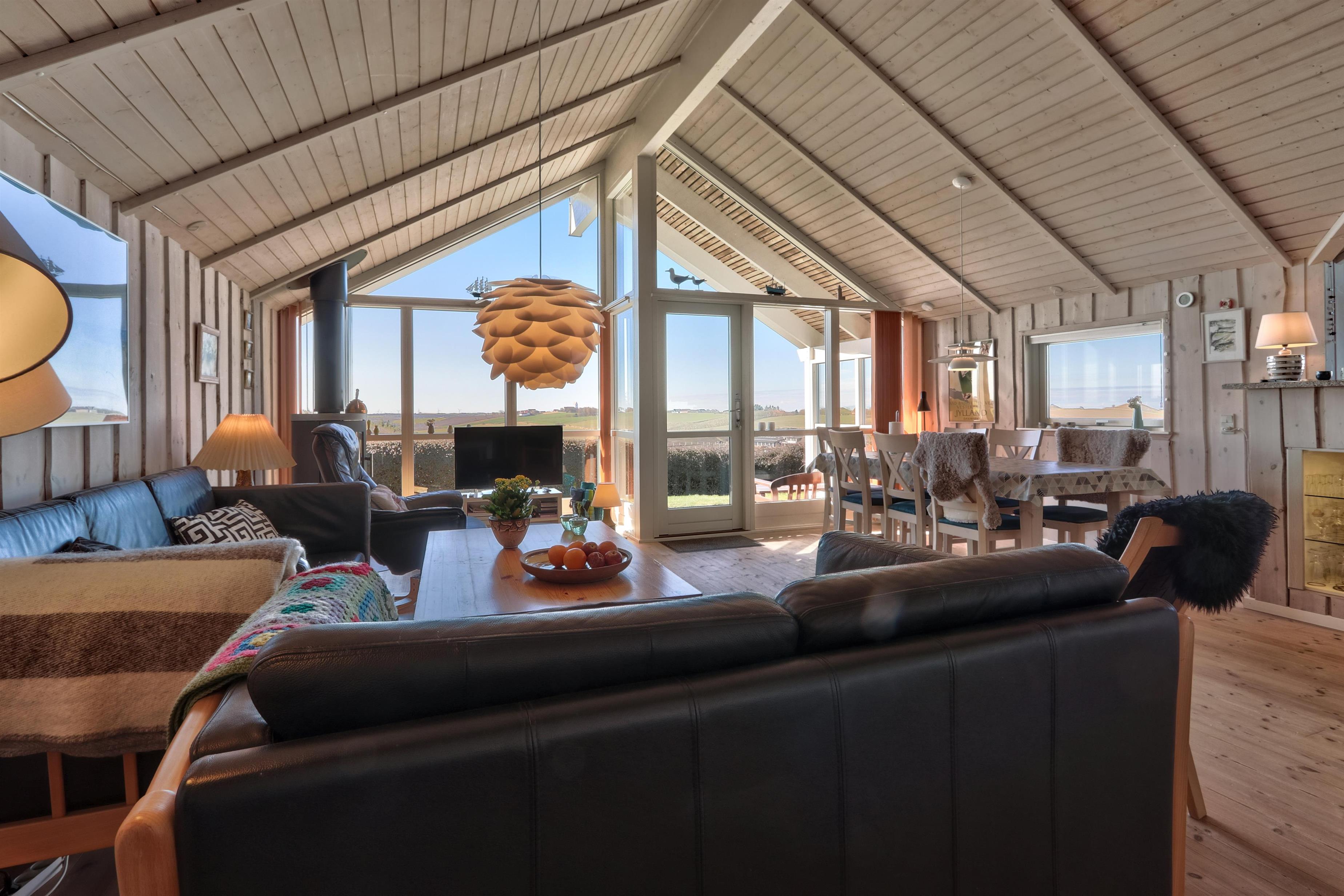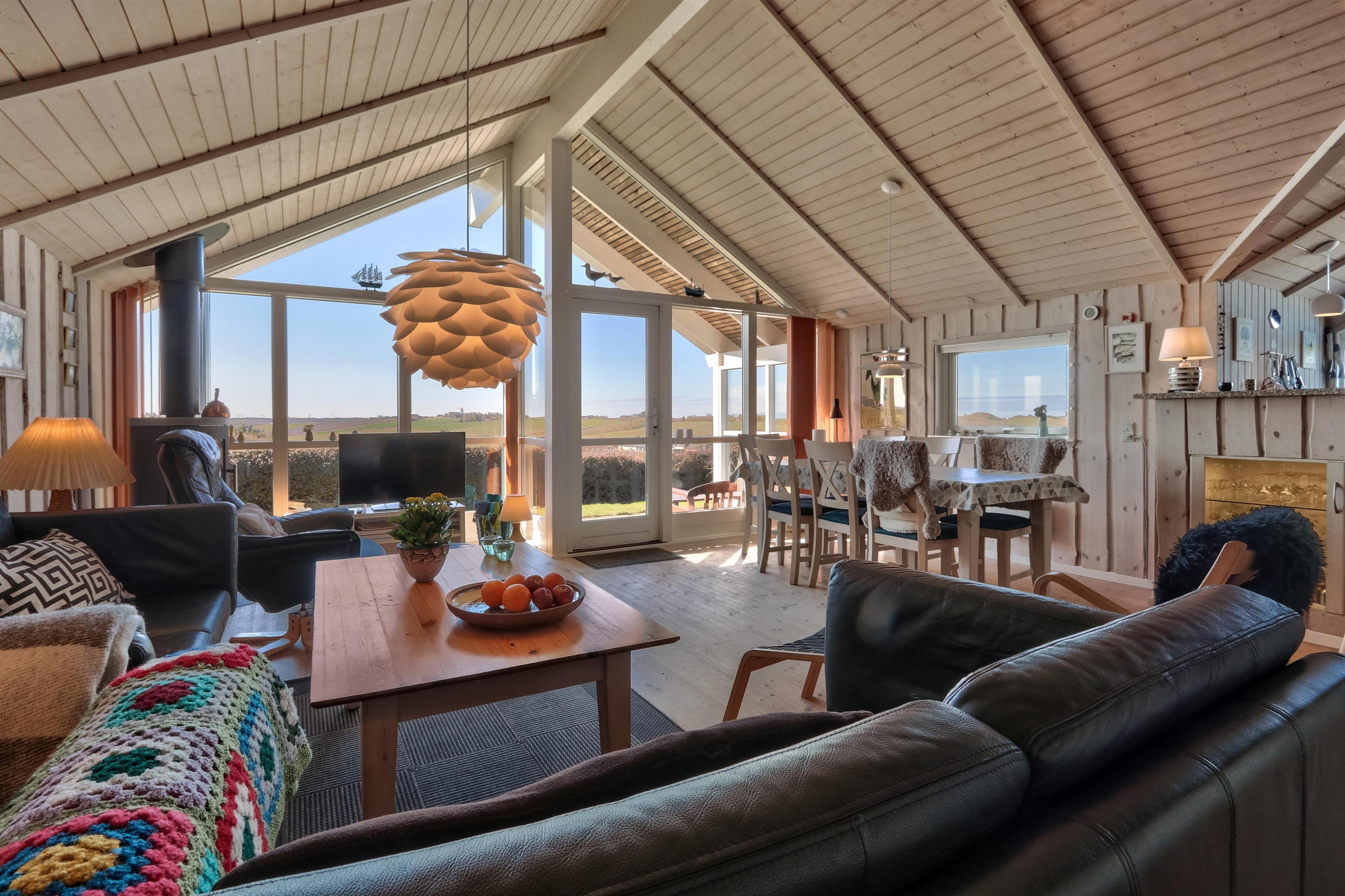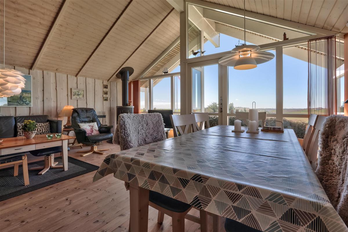 Dieses hochgelegene Ferienhaus befindet sich auf einem 860 m² großen Naturgrundstück mit Rasenfläche und bietet eine fantastische, ungestörte Aussicht auf die malerische und hügelige Landschaft von Gjellerodde. Vom Haus aus hat man einen Blick auf den Limfjord, der nur etwa 400 m entfernt ist, und die Vindmühlen in der Nordsee sind am Horizont zu sehen. Das Haus bietet Platz für bis zu 6 Personen und 1 Hund. Gratis Internet. Nicht-Raucher Haus.