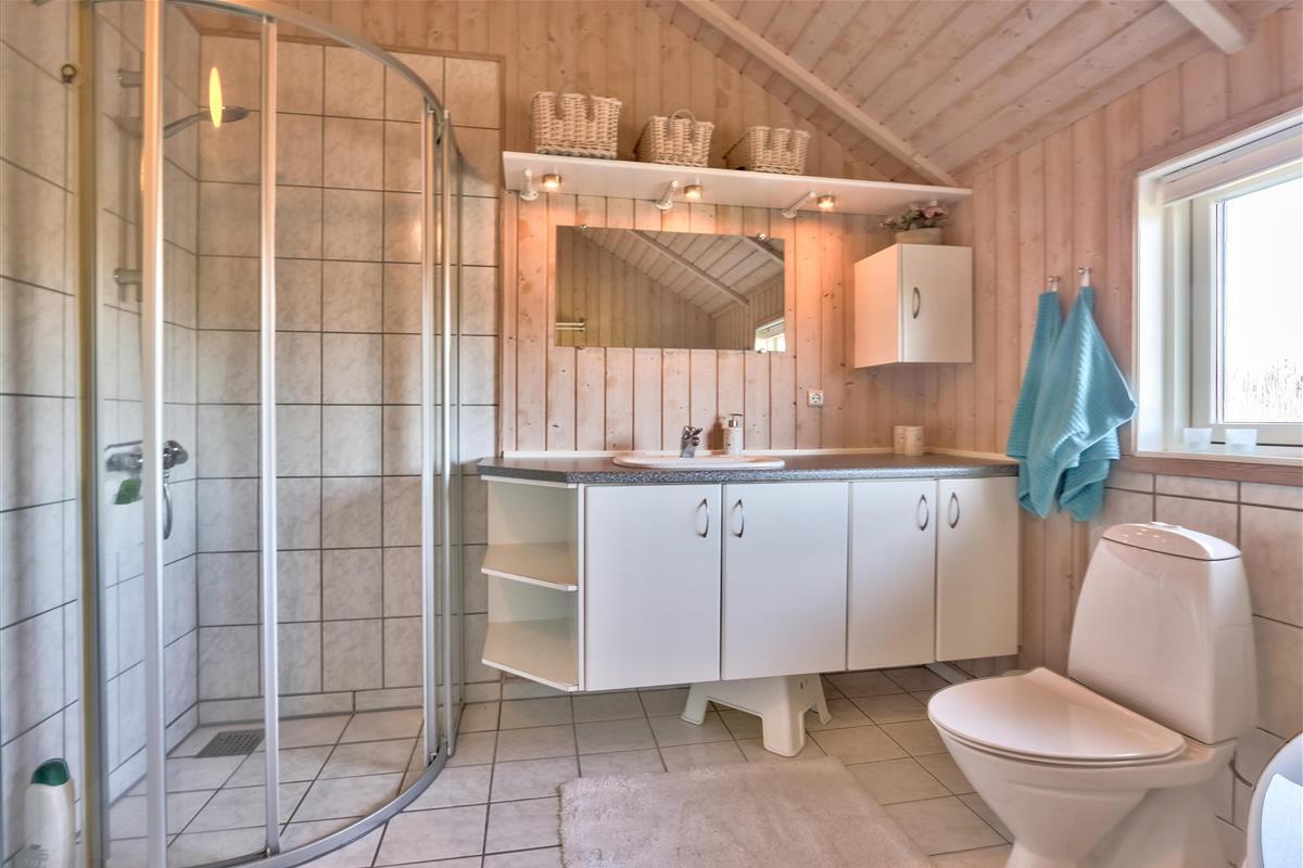 Ein schöner Weg führt direkt vom Haus in wenigen Minuten ans Wasser, wo es auch einen Badesteg gibt. Nicht weit entfernt befindet sich ein wunderschöner Naturspielplatz aus Holz mit Fußballfeld, Schaukeln, Rutschen und vielem mehr. Einkaufsmöglichkeiten, Café und der Strand von Gjellerodde sind ebenfalls schnell erreichbar.