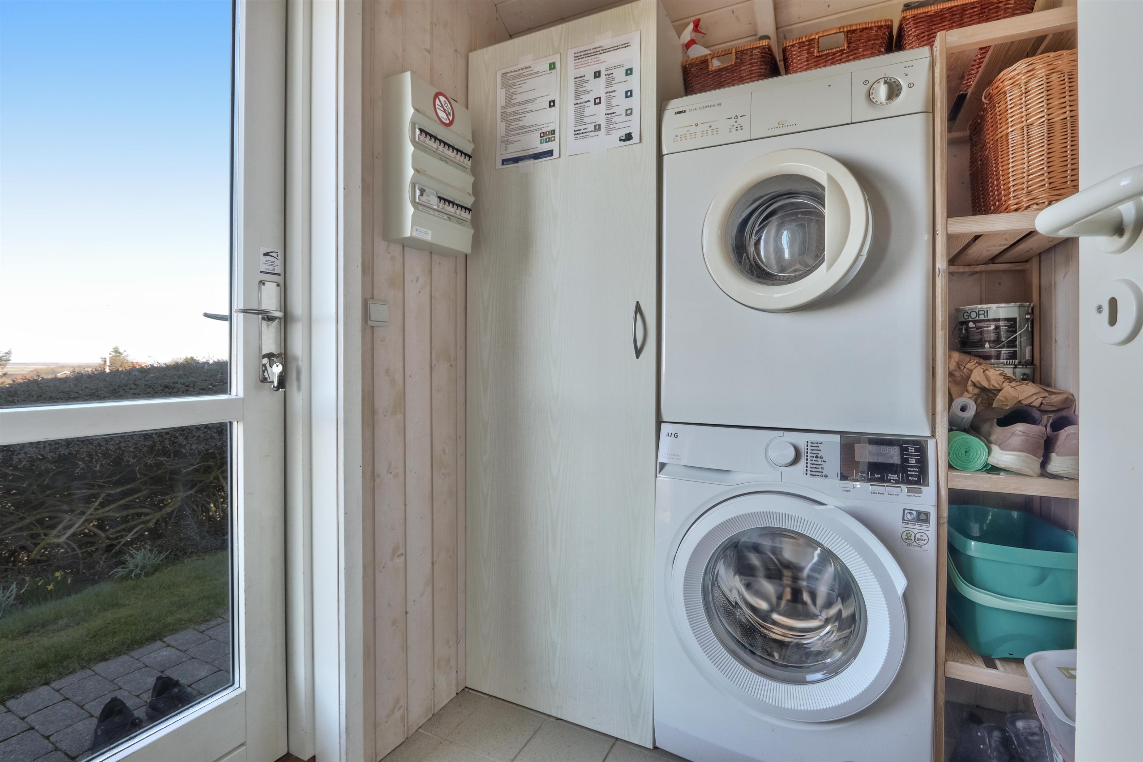 Das Haus ist hervorragend ausgestattet mit Whirlpool, Trockner, Waschmaschine, Wärmepumpe und Kaminofen. Badezimmer und Hauswirtschaftsraum verfügen über Fliesenböden mit Fußbodenheizung.
