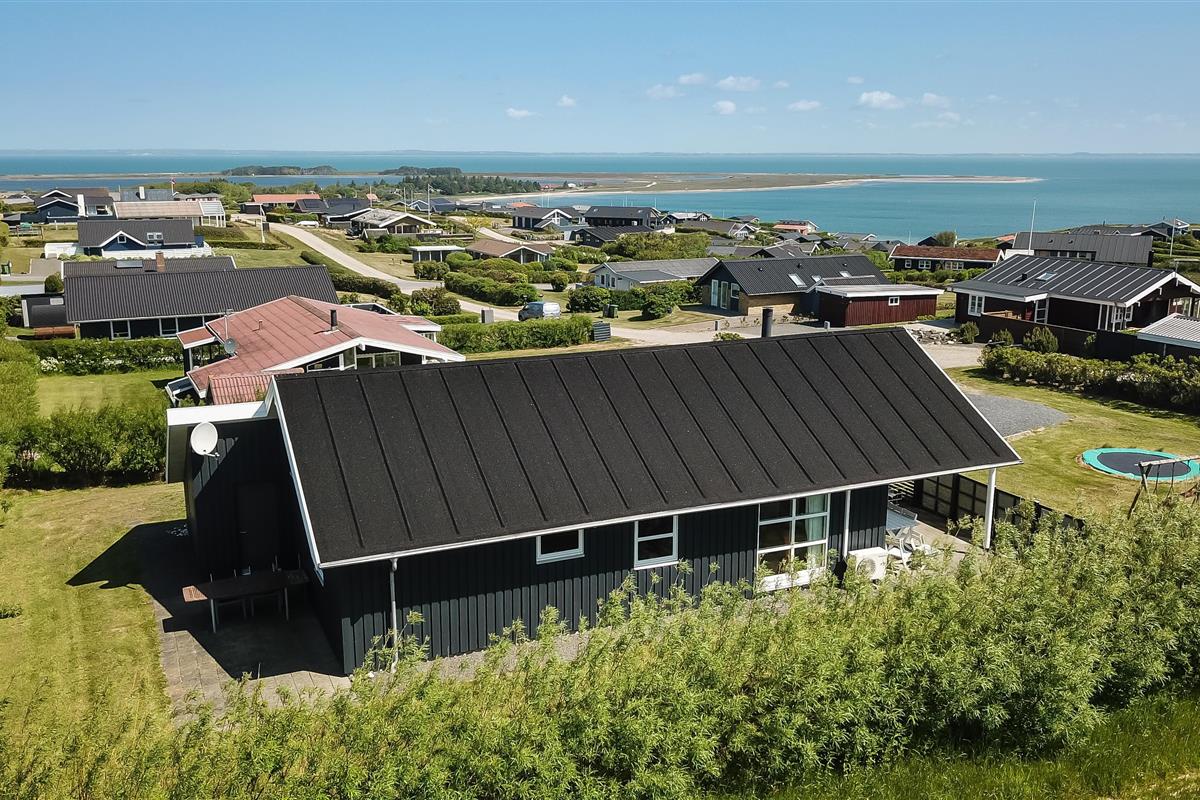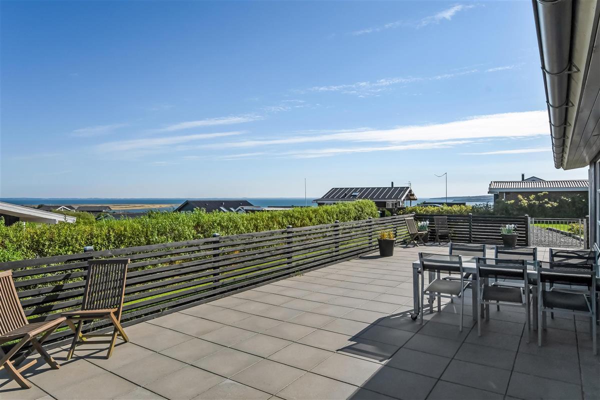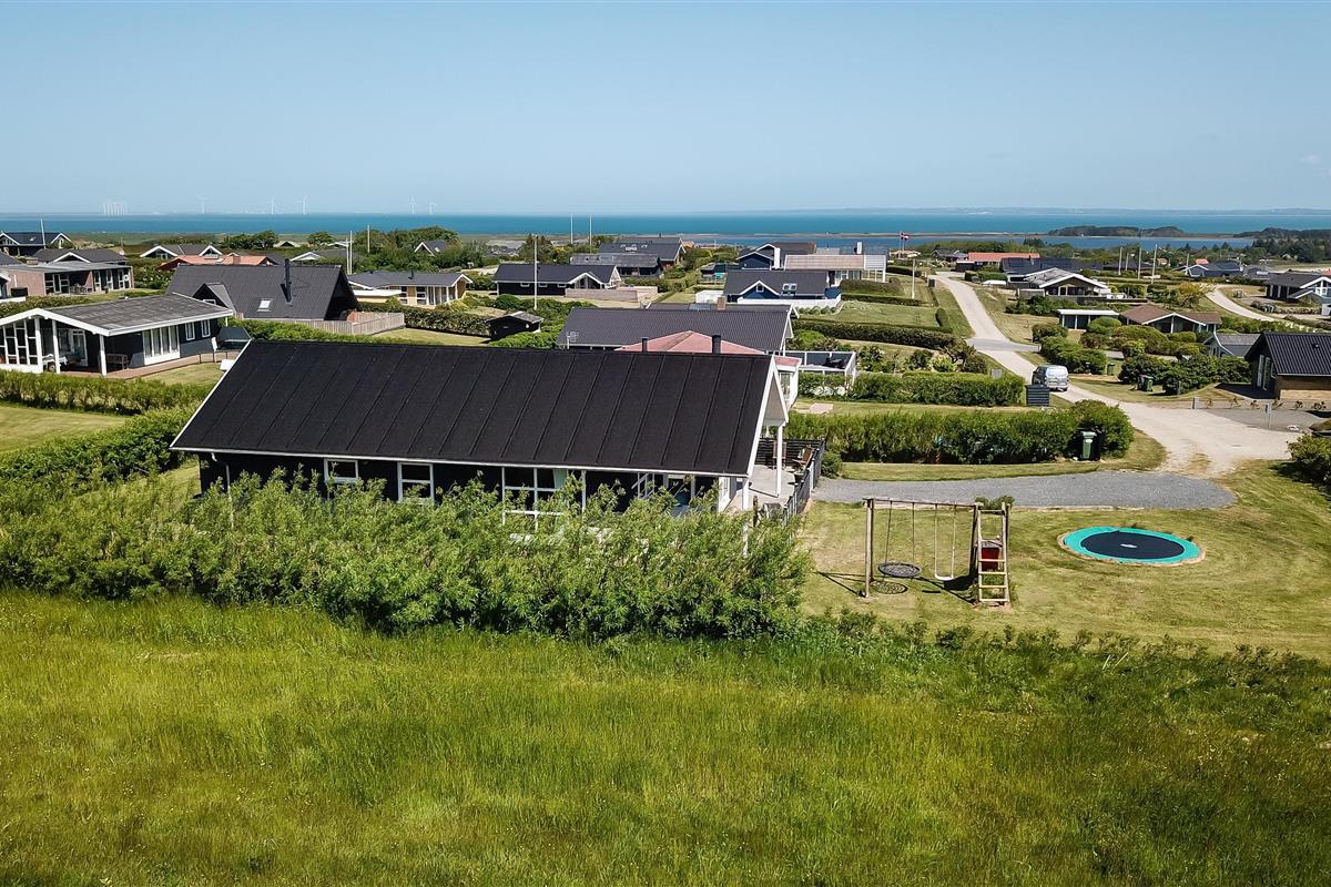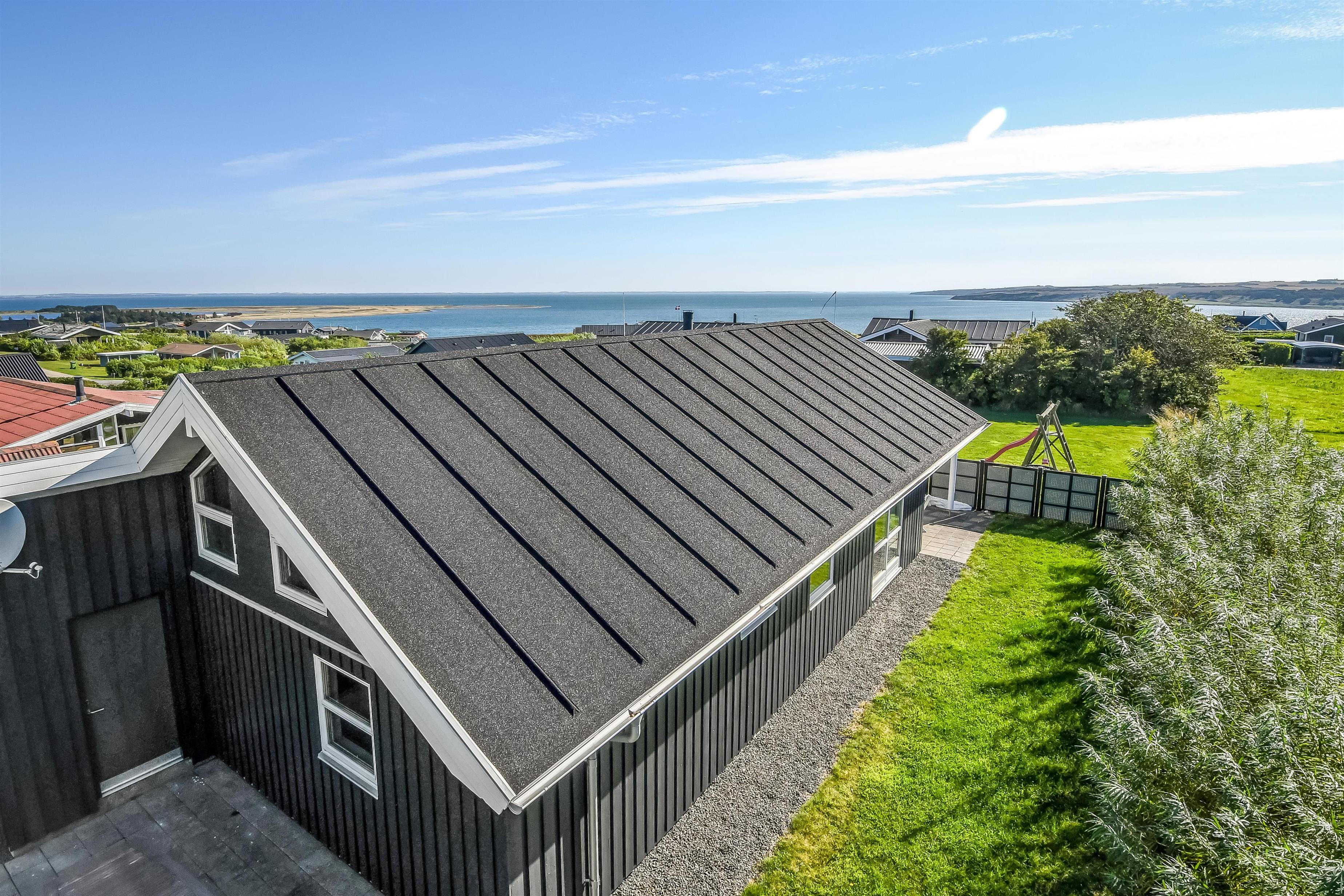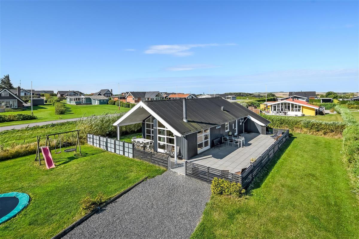 Die Außenbereiche sind ganz besonders. Das Haus liegt auf einem etwa 900 qm großen eingezäunten Grundstück. Großartige, teilweise überdachte und eingezäunte Terrassenanlage mit Gartenmöbeln, Grill und Sonnenliegen. Hier finden Sie immer einen Platz in der Sonne und einen wunderschönen Blick zum Limfjord. Auch auf der hinteren Seite vom Haus gibt es eine schöne Terrasse mit Gartenmöbeln und Blick über die Landschaft. In dem praktischen Schuppen gibt es Auflagen für die Terrassenmöbel, Gas- und Kugelgrill. Hohe, ungestörte Lage an einem ruhigen Weg. Gepflegtes Grundstück mit Trampolin, Schaukel und nur 300 m bis zum Strand. Vom Haus aus gibt es ein Wegesystem, das Sie in wenigen Minuten direkt zum Fjord, Badestrand und Badesteig führen. In der Nähe vom Haus liegt ein schöner Naturspielplatz, der aus Naturmaterialien gemacht ist und mit einer Rutsche, Schaukel und vielem anderen ausgestattet ist. Hier gibt es auch einen Eis-Kiosk und ein Restaurant, die aber nur in der Saison geöffnet haben. Außerdem liegt der Ort Lemvig bloß 4 km vom Haus entfernt, wo Sie viele Geschäfte, Fischrestaurant, Kino, Skaterbahn u.a. finden können.