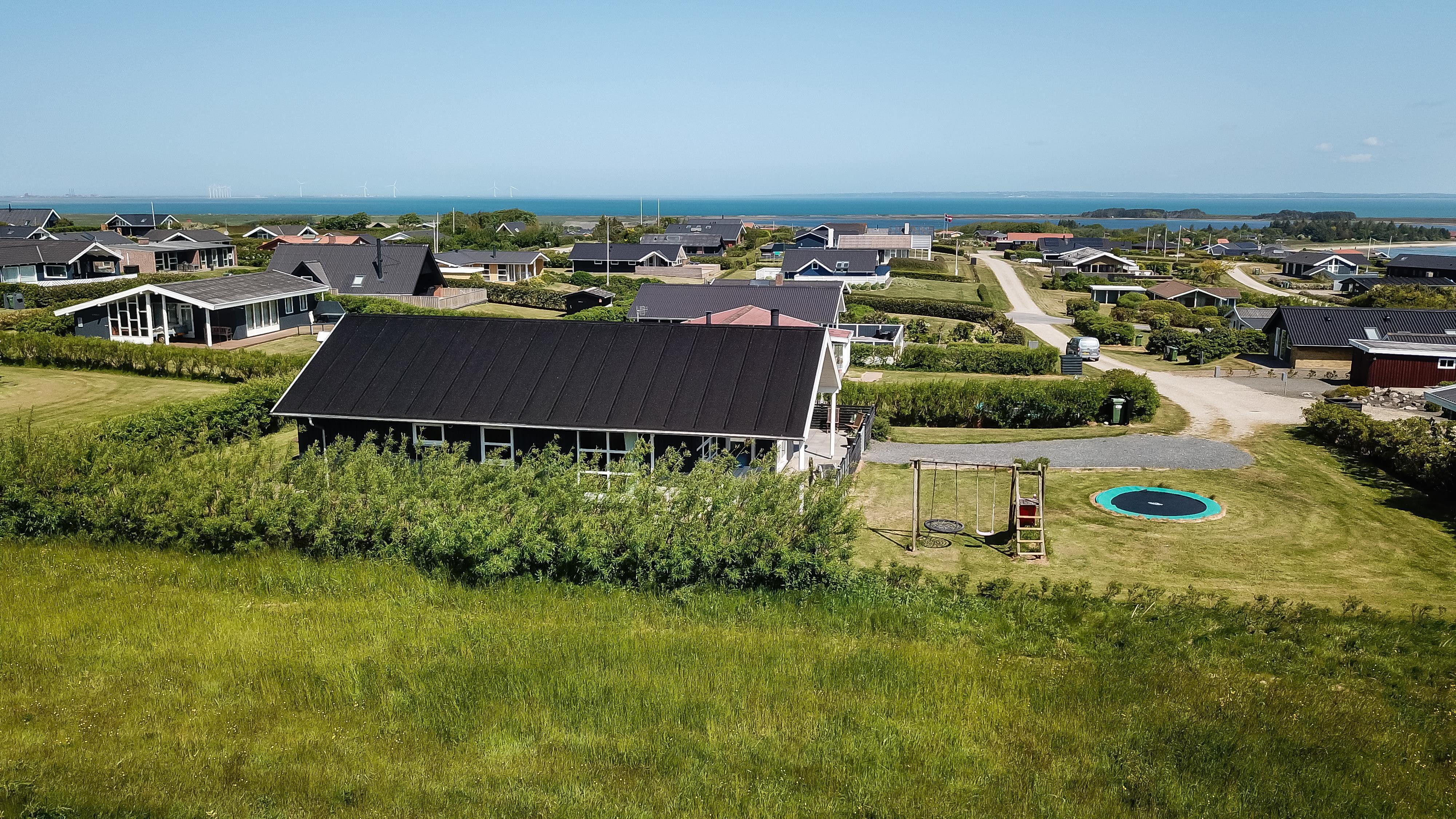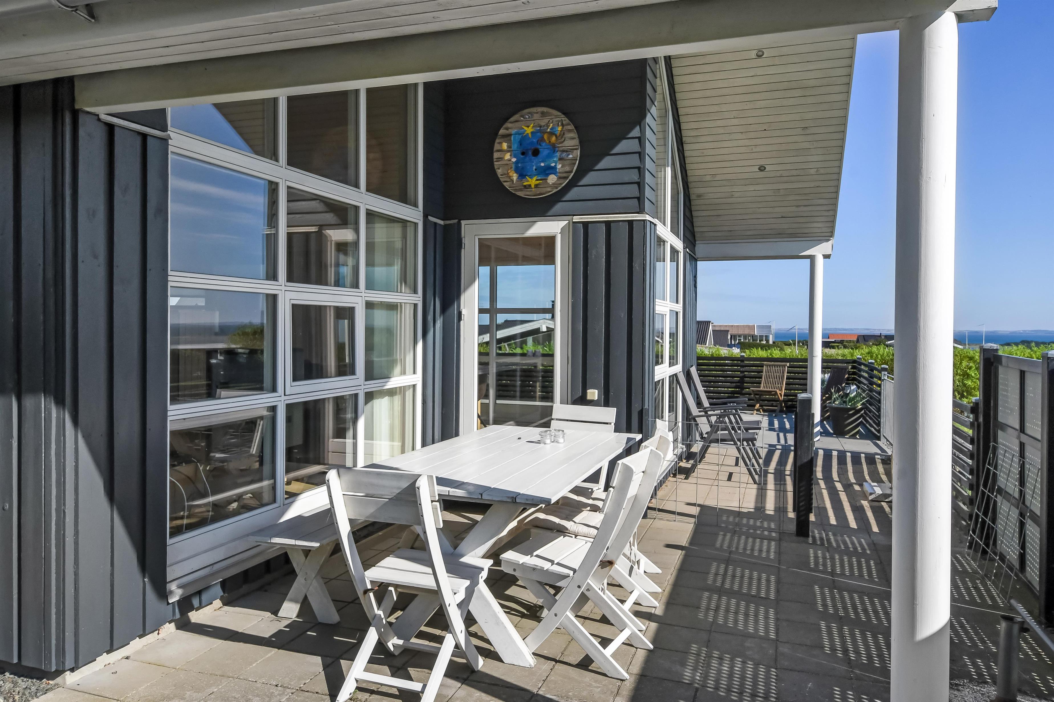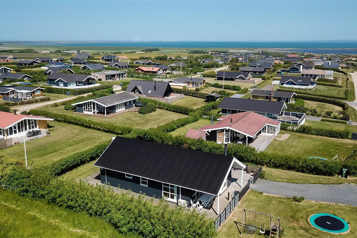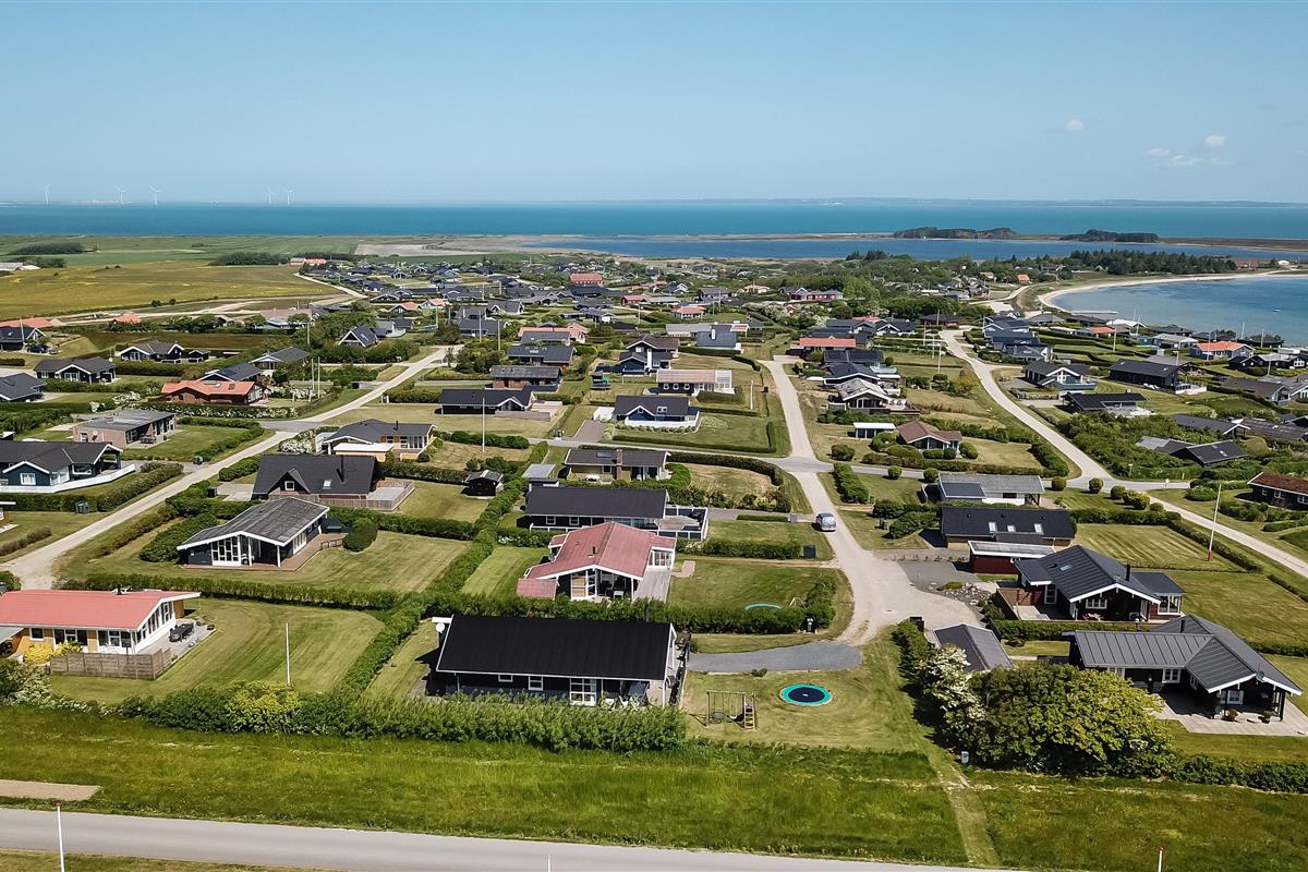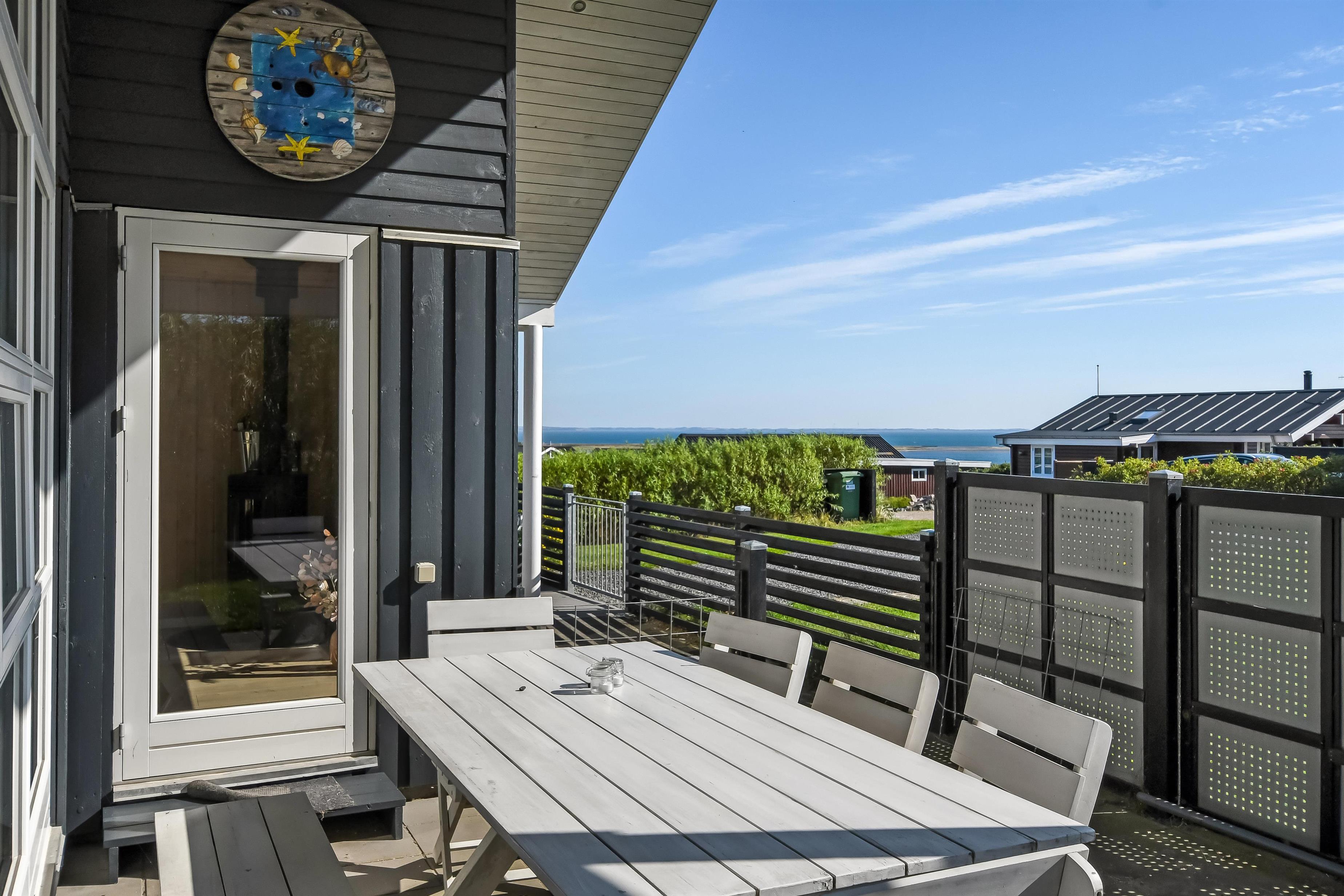 Die Außenbereiche sind ganz besonders. Das Haus liegt auf einem etwa 900 qm großen eingezäunten Grundstück. Großartige, teilweise überdachte und eingezäunte Terrassenanlage mit Gartenmöbeln, Grill und Sonnenliegen. Hier finden Sie immer einen Platz in der Sonne und einen wunderschönen Blick zum Limfjord. Auch auf der hinteren Seite vom Haus gibt es eine schöne Terrasse mit Gartenmöbeln und Blick über die Landschaft. In dem praktischen Schuppen gibt es Auflagen für die Terrassenmöbel, Gas- und Kugelgrill. Hohe, ungestörte Lage an einem ruhigen Weg. Gepflegtes Grundstück mit Trampolin, Schaukel und nur 300 m bis zum Strand. Vom Haus aus gibt es ein Wegesystem, das Sie in wenigen Minuten direkt zum Fjord, Badestrand und Badesteig führen. In der Nähe vom Haus liegt ein schöner Naturspielplatz, der aus Naturmaterialien gemacht ist und mit einer Rutsche, Schaukel und vielem anderen ausgestattet ist. Hier gibt es auch einen Eis-Kiosk und ein Restaurant, die aber nur in der Saison geöffnet haben. Außerdem liegt der Ort Lemvig bloß 4 km vom Haus entfernt, wo Sie viele Geschäfte, Fischrestaurant, Kino, Skaterbahn u.a. finden können.
