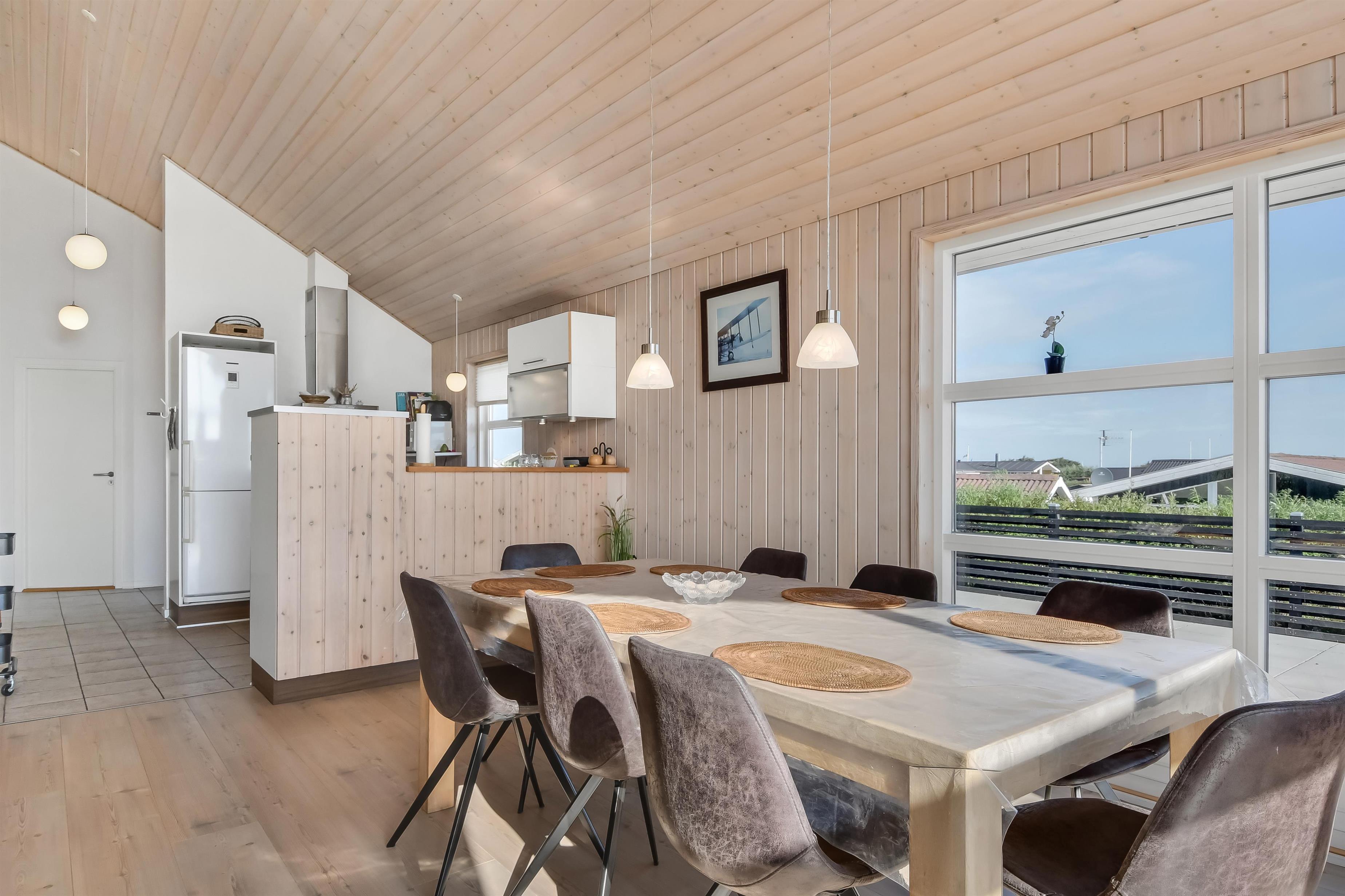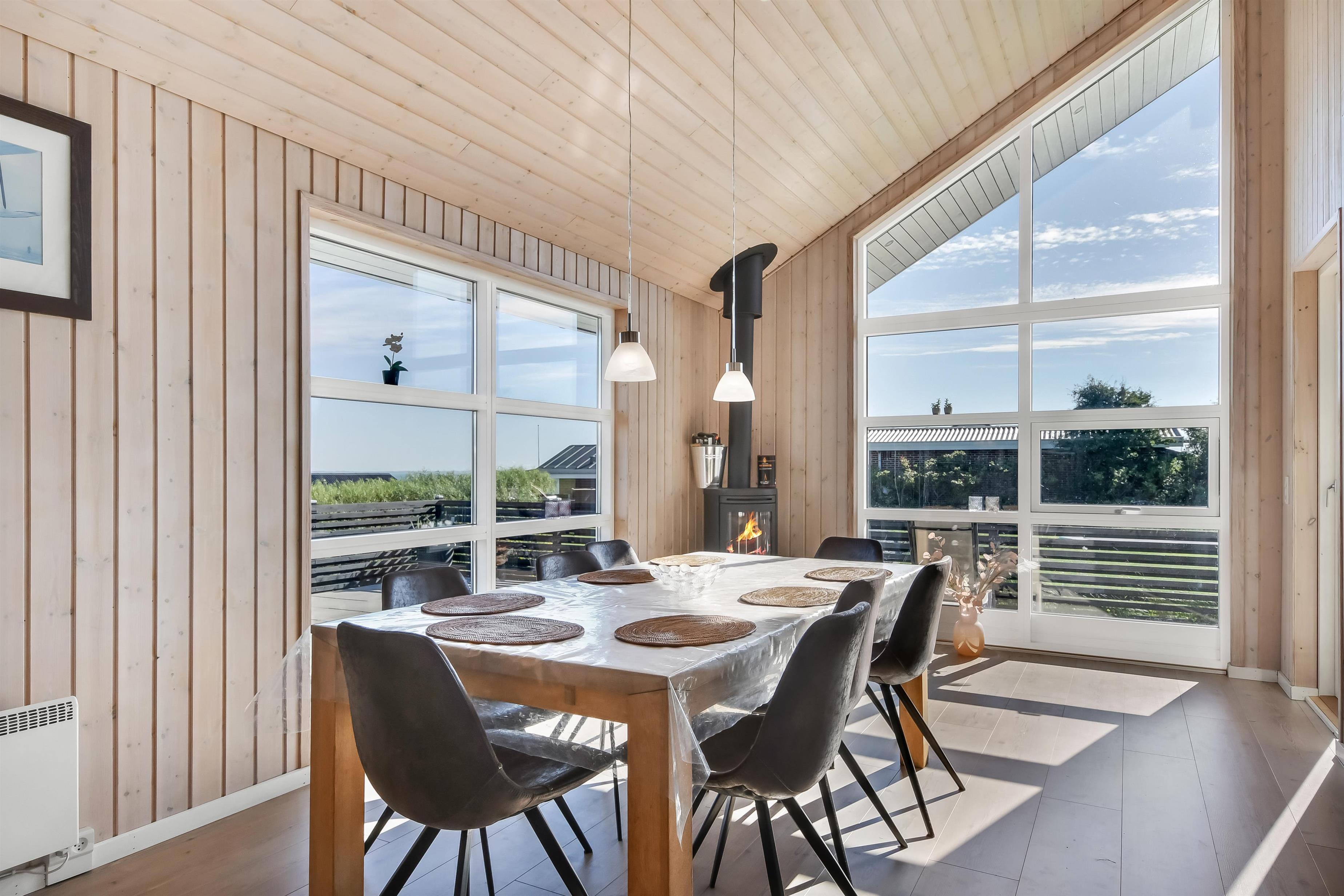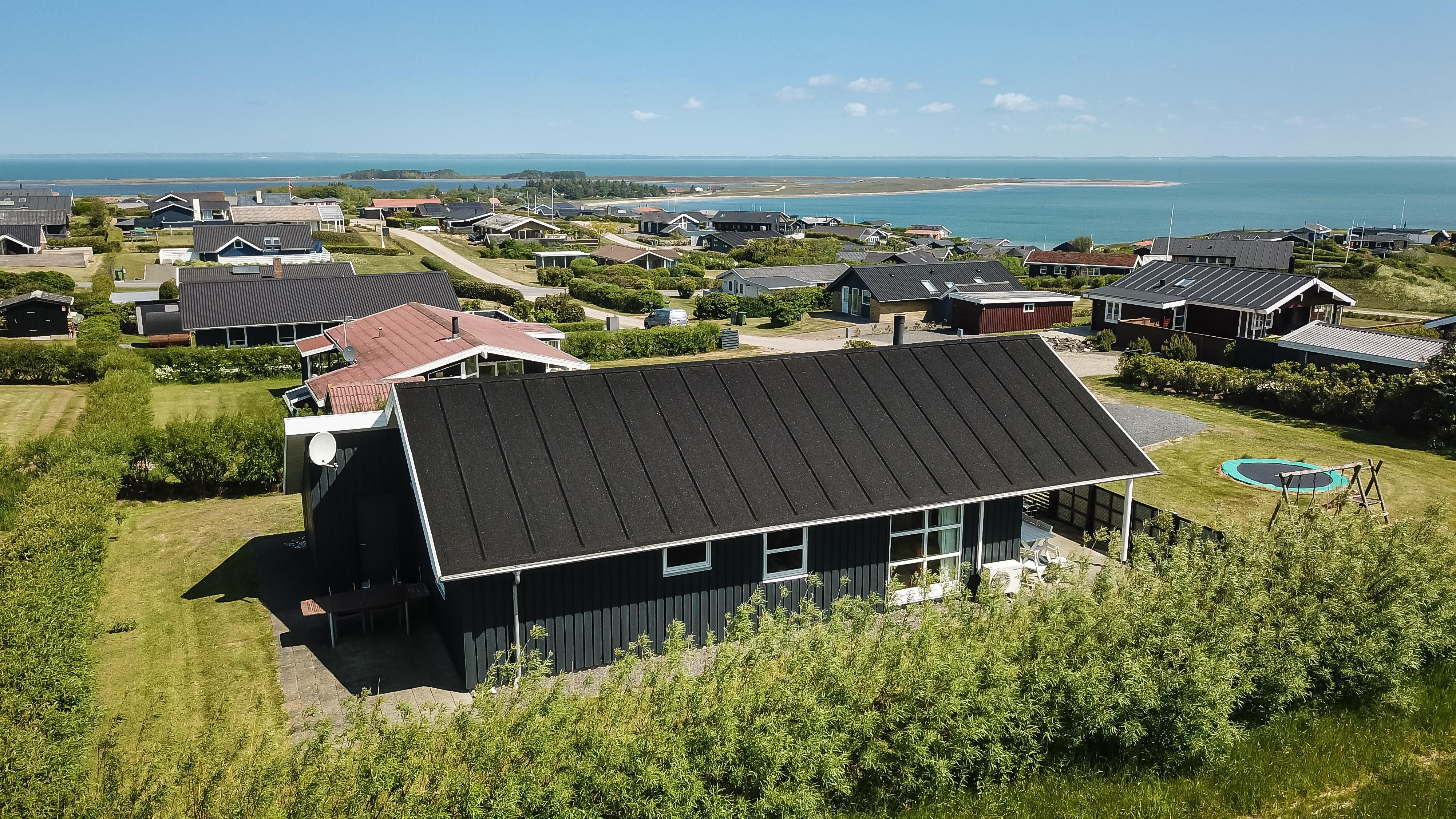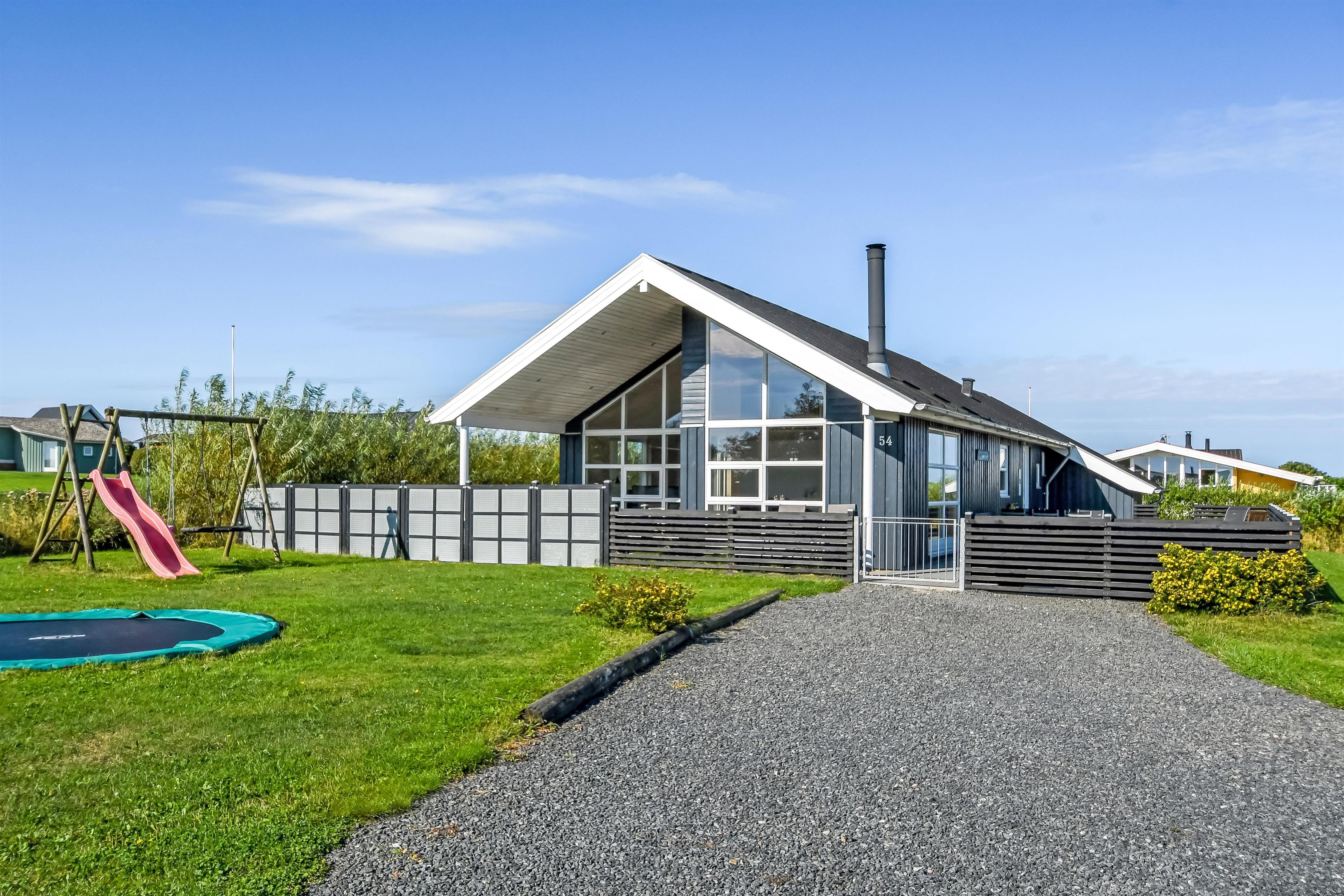 Die Außenbereiche sind ganz besonders. Das Haus liegt auf einem etwa 900 qm großen eingezäunten Grundstück. Großartige, teilweise überdachte und eingezäunte Terrassenanlage mit Gartenmöbeln, Grill und Sonnenliegen. Hier finden Sie immer einen Platz in der Sonne und einen wunderschönen Blick zum Limfjord. Auch auf der hinteren Seite vom Haus gibt es eine schöne Terrasse mit Gartenmöbeln und Blick über die Landschaft. In dem praktischen Schuppen gibt es Auflagen für die Terrassenmöbel, Gas- und Kugelgrill. Hohe, ungestörte Lage an einem ruhigen Weg. Gepflegtes Grundstück mit Trampolin, Schaukel und nur 300 m bis zum Strand. Vom Haus aus gibt es ein Wegesystem, das Sie in wenigen Minuten direkt zum Fjord, Badestrand und Badesteig führen. In der Nähe vom Haus liegt ein schöner Naturspielplatz, der aus Naturmaterialien gemacht ist und mit einer Rutsche, Schaukel und vielem anderen ausgestattet ist. Hier gibt es auch einen Eis-Kiosk und ein Restaurant, die aber nur in der Saison geöffnet haben. Außerdem liegt der Ort Lemvig bloß 4 km vom Haus entfernt, wo Sie viele Geschäfte, Fischrestaurant, Kino, Skaterbahn u.a. finden können.