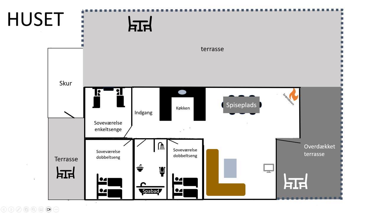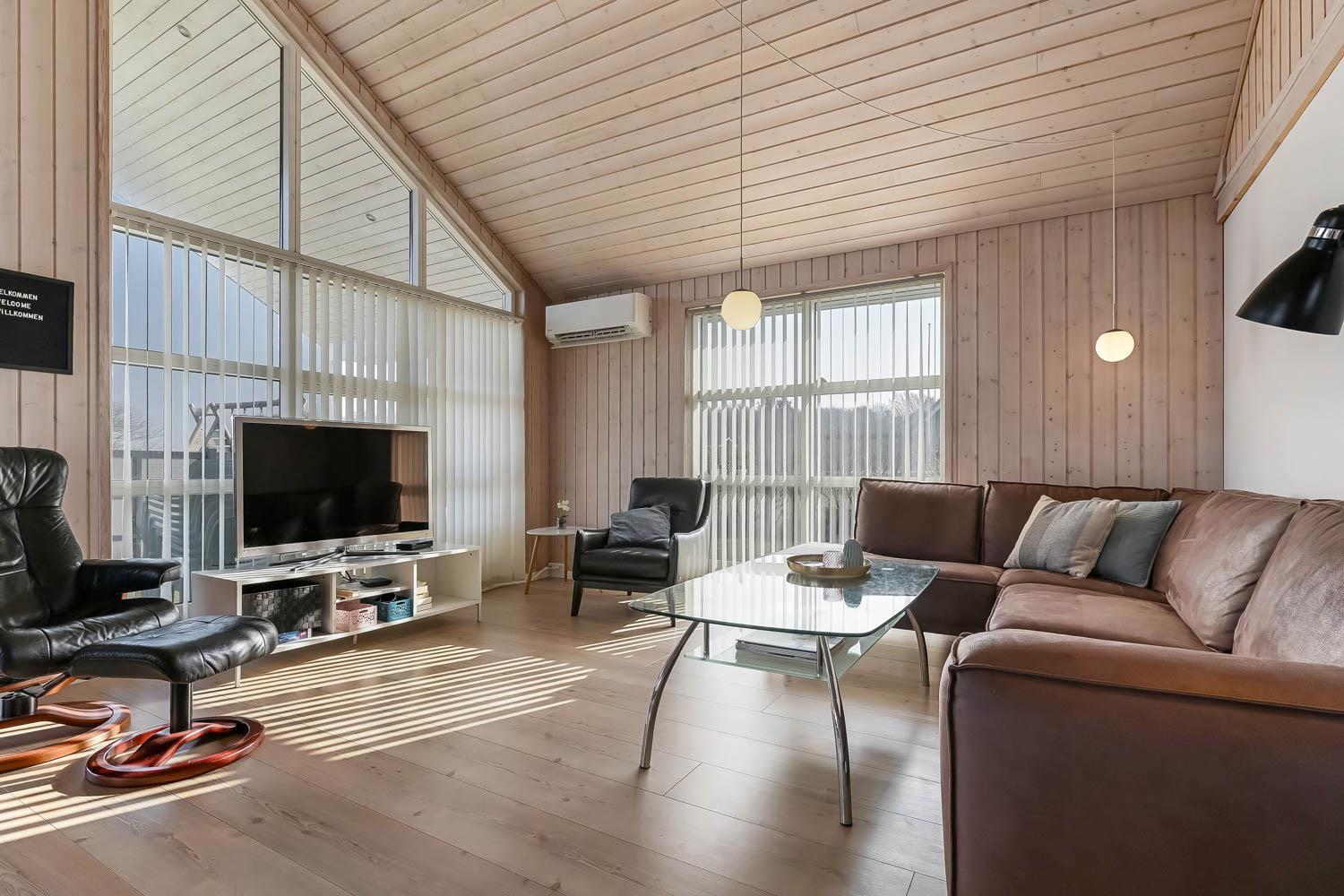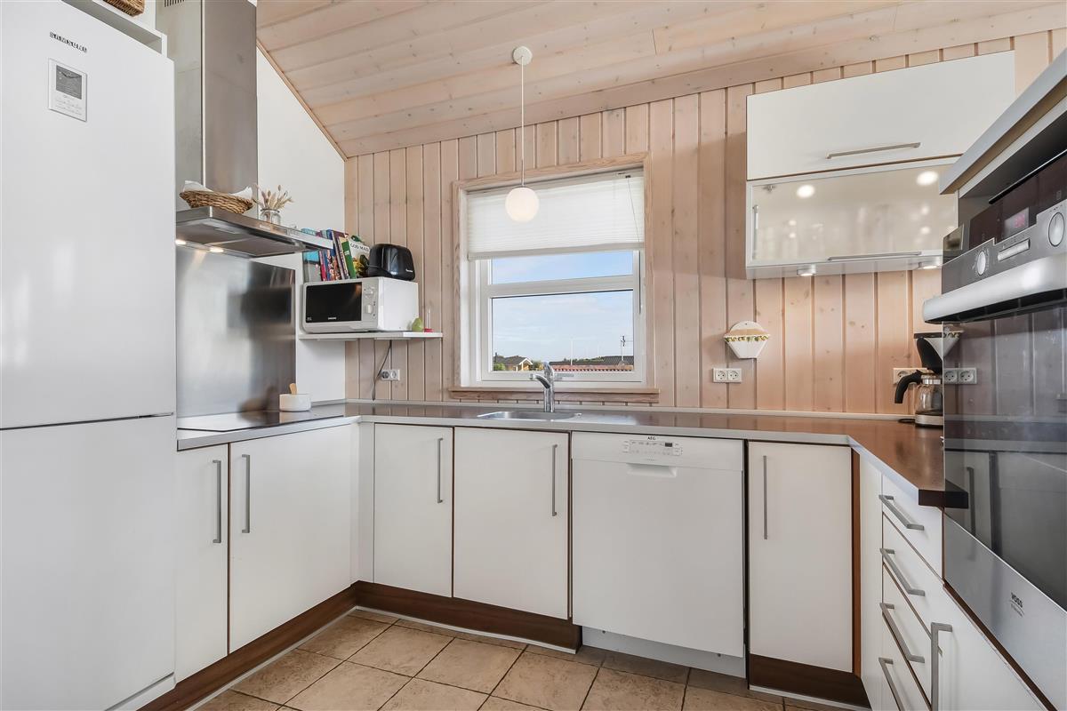 Dieses Qualitätshaus mit etwa 98 qm ist im Jahr 2009 erbaut und danach laufend renoviert worden. Ein geräumiger Flur mit Waschmaschine und Trockner heißt Sie willkommen. Ein schöner kombinierter Wohnraum/Küche mit offener Decke ist schön möbliert mit einer Eckcouch, TV mit Parabolantenne, damit Sie dänische und deutsche Programme sehen können. Chromecast für Streaming soweit Sie selber über ein Abonnement verfügen. Entspannen Sie sich vor dem Kaminofen, der zusammen mit der Wärmepumpe für eine schöne Wärme sorgt und gleichzeitig hilft, die Nebenkosten zu reduzieren . Küche mit Ceranfeld-Kochplatten, Abzugshaube, eingebautem Ofen, Geschirrspüler, Mikrowelle und Kühlschrank mit Gefrierfach. Schönes Badezimmer mit Dusche, Toilette, Waschbecken, Whirlpool und Fliesenboden mit Fussbodenheizung. Es gibt 3 Schlafräume im Haus: 1DB + 1DB + 2B. Von der Küche gibt es Zugang über eine Treppe zum offenen Schlafboden mit 2 extra Schlafplätzen (1DB). Der Schlafboden ist so hoch, daß Sie stehen können; hier gibt es auch eine Couch mit Tisch, ganz einmalig gemacht. Es gibt Fliesenboden mit Fußbodenheizung in Küche, Flur und Badezimmer und praktische Holzböden im Rest des Hauses. Haben Sie ein Elektro-Auto oder einen Plug-in Hybrid, gibt es eine Ladebox (Type 2) zum Laden. Rauchen ist nicht erlaubt. Max. 3 Haustiere sind erlaubt.
