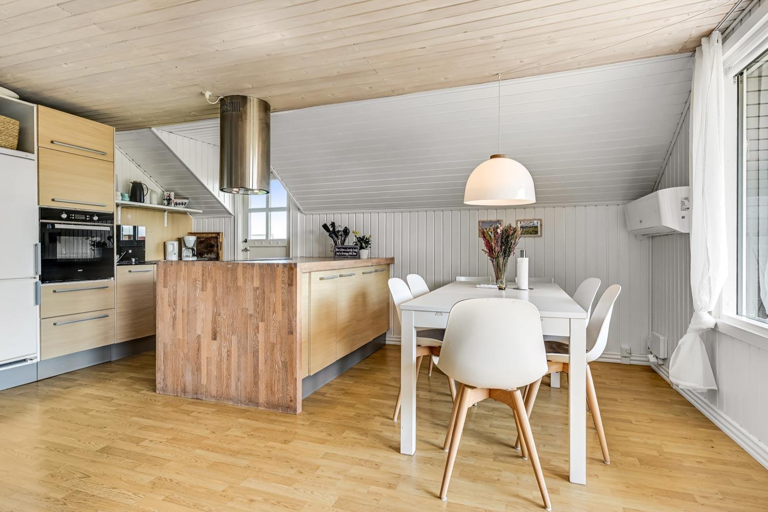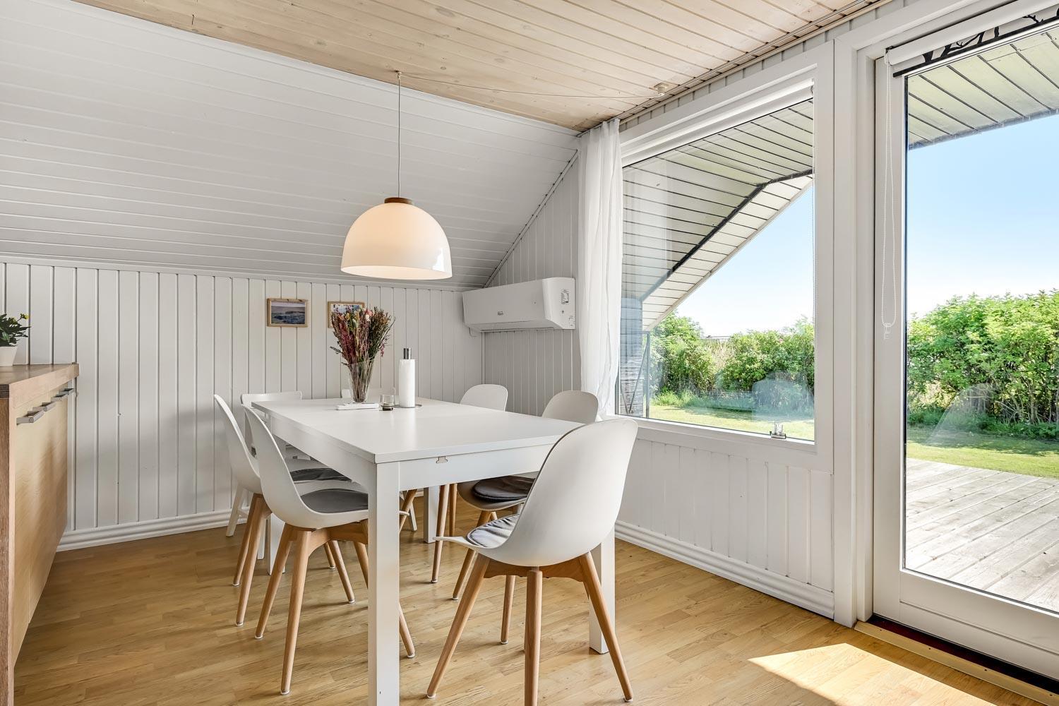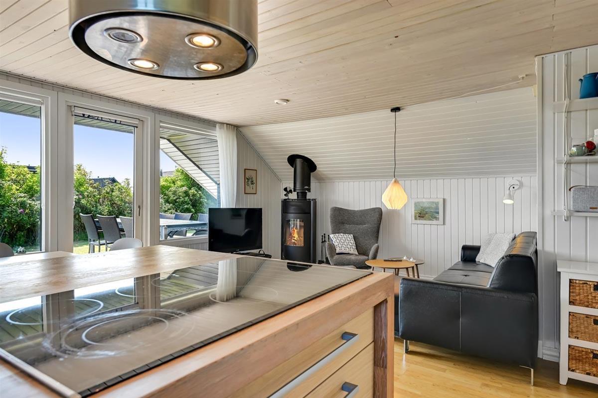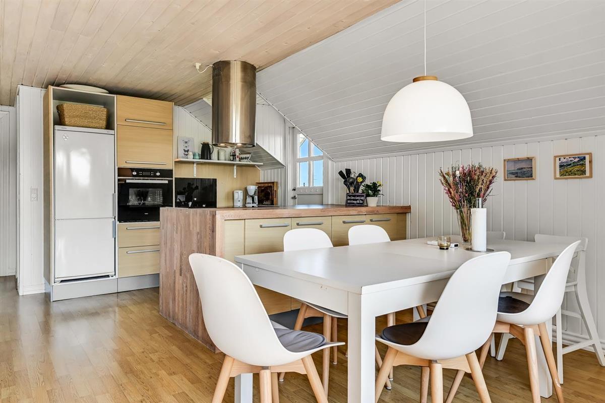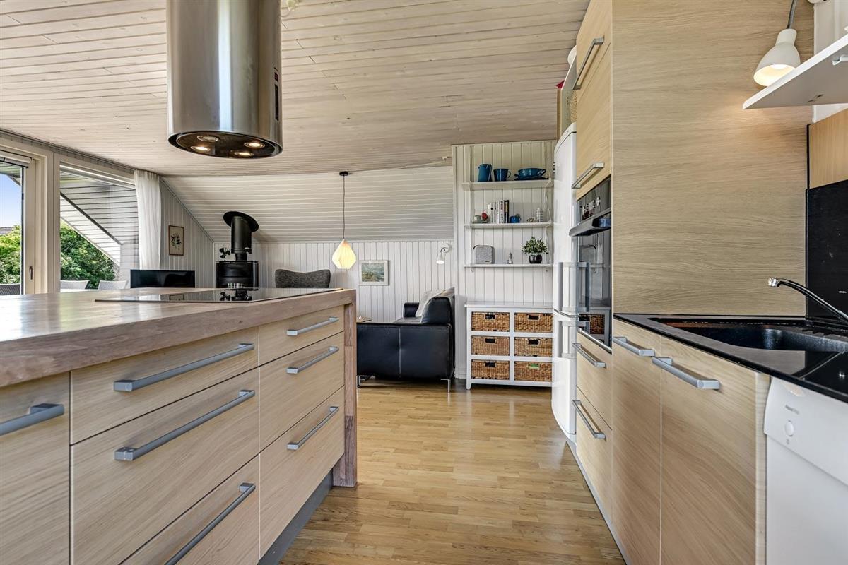 Ferienhaus mit ca. 72 m² Wohnfläche, Baujahr 1979 und renoviert im Jahr 2018. Der Eingangsbereich heißt Sie willkommen und führt weiter in ein gemütlich eingerichtetes Wohnzimmer mit Kaminofen, Esstisch sowie TV mit dänischen, deutschen, norwegischen und schwedischen Programmen. Darüber hinaus besteht die Möglichkeit, eigene Streamingdienste zu streamen. Vom Esstisch aus hat man einen schönen Blick auf den Limfjord. Offene Küche mit Glaskeramikkochfeld, Einbaubackofen, Dunstabzugshaube, Geschirrspüler, Mikrowelle und Kühlschrank mit Gefrierfach – alles auf praktischen Holzböden. Zudem gibt es drei kleinere Schlafzimmer mit Teppichböden (1 Doppelbett, 1 Doppelbett, 1 Etagenbett). Badezimmer mit Toilette, Waschbecken, Dusche und Linoleumboden. Waschmaschine ist im Schuppen. Eine Wärmepumpe sorgt für eine günstigere elektrische Heizung.