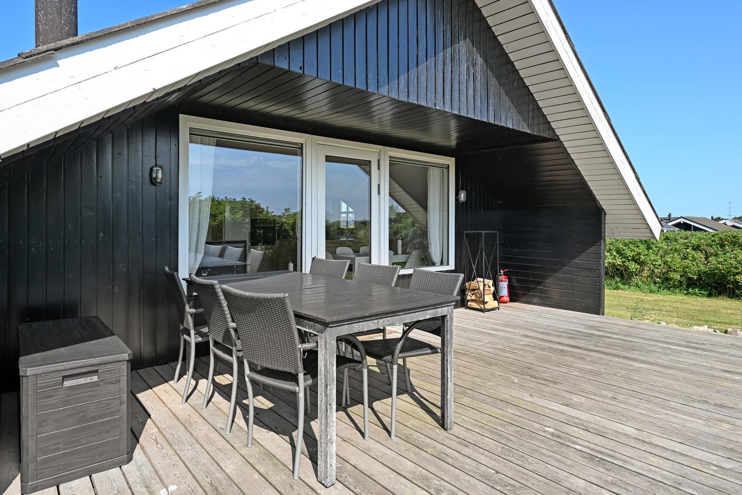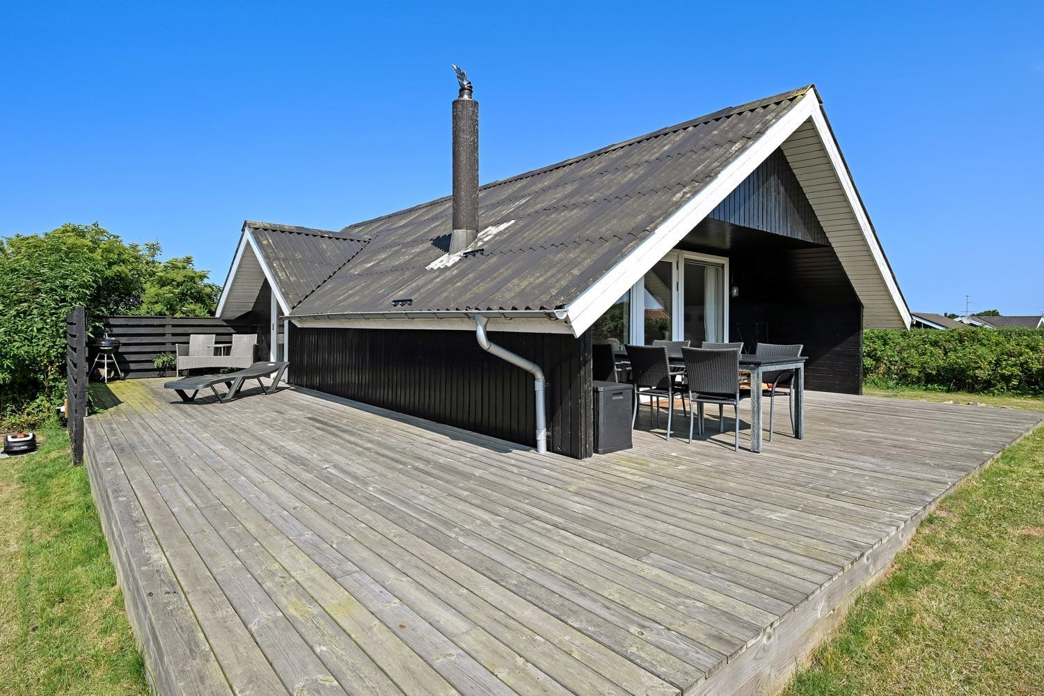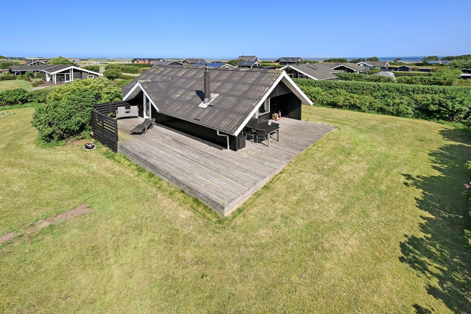 Das Haus hat eine ganz neue kleine Holzterrasse vor dem Eingang und eine große sowie teilweise überdachte Holzterrasse hinter dem Haus. Es ist etwas ganz Besonderes, und es gibt immer einen Platz in der Sonne, sowohl nachmittags- als auch Abends, und nicht zuletzt kann man einen sehr schönen Sonnenuntergang genießen. Gartenmöbel, Sonneliege und Grill können Sie nach Bedarf auf den Terrassen umstellen. Hohe, ungestörte Lage auf einem kleinen Seitenweg auf einem gepflegten Grundstück etwa 843 m2 groß mit Spielhaus und bloss 500 m vom Limfjord entfernt. Vom Haus aus gibt es einen Wegesystem , das Sie in wenigen Minuten zu Fuss direkt zum Fjord, Badestrand und Badesteig führt. In der Nähe des Hauses liegt auch der neue schöne Naturspielplatz aus Holz mit Rutsche, Schaukel und vielem Anderen. Es gibt hier auch in der Saison einen kleinen Kiosk und ein Restaurant. Ausserdem liegt Lemvig Ort bloss 4 km vom Haus entfernt. Hier finden Sie viele Geschäfte, Fischrestaurant, Kino, Skaterbahn, Museum u.a.
