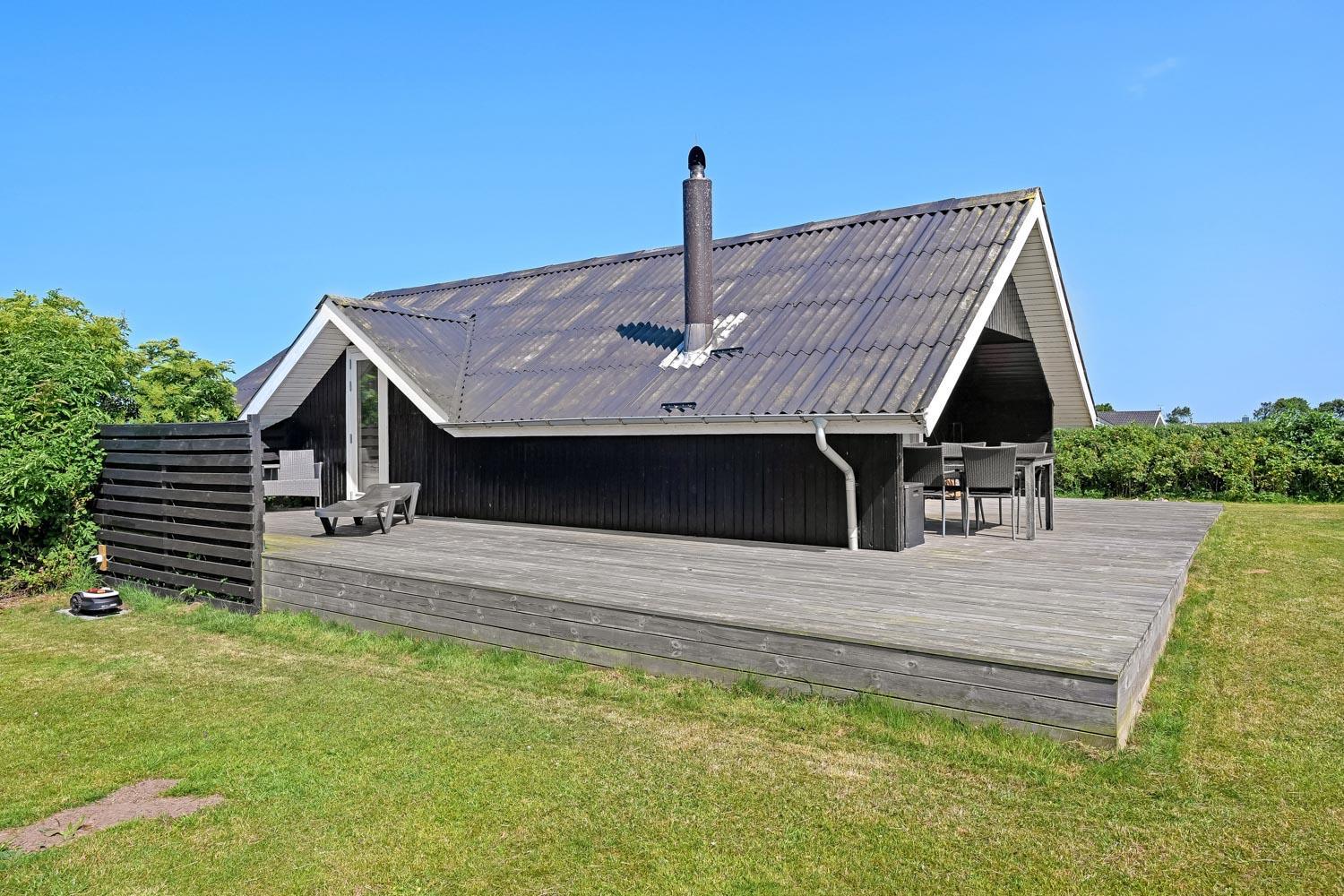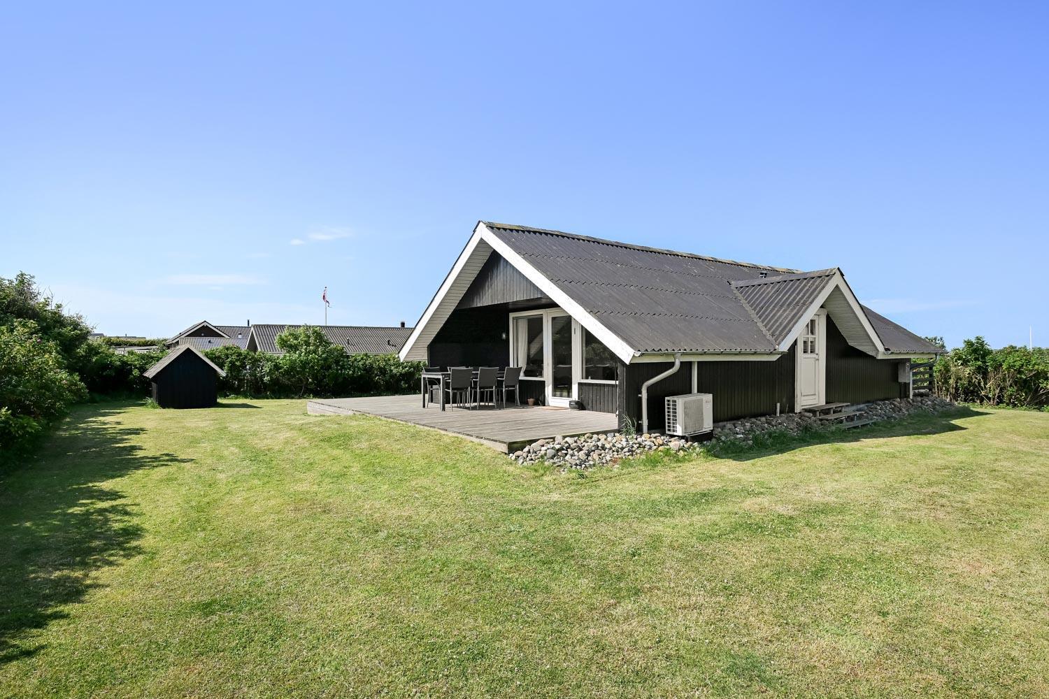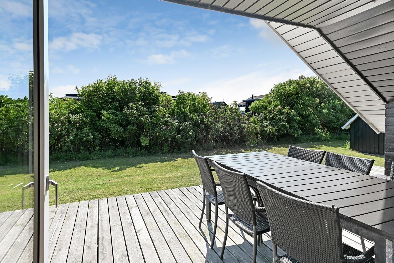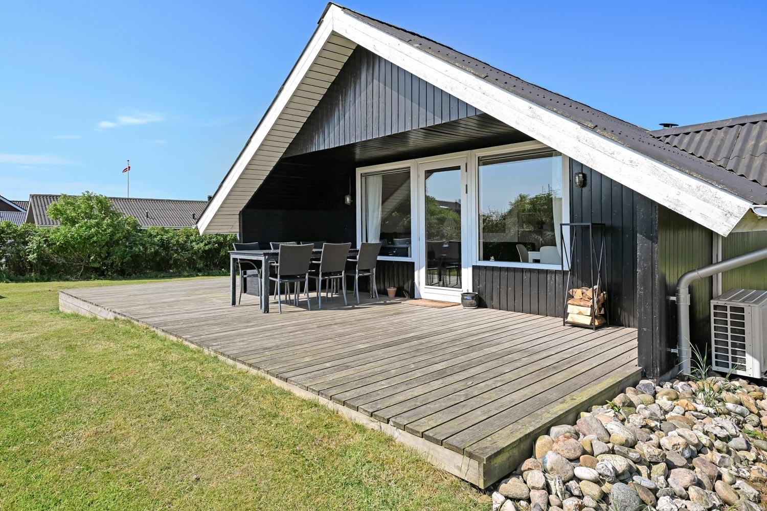 Das Haus hat eine ganz neue kleine Holzterrasse vor dem Eingang und eine große sowie teilweise überdachte Holzterrasse hinter dem Haus. Es ist etwas ganz Besonderes, und es gibt immer einen Platz in der Sonne, sowohl nachmittags- als auch Abends, und nicht zuletzt kann man einen sehr schönen Sonnenuntergang genießen. Gartenmöbel, Sonneliege und Grill können Sie nach Bedarf auf den Terrassen umstellen. Hohe, ungestörte Lage auf einem kleinen Seitenweg auf einem gepflegten Grundstück etwa 843 m2 groß mit Spielhaus und bloss 500 m vom Limfjord entfernt. Vom Haus aus gibt es einen Wegesystem , das Sie in wenigen Minuten zu Fuss direkt zum Fjord, Badestrand und Badesteig führt. In der Nähe des Hauses liegt auch der neue schöne Naturspielplatz aus Holz mit Rutsche, Schaukel und vielem Anderen. Es gibt hier auch in der Saison einen kleinen Kiosk und ein Restaurant. Ausserdem liegt Lemvig Ort bloss 4 km vom Haus entfernt. Hier finden Sie viele Geschäfte, Fischrestaurant, Kino, Skaterbahn, Museum u.a.
