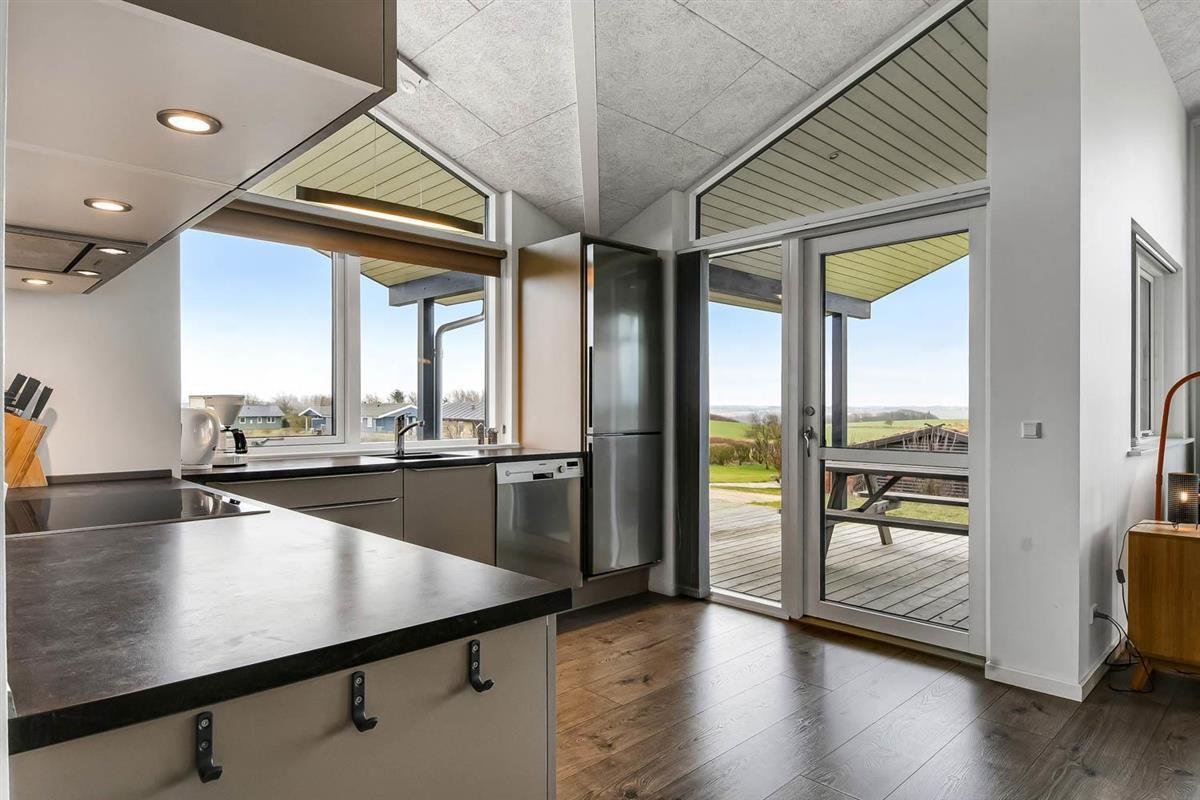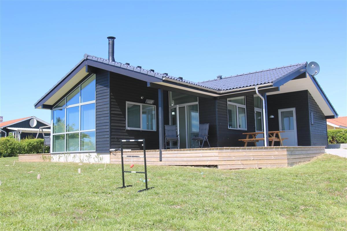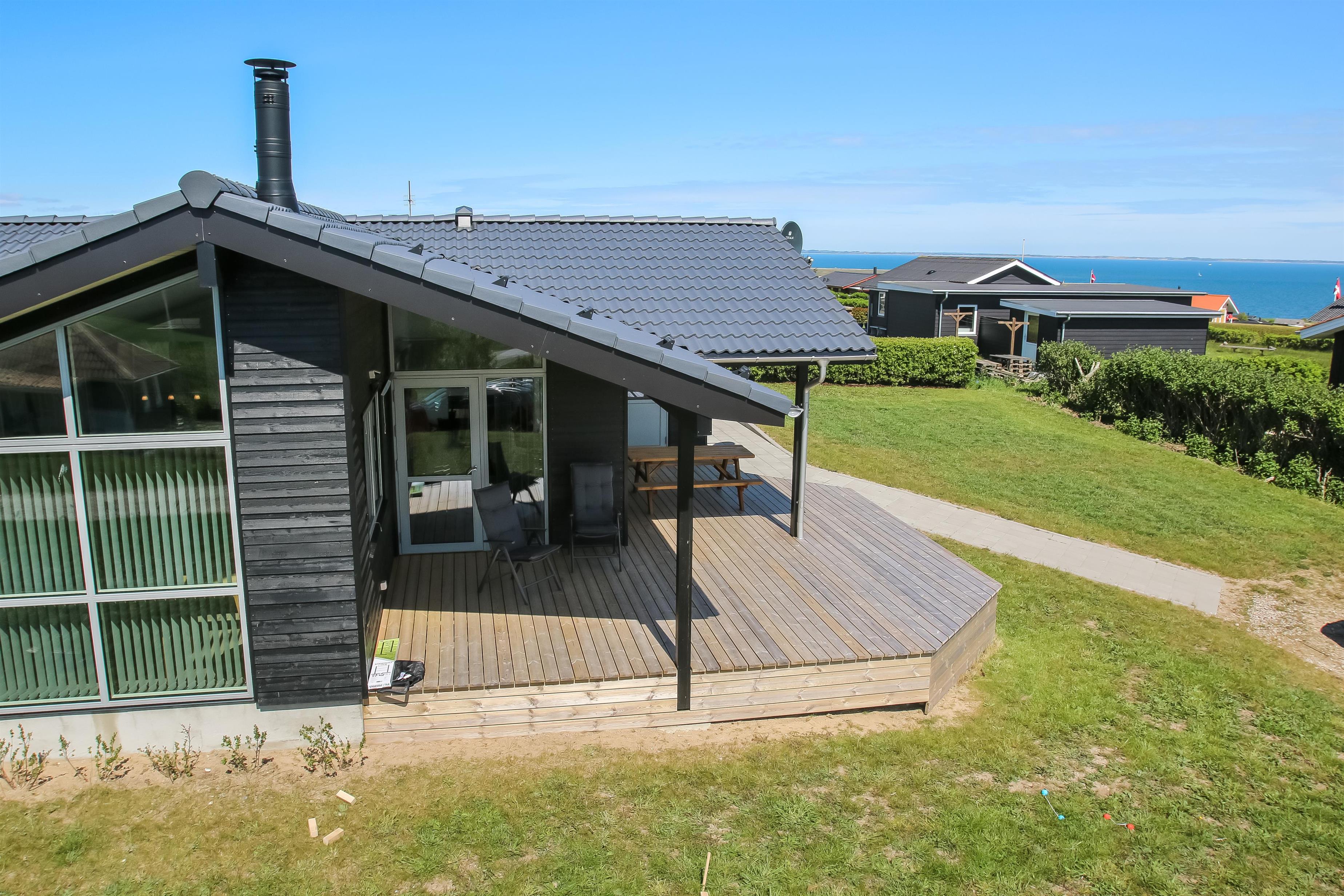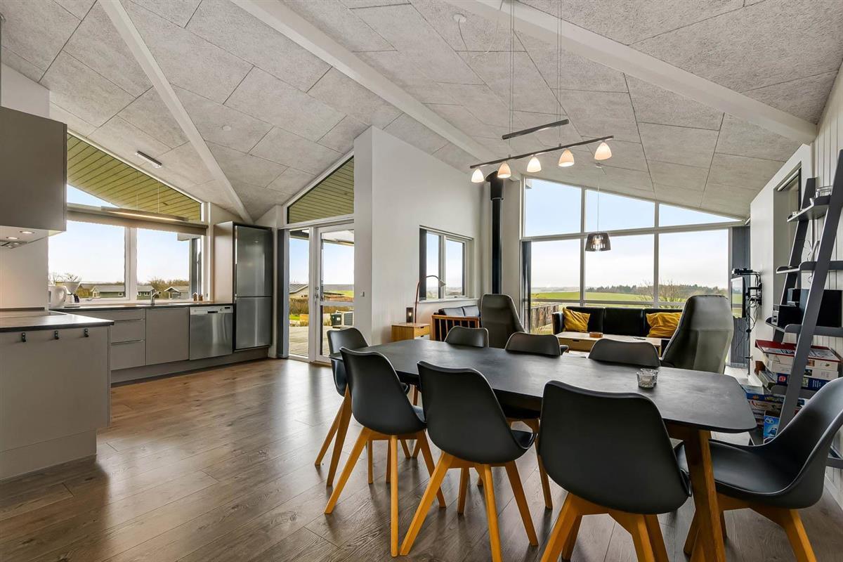 Hoch gelegenes Holzferienhaus auf einem 915m² grossen Grundstück mit schönem Blick über die Landschaft und den Limfjord. Grosse und schöne, teilweise überdachte Holzterrasse mit Gartenmöbeln, Grill und Sonnenliegen. Es ist an alles gedacht und es ist ein sehr schönes und modernes Ferienhaus. Vom Haus aus gibt es ein Wegesystem, das in wenigen Minuten direkt zum Wasser führt. Ca. 500 m vom Haus entfernt liegt der neue schöne Naturspielplatz aus Holz und mit Fussballplatz und Rutsche und es ist auch nicht weit zum Einkaufen oder zum Strand von Gjellerodde. Die Stadt Lemvig, eine lebhafte Handelsstadt mit vielen besonderen Geschäften, einem Fischrestaurant, einem Museum usw. ist nur 4 km entfernt