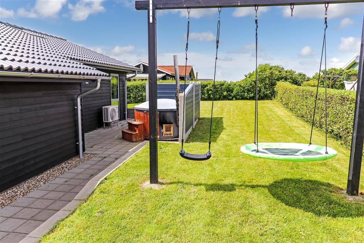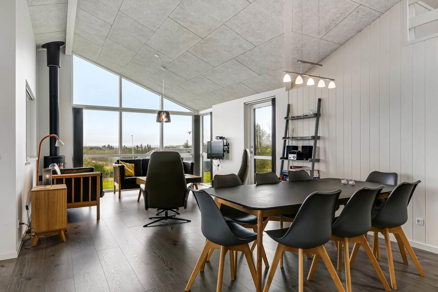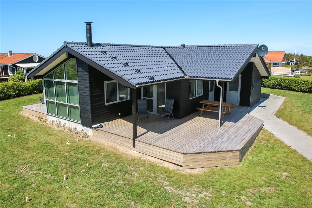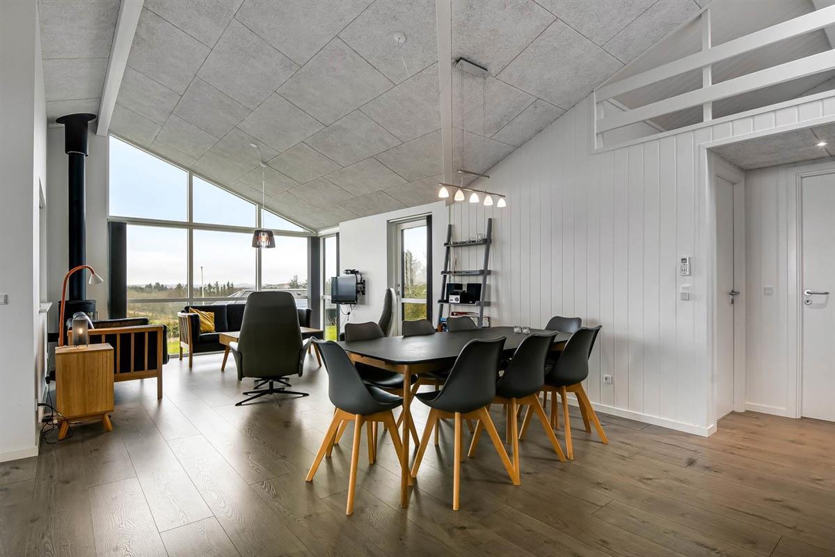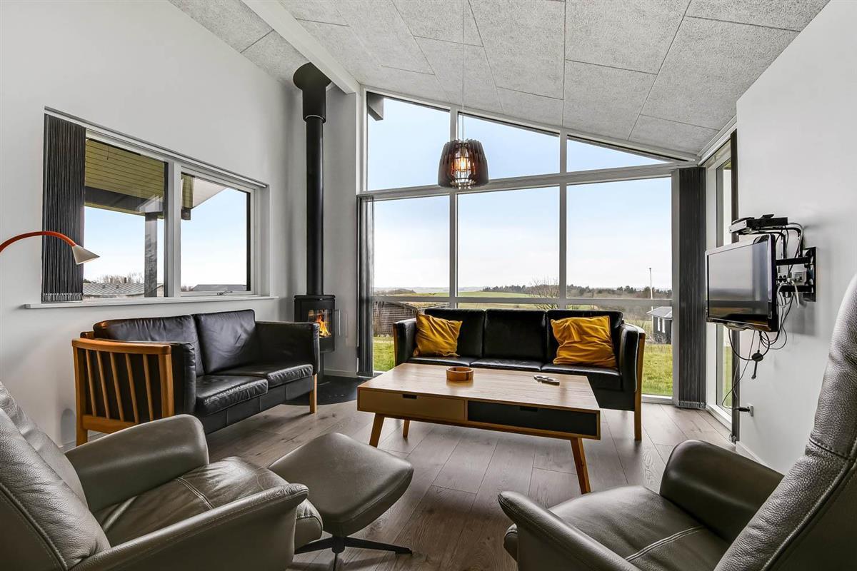 Hoch gelegenes Holzferienhaus auf einem 915m² grossen Grundstück mit schönem Blick über die Landschaft und den Limfjord. Grosse und schöne, teilweise überdachte Holzterrasse mit Gartenmöbeln, Grill und Sonnenliegen. Es ist an alles gedacht und es ist ein sehr schönes und modernes Ferienhaus. Vom Haus aus gibt es ein Wegesystem, das in wenigen Minuten direkt zum Wasser führt. Ca. 500 m vom Haus entfernt liegt der neue schöne Naturspielplatz aus Holz und mit Fussballplatz und Rutsche und es ist auch nicht weit zum Einkaufen oder zum Strand von Gjellerodde. Die Stadt Lemvig, eine lebhafte Handelsstadt mit vielen besonderen Geschäften, einem Fischrestaurant, einem Museum usw. ist nur 4 km entfernt