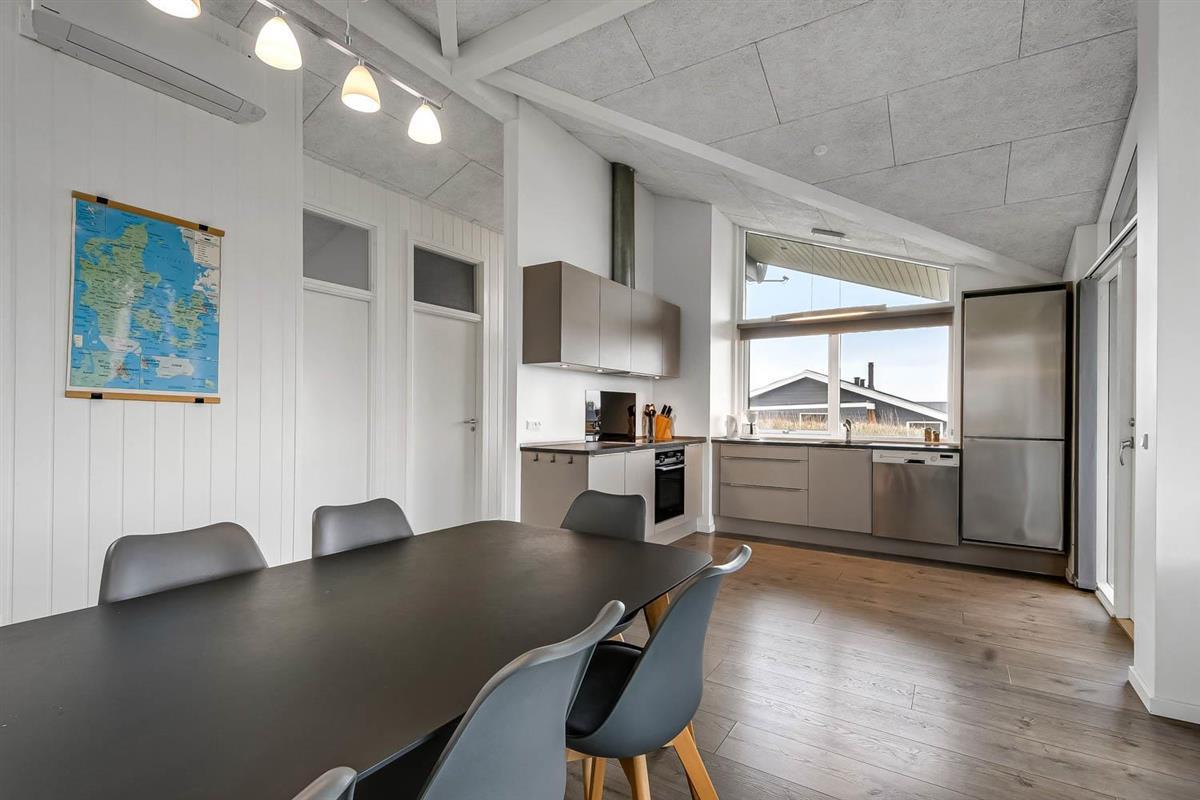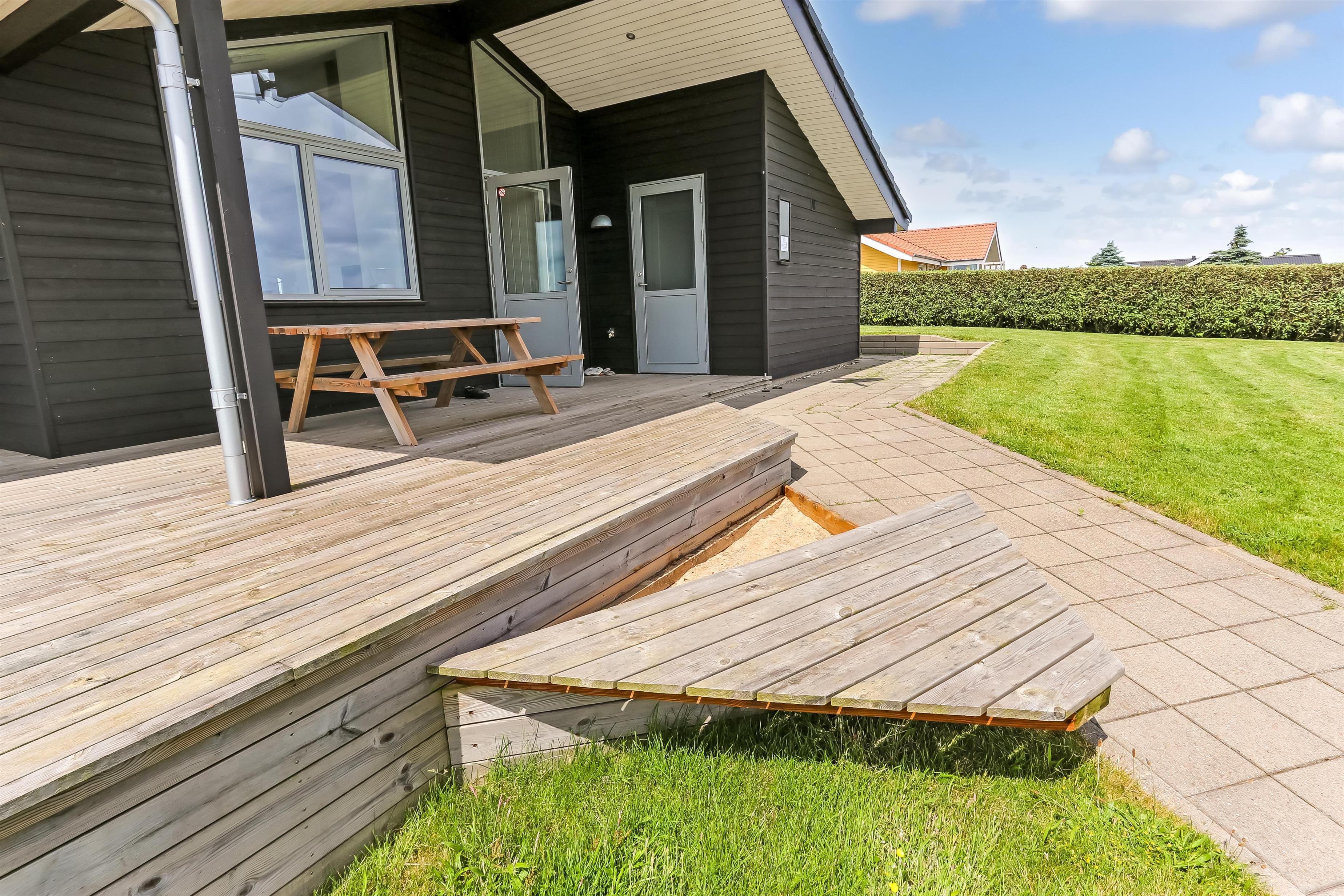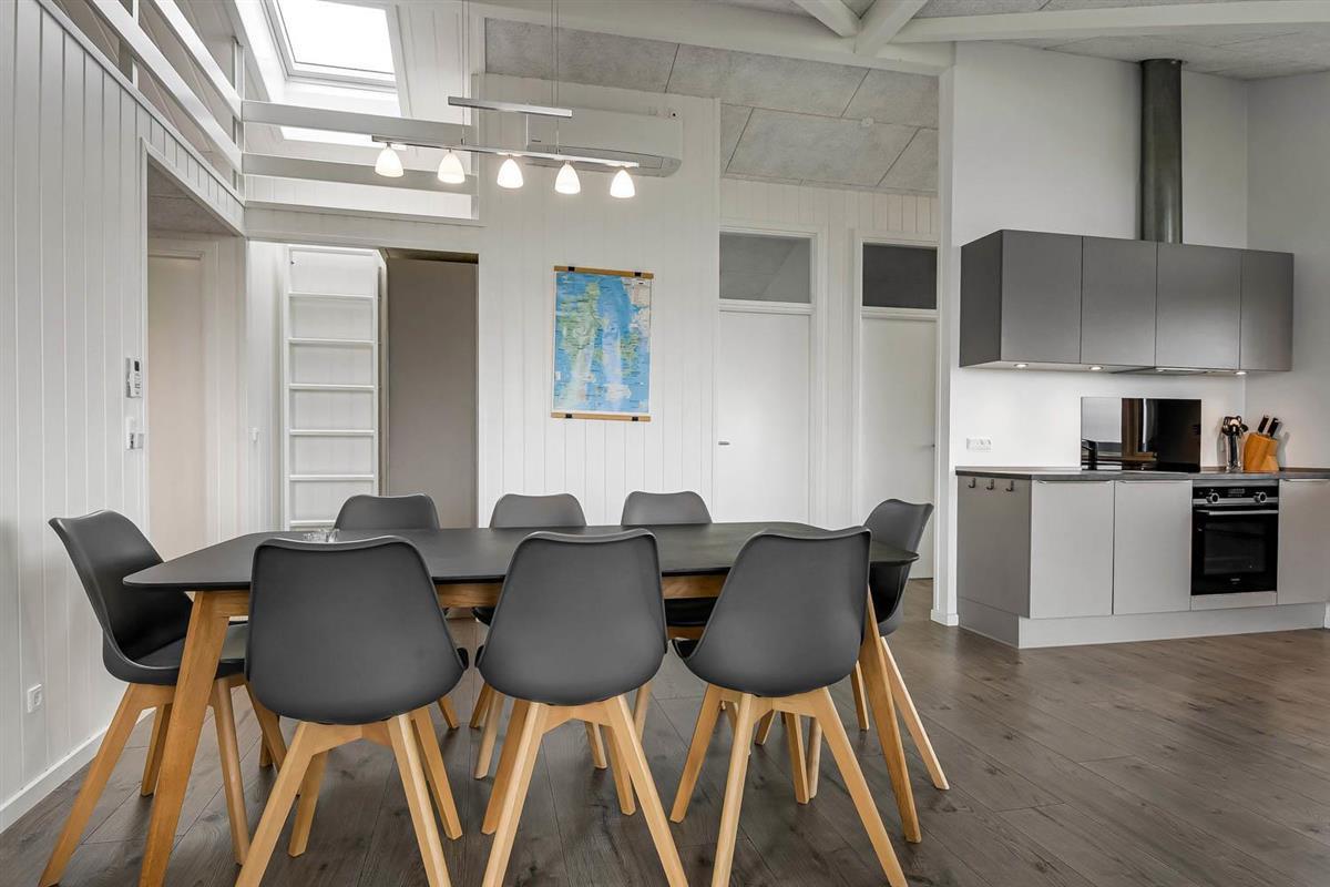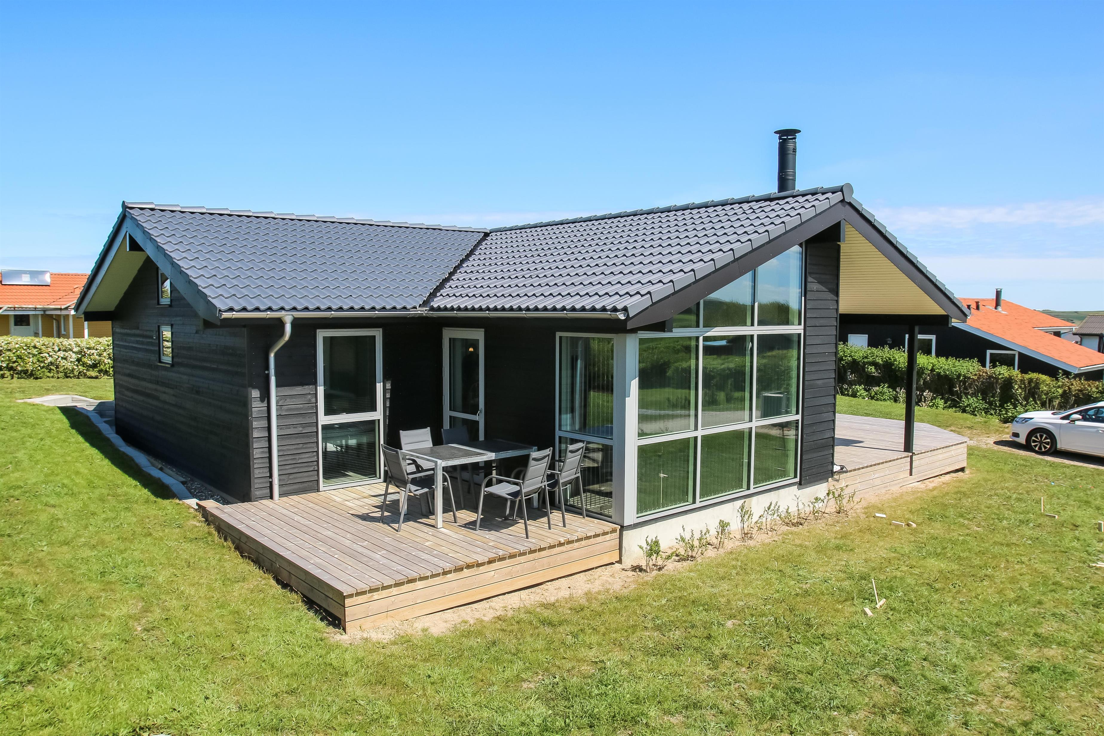Hoch gelegenes Holzferienhaus auf einem 915m² grossen Grundstück mit schönem Blick über die Landschaft und den Limfjord. Grosse und schöne, teilweise überdachte Holzterrasse mit Gartenmöbeln, Grill und Sonnenliegen. Es ist an alles gedacht und es ist ein sehr schönes und modernes Ferienhaus. Vom Haus aus gibt es ein Wegesystem, das in wenigen Minuten direkt zum Wasser führt. Ca. 500 m vom Haus entfernt liegt der neue schöne Naturspielplatz aus Holz und mit Fussballplatz und Rutsche und es ist auch nicht weit zum Einkaufen oder zum Strand von Gjellerodde. Die Stadt Lemvig, eine lebhafte Handelsstadt mit vielen besonderen Geschäften, einem Fischrestaurant, einem Museum usw. ist nur 4 km entfernt