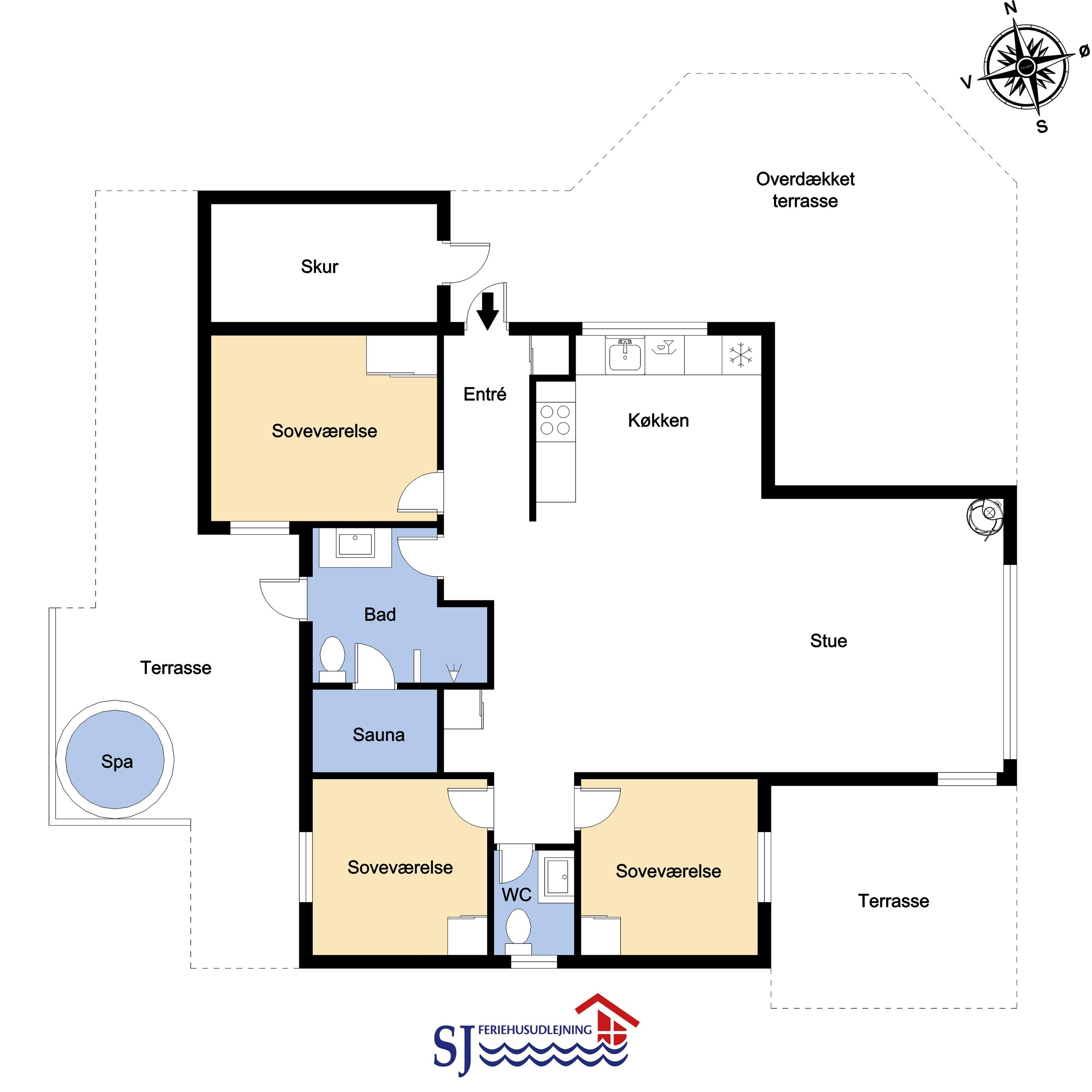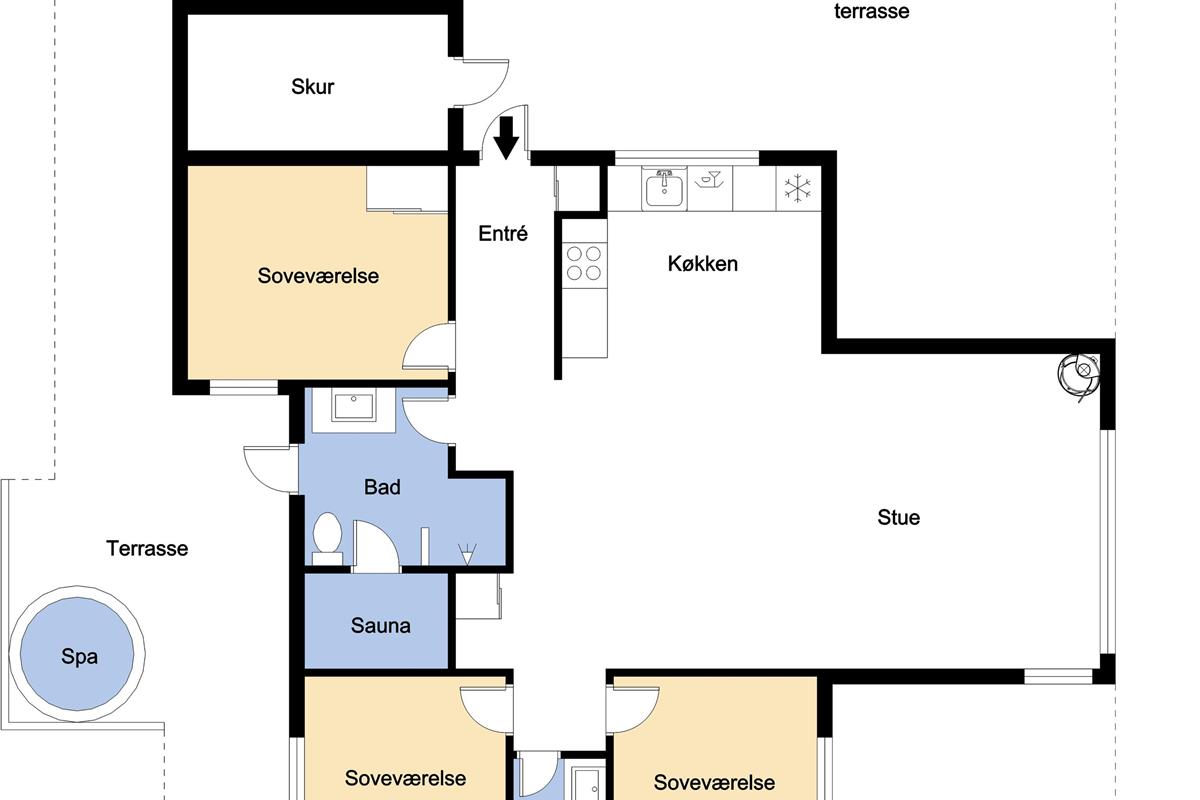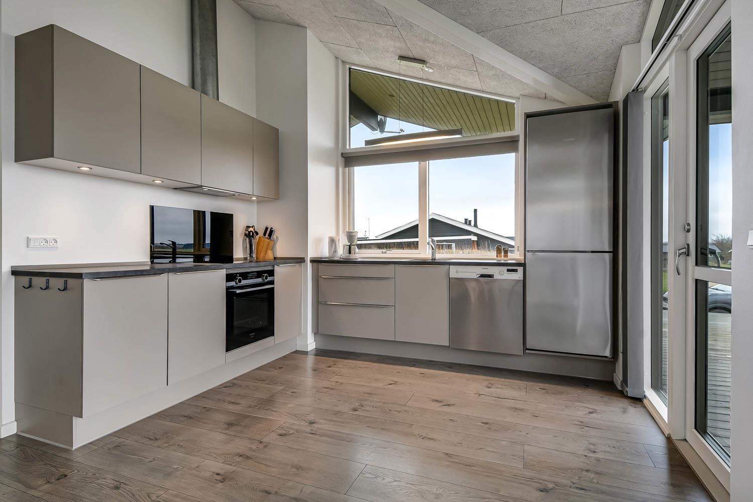 Schönes, modernes Ferienhaus auf 91 m². 3 gute Schlafräume: 1DB + 1DB + 2B. Kombinierte Küche-/Wohnraum. Sehr gut ausgestattete Küchenecke mit schönen, modernen Kontrastfarben und mit allem an Geschirr und Kochgeschirr, Herd mit Cerankochfeld, Abzugshaube, Mikrowelle, eingebautem Ofen, Geschirrspüler und Kühlschrank mit Gefrierfach. Schöner Wohnraum mit guten Möbeln, Esstisch, Fernseher mit Chromecast mit möglichkeit für Streaming wenn Sie eigener Abonnement haben und Radio/CD/DVD. Ein gemütlicher Kaminofen und eine Wärmepumpe sorgen dafür, daß die Nebenkosten zu jeder Jahreszeit günstig bleiben. Grosses und schönes Badezimmer mit Dusche, Toilette, Waschbecken, Sauna und Fliesenboden mit Fussbodenheizung. Vom Badezimmer gibt es einen Ausgang zur eingezäunten Terrasse mit einem Aussen- Whirlpool, der mit Holz aufgewärmt wird. Waschmaschine und Trockner. Extra Badezimmer mit Toilette, Waschbecken und Fliesenboden mit Fussbodenheizung. Holzböden in allen Schlafräumen und im Wohnraum. Nichtraucher-Haus. Haustiere nicht erlaubt.