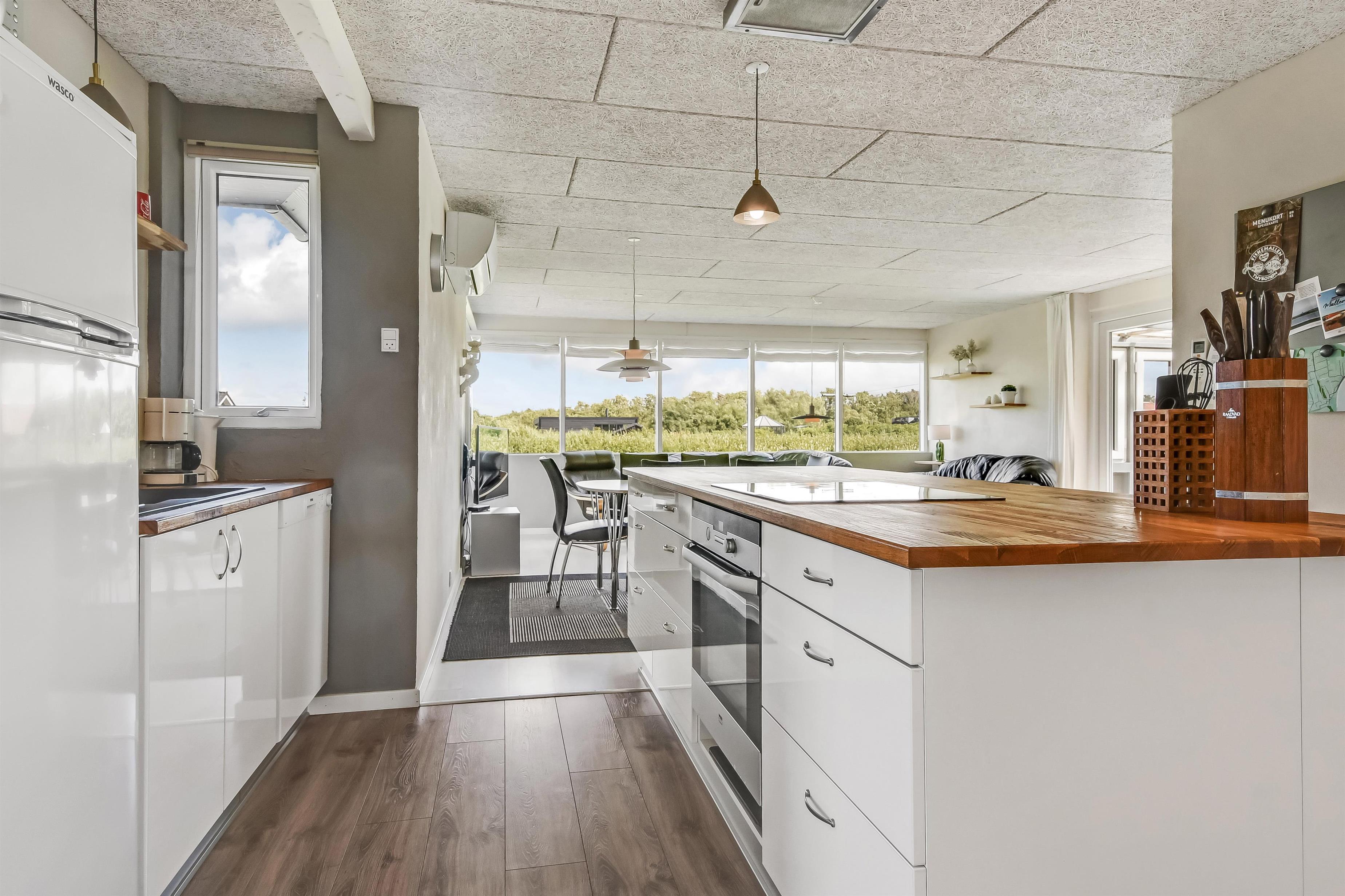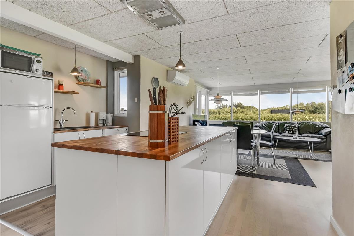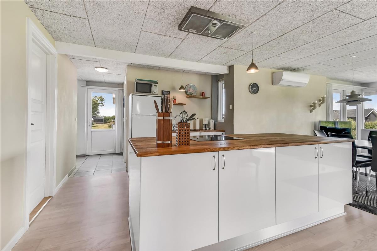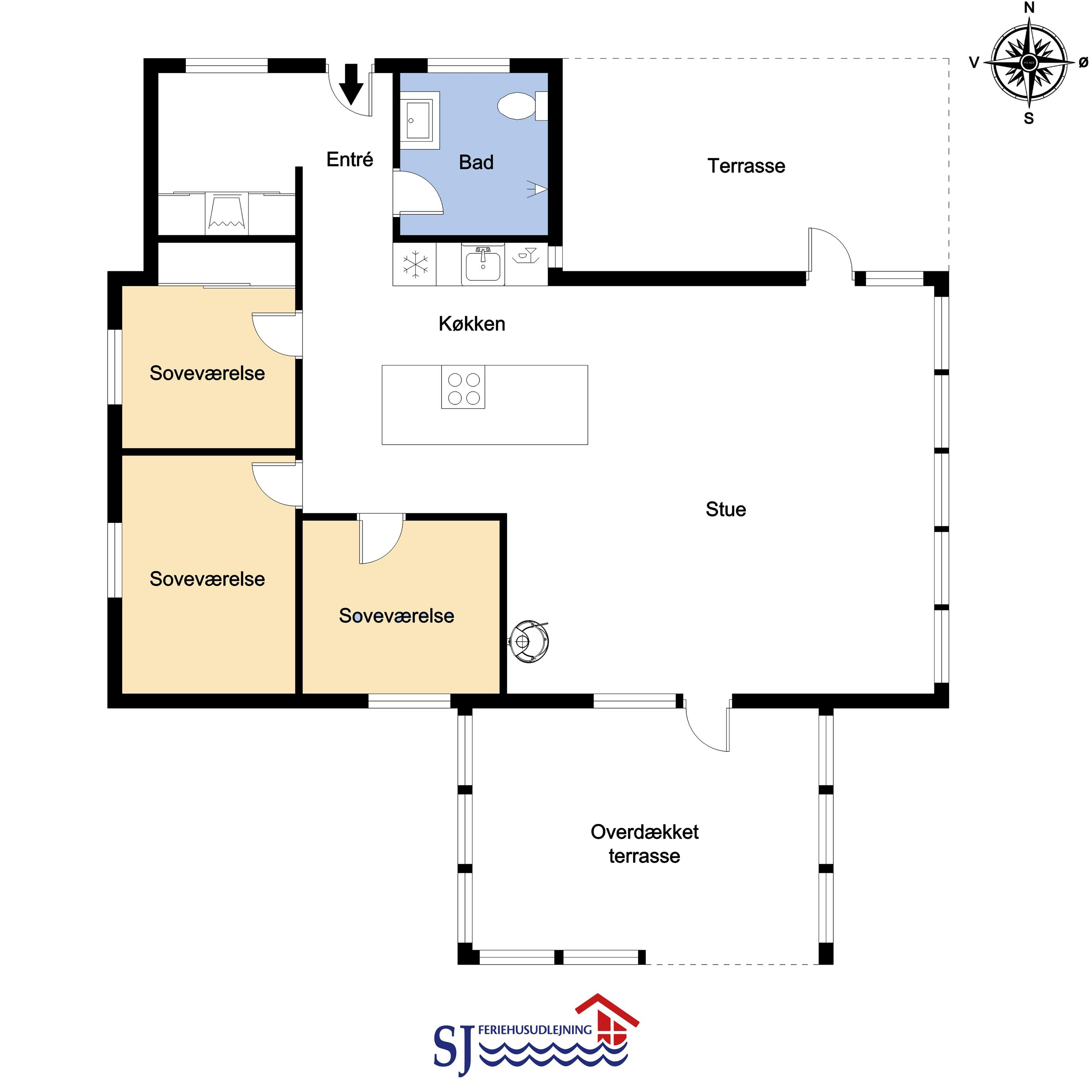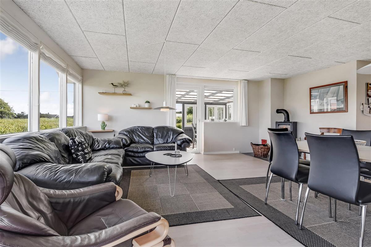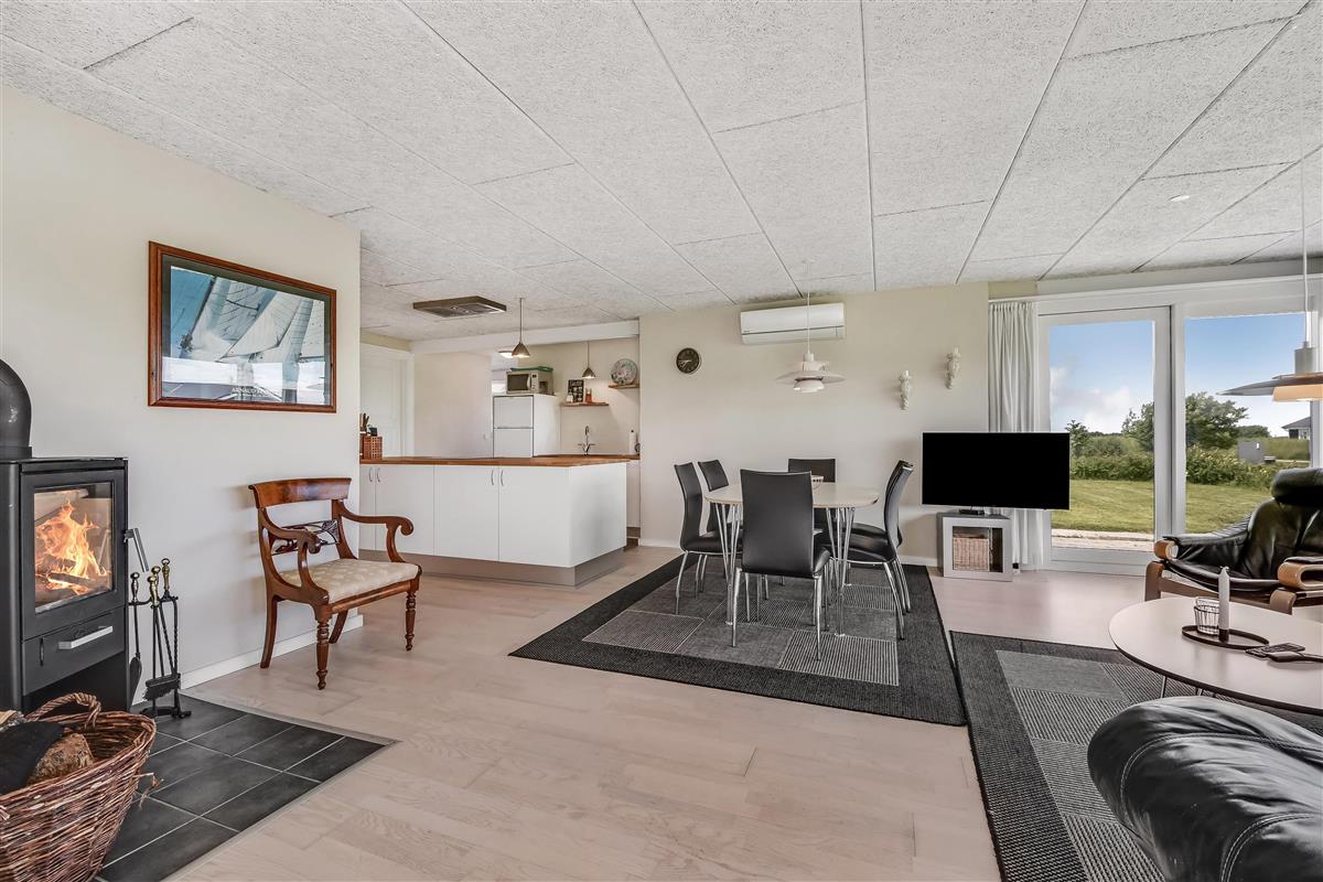 Die 86 qm des Hauses sind sehr gut ausgenutzt. Die Küchenecke und der Wohnraum sind im selben Raum. Der Wohnraum ist mit Ledermöbeln, TV mit dänischen und deutschen Programmen ausgestattet. Das Haus hat auch einen schönen Kaminofen, der zusammen mit der Wärmepumpe für eine schöne Wärme sorgt; beide helfen dabei, die Nebenkosten niedriger zu machen. Vom Wohnraum gibt es einen Ausgang zu einer überdachten und geschlossenen Terrasse/Gartenstube. Die schöne neue Küchenecke bietet alles, was man braucht: Ceranfeld-Kochplatten, Kühl-/Gefrierschrank, eingebaute Küche und Geschirrspüler. 3 Schlafräume: 1DB + 1B + 1E. Schönes Badezimmer mit Toilette, Waschbecken und Dusche. Der Flur ist mit einem großen Schrank und einer Waschmaschine eingerichtet. Es gibt reinigungsfreundliche Böden im ganzen Haus. Nichtraucher-Haus. Max. 2 Haustiere sind erlaubt.