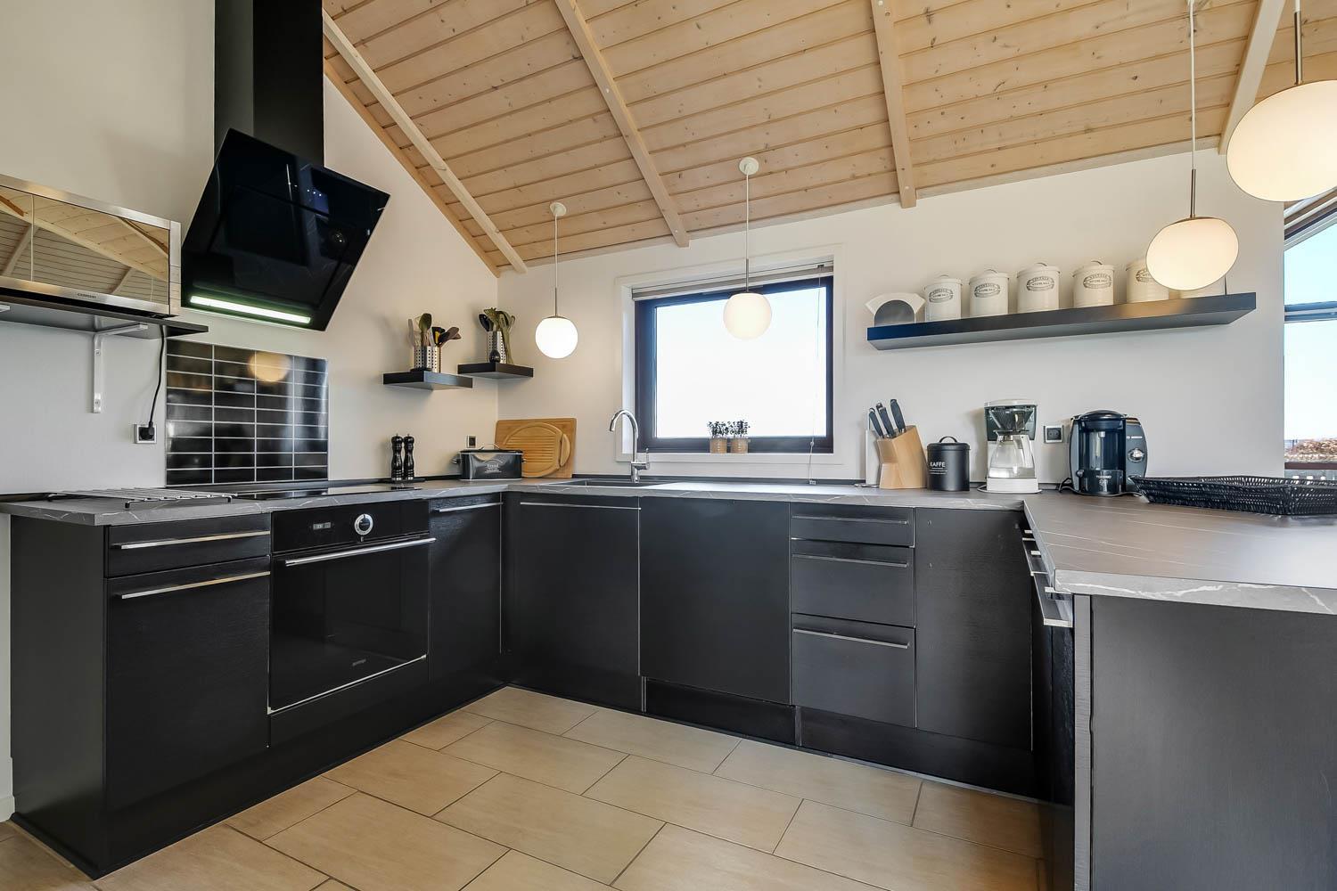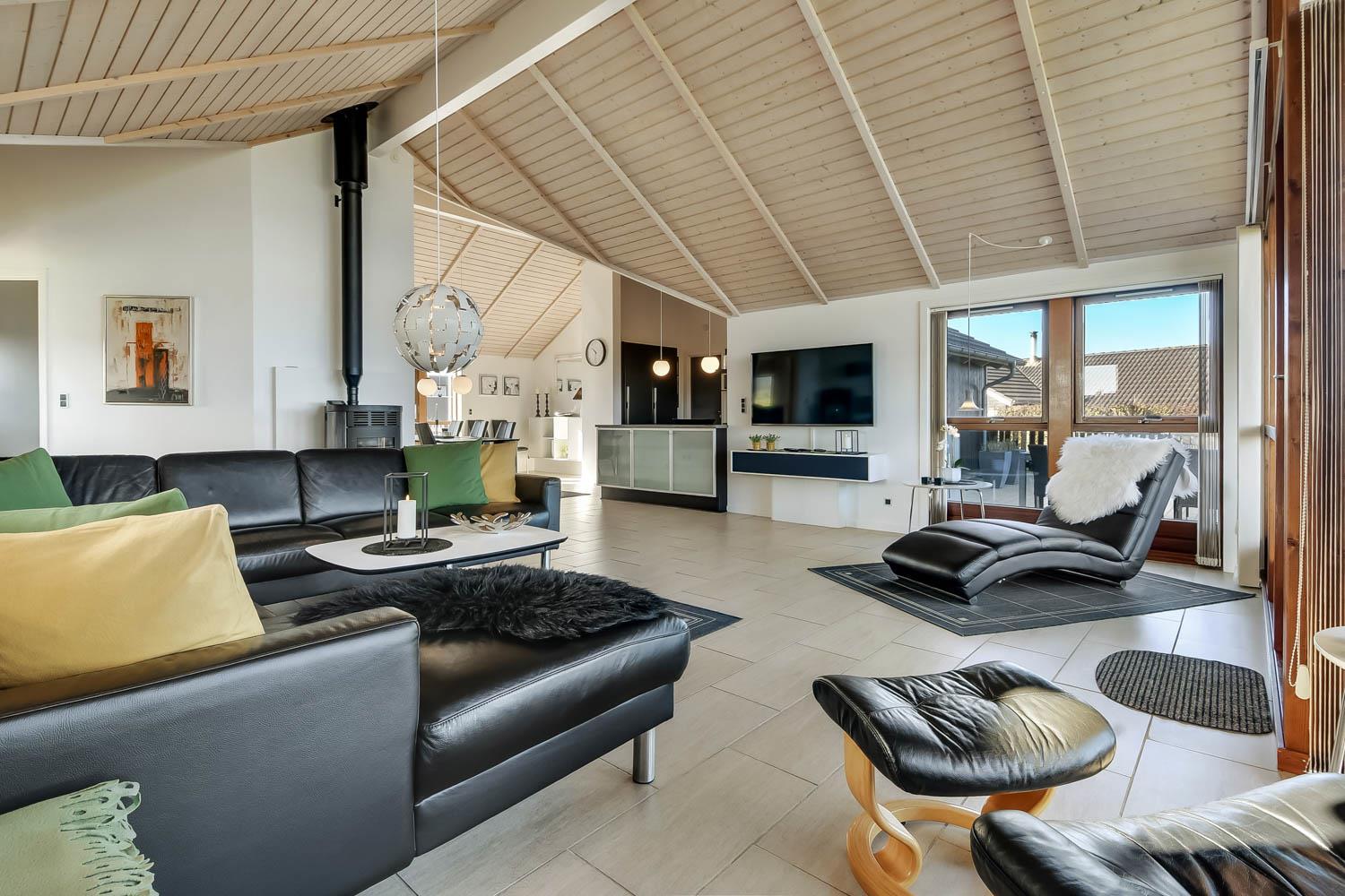 Dieses überaus großzügige und gepflegte Ferienhaus hat 3 Schlafzimmer mit Doppelbetten (DB) und Einzelbetten (EB): 1 DB + 1 DB + 2 EB. Im Wohnzimmer gibt es einen Alkoven (Bettnische) mit 2 weiteren Schlafplätzen. Shuppen mit Gefriertruhe der auch abgesholssen werden kann. Offene Küche mit Wohn- und Essbereich, geschmackvoll eingerichtet mit hochwertigen Möbeln, Holzofen nur für Holzpellets es gibt immer Holzpellets vorhanden (Verbrauch von Holzpellets sind im Preis inklusive, Flachbildschirm-TV mit dänischem und deutschem Programm, DVD-Player sowie Stereoanlage mit CD-Player. Schöner Essbereich mit Zugang zur Westterrasse. Die Küche ist in Schwarz gehalten und hat alle Haushaltsgroßgeräte: Indutionsherd, Kühlschrank, Gefrierschrank, Geschirrspüler und Mikrowelle. Großes, schickes Badezimmer mit Dusche, Toilette, Waschbecken, Fußbodenheizung, Whirlpool, Sauna, Waschmaschine und Trockner. Zusätzliches Badezimmer mit Dusche, Toilette, Waschbecken und Fußbodenheizung. Fliesenböden mit Fußbodenheizung in fast allen Wohnbereichen, Schlafzimmer mit Holzboden. Kinderbett und Hochstuhl für die Kinder. 1 Haustier ist erlaubt. Wenn Sie ein Elektroauto oder einen Plug-in-Hybrid haben, verfügt das Haus über eine Ladegerät, Type 2 die bis zu 11 kWh aufladen kann. Nichtraucher-haus