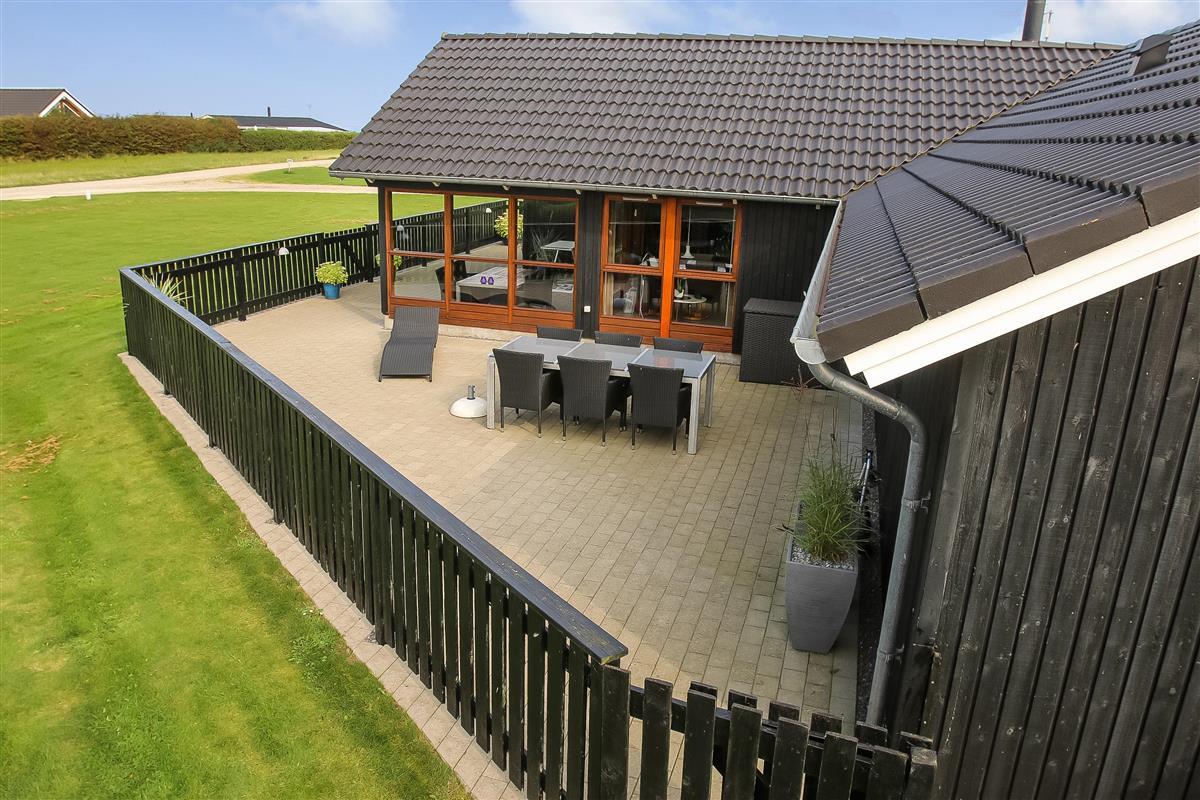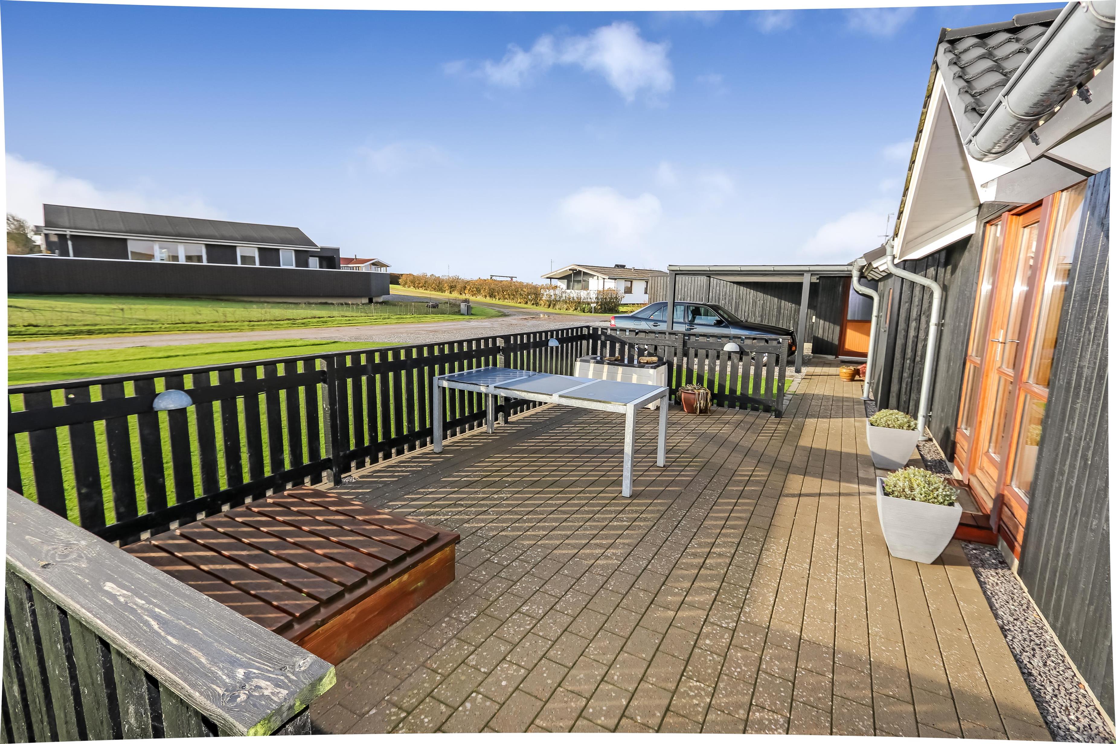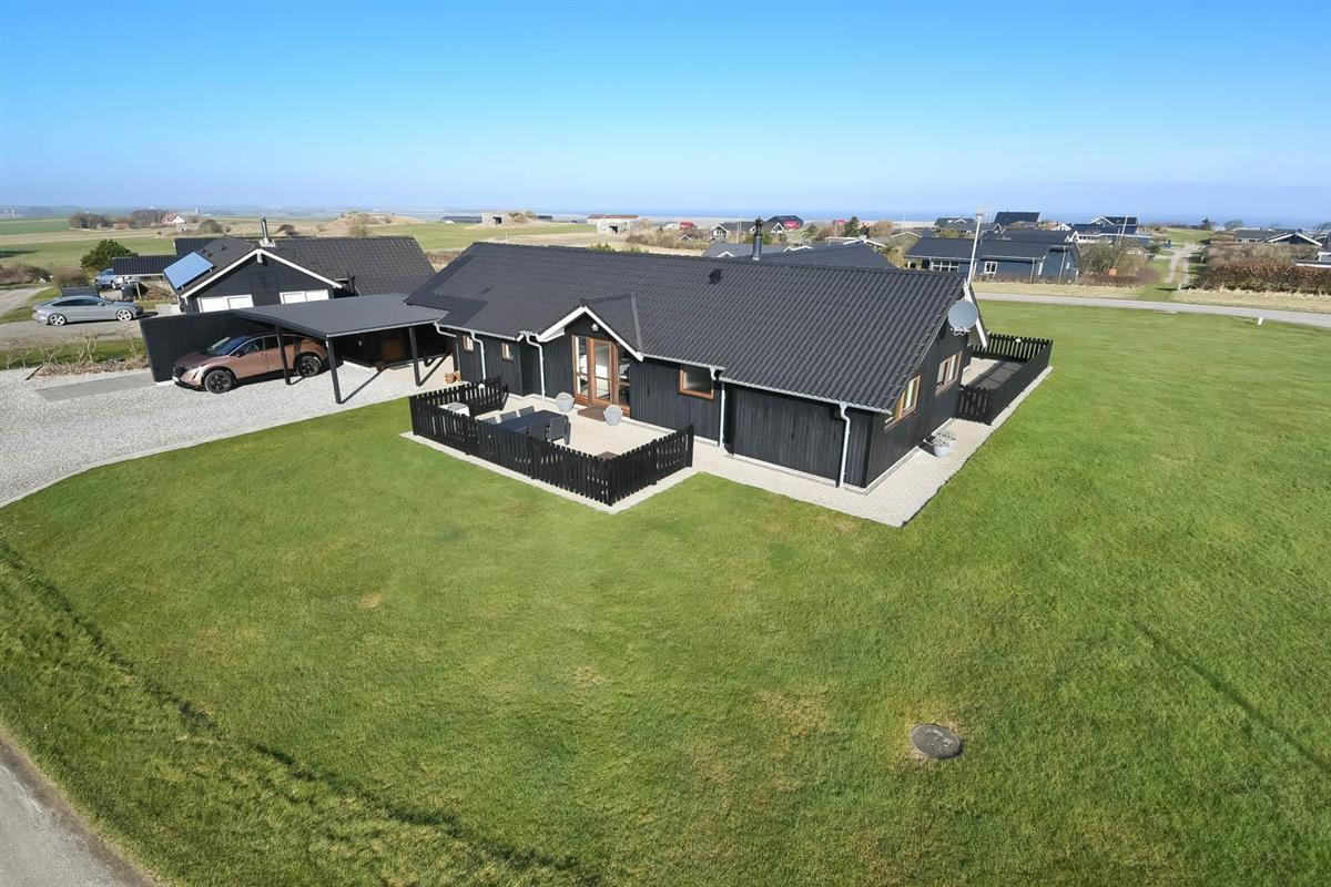 Das Ferienhaus liegt auf einem ca. 1.309 m² großen Grundstück. Von der teilweise überdachten Terrasse - mit Gartenmöbeln und 4 Sonnenbetten - haben Sie einen fantastischen Panoramablick über den Limfjord sowie in Richtung Nordsee. Gasgrill. Doppelter Carport direkt am Haus, so ist der Eingang zum Haus einfach und mühelos ist. Hier findet man immer eine windgeschützte Stelle. Die Terrasse verläuft rund um das Haus und ist komplett geschlossen. Ein einmaliges Haus für das perfekte Urlaubserlebnis. Hier wurde an alles gedacht. Der Besitzer kümmert sich gut um das Haus, sodass es sich immer von der besten Seite präsentiert.