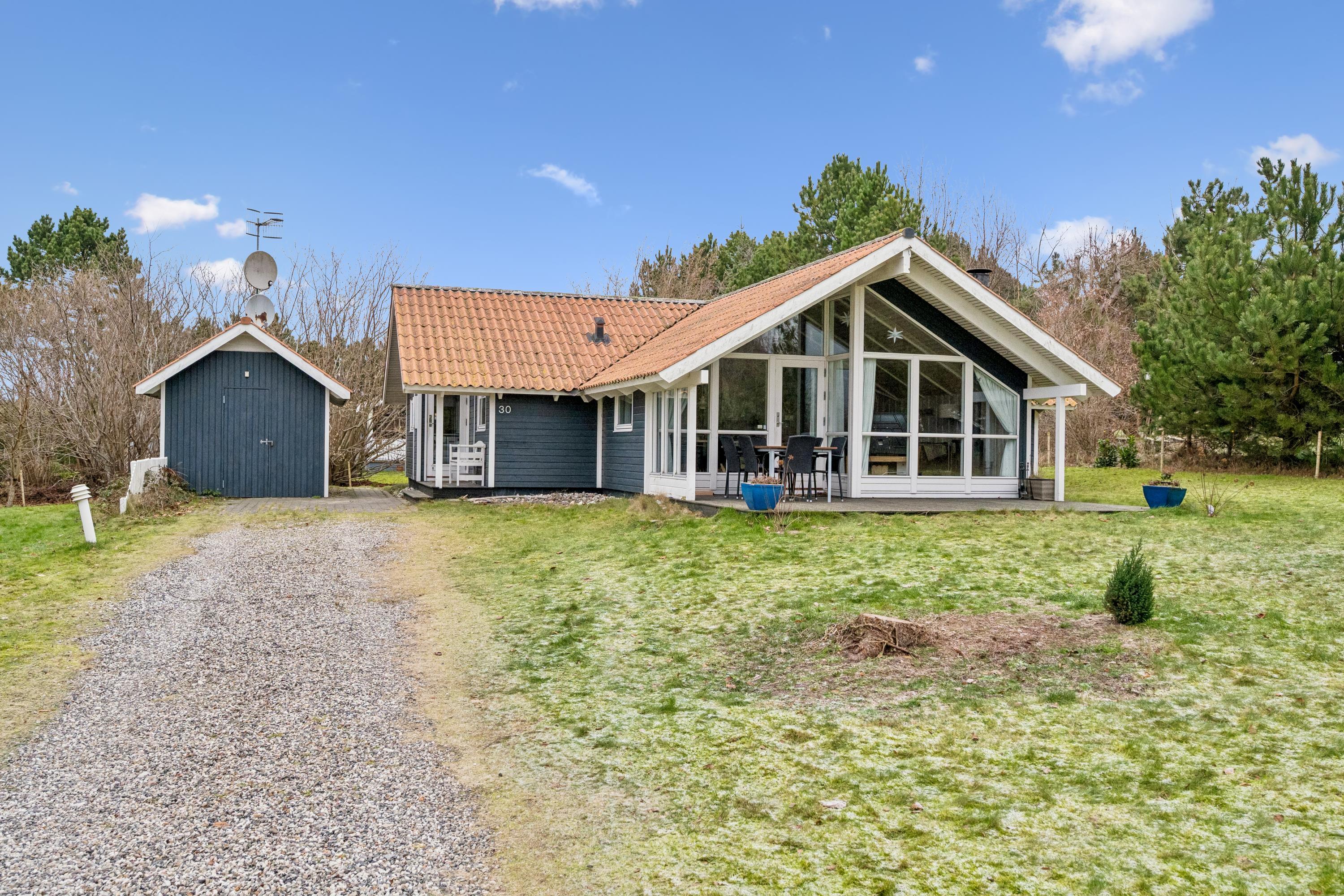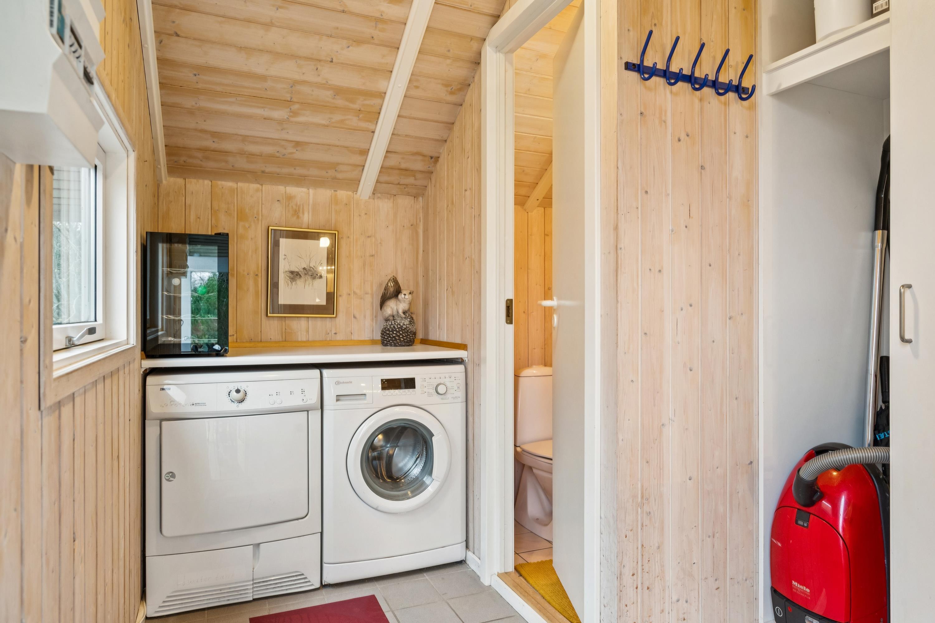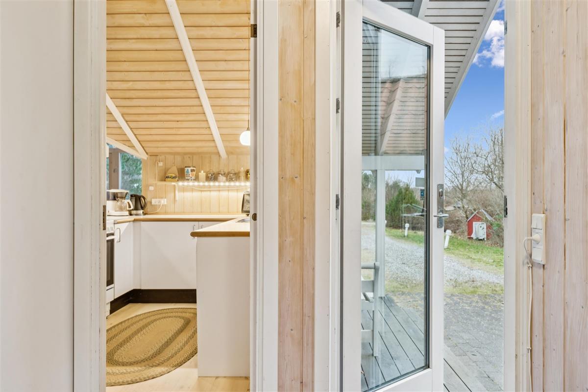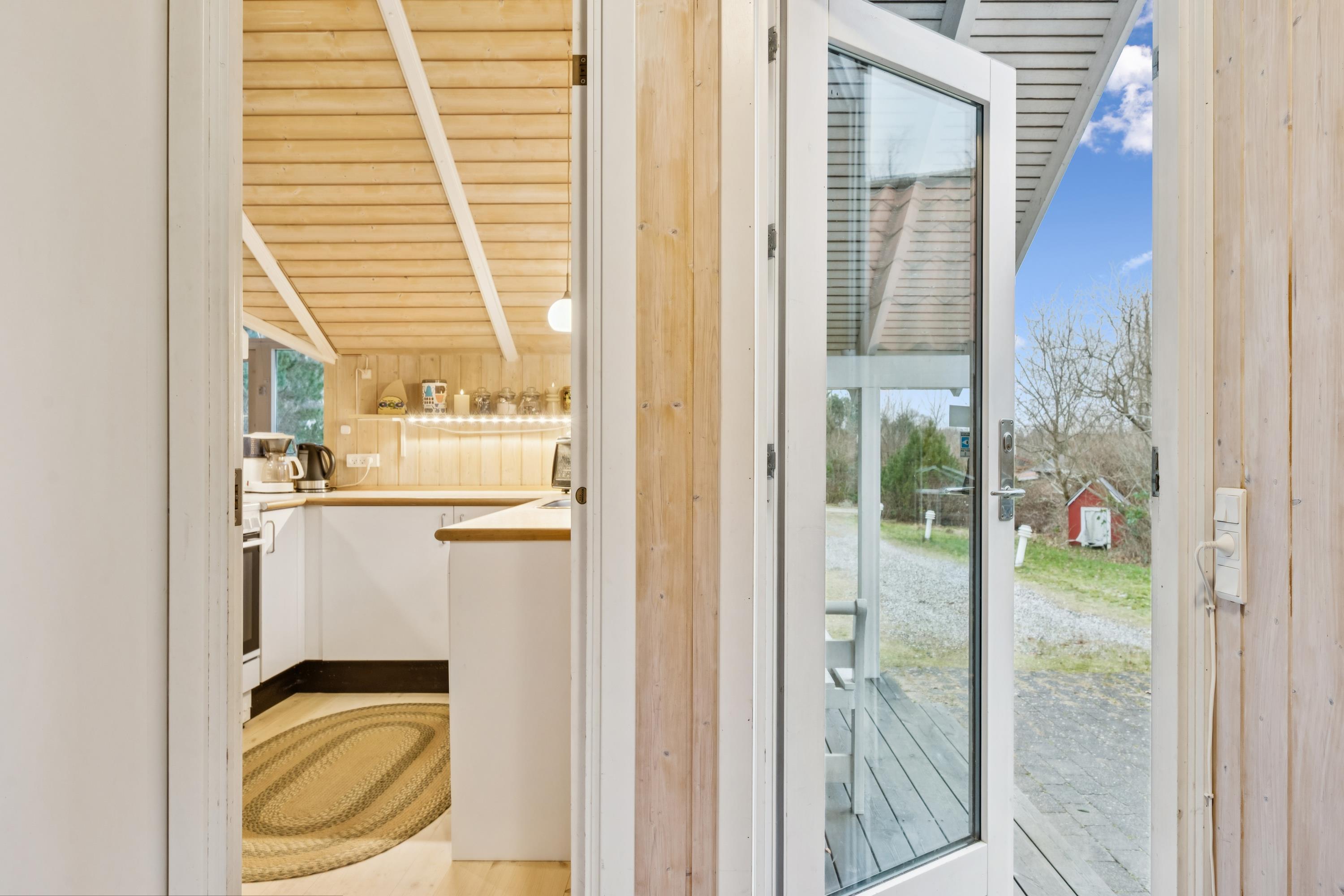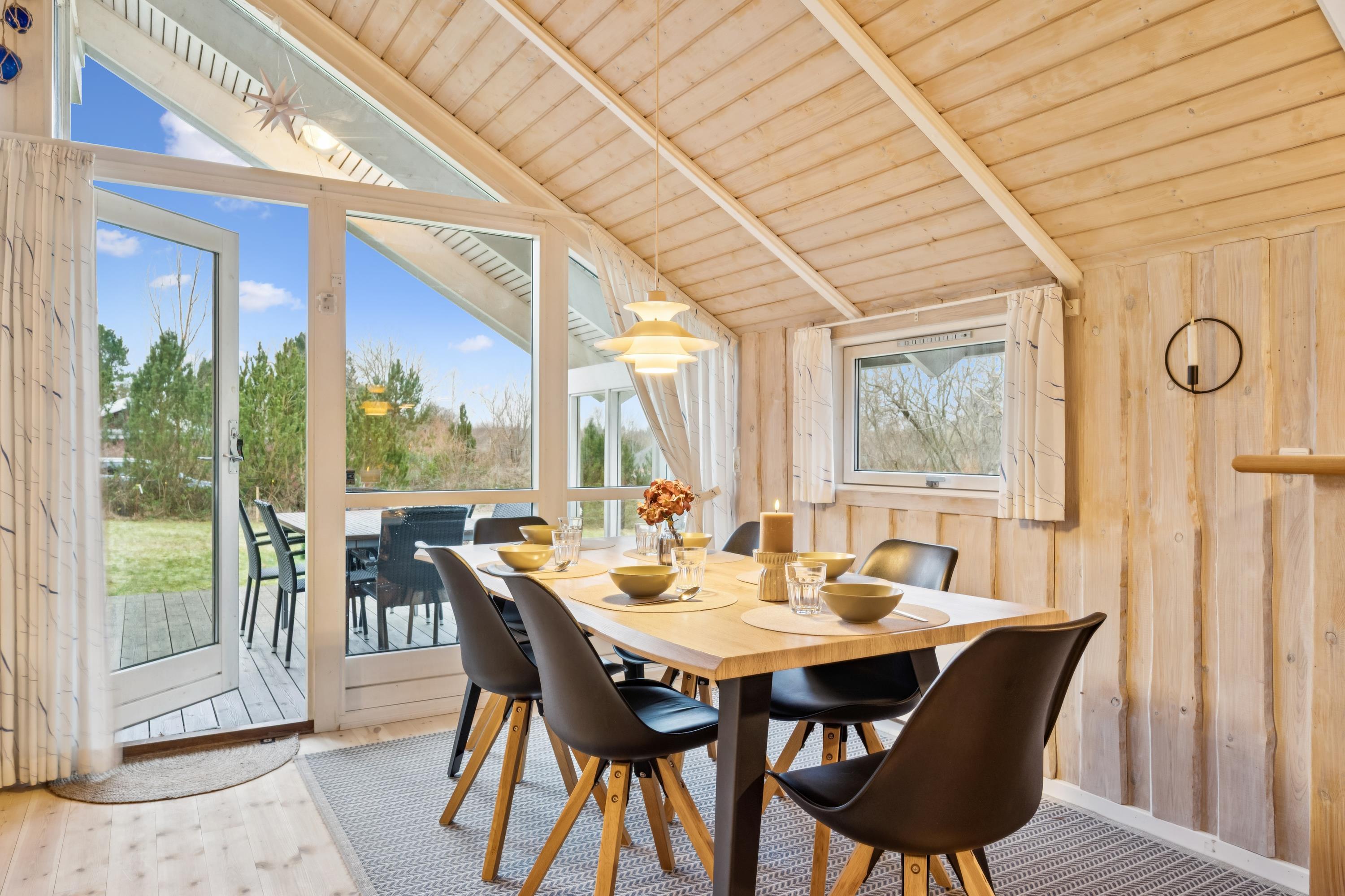 Welcome to this particularly cosy and well-maintained holiday home. The house features a well-furnished and inviting living room with comfortable furniture, a wood-burning stove, and a heat pump. From the living room, there is direct access to a lovely covered terrace with garden furniture. Adjacent to the living room is the cosy kitchen, which includes a dishwasher, as well as a pleasant dining area.