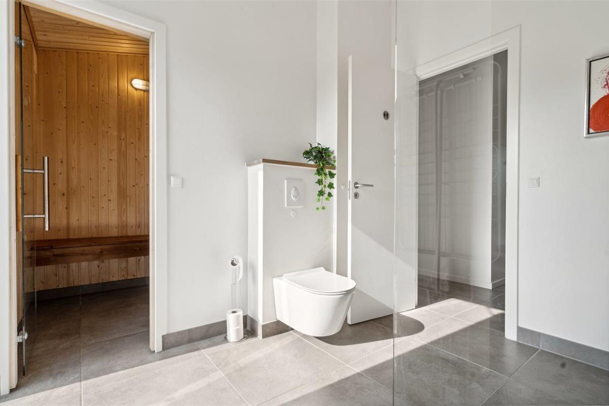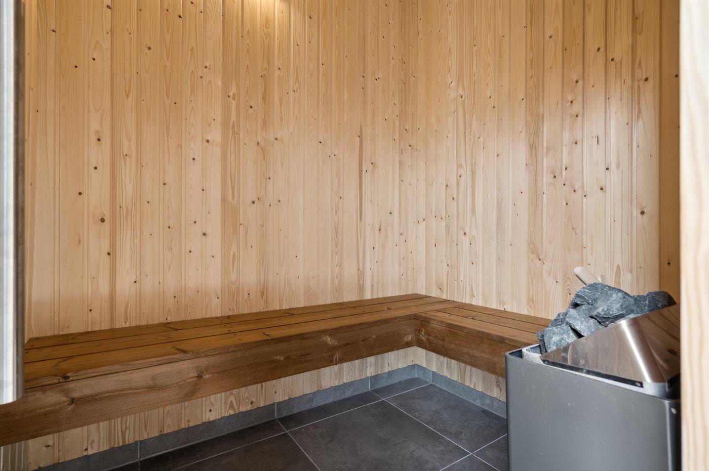Er is 2 badkamers met douchehok en 2 toiletten. Er is vloerverwarming in 2 van de badkamers. De sauna biedt de gelegenheid tot ontspanning.