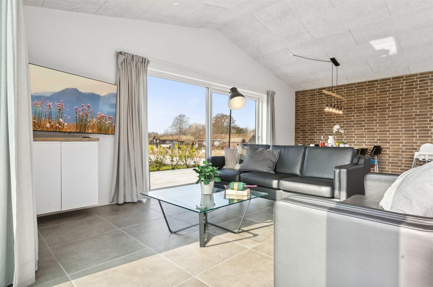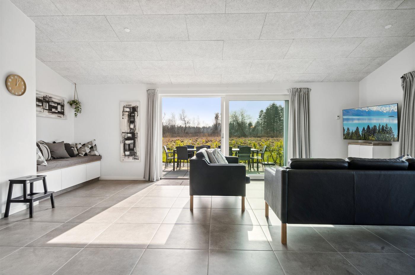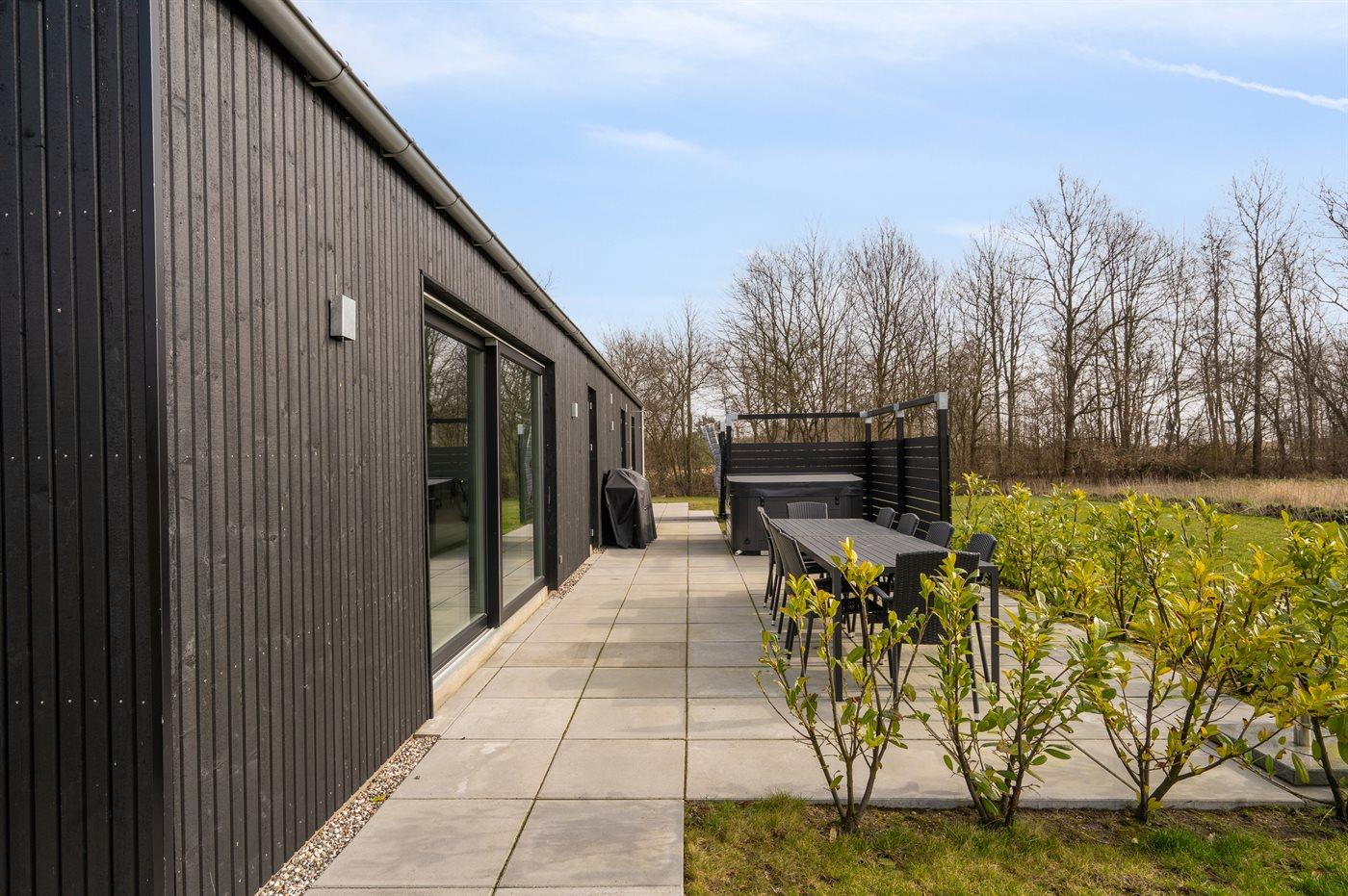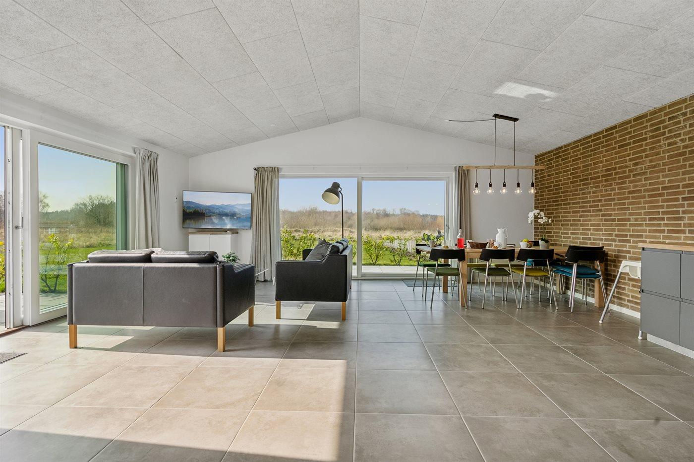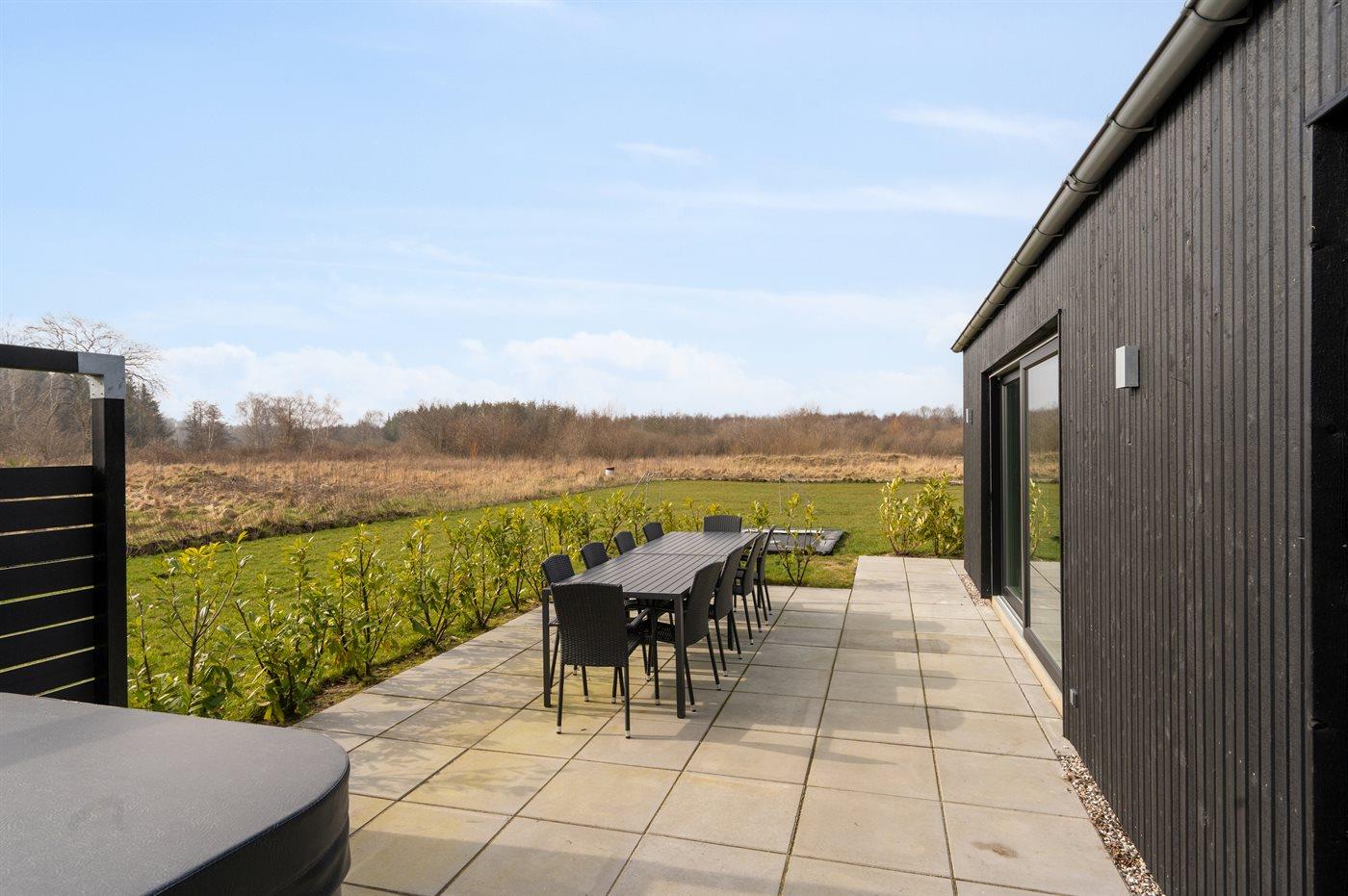 Modern vakantiehuis in Gjerrild met sauna, bubbelbaden en uitzicht op het meer, ideaal voor ontspanning en natuur.