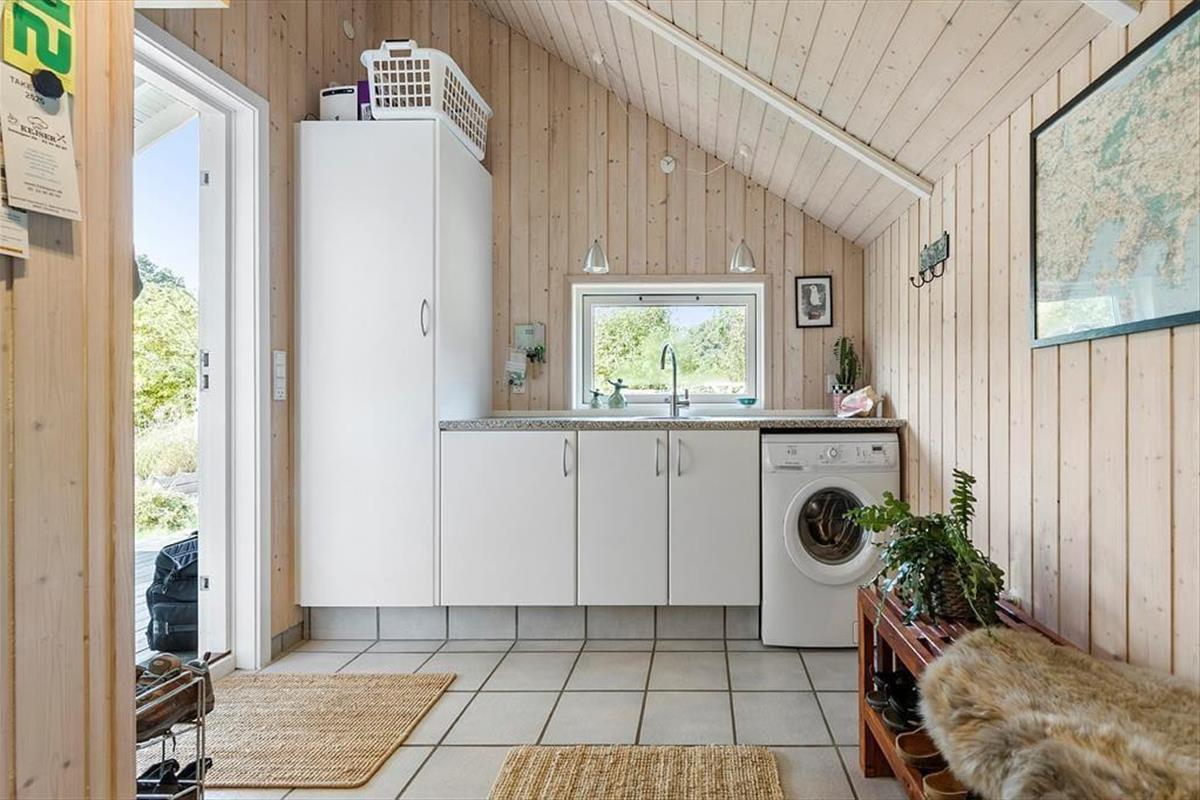 Am Gjerrild Nordstrand erwartet Sie dieses ansprechende Ferienhaus, das vom Eigentümer selber gebaut, nur selber genutzt und stets gehegt und gepflegt wurde. Nun haben wir das Vergnügen, Ihnen dieses Haus zur Vermietung anbieten zu dürfen. Das Herzstück des Holzferienhauses ist der Wohnraum, von dem Sie in alle anderen Räumlichkeiten und hinaus auf die schönen Terrassen und in den Garten gelangen. Hinter der Eingangstür erwartet Sie der Hauswirtschaftsbereich mit einer Waschmaschine und angenehm viel Platz, sodass Sie hier problemlos auch einen Kinderwagen und Ähnliches unterstellen können. Vom Hauswirtschaftsbereich gehen Sie weiter in die schöne Küche, die alles beinhaltet, was Sie für die Zubereitung köstlicher Urlaubsmahlzeiten benötigen. Dank der offenen Raumaufteilung bleiben Sie selbst während Ihrer Arbeiten in der Küche wunderbar ins Familienleben integriert. Die offene Küche fügt sich harmonisch in den geräumigen Wohnraum ein, wo unter anderem ein Kaminofen für eine richtig gemütliche, typisch dänische Ferienhausatmosphäre sorgt. Der Wohnraum bietet rund um den Esstisch und in der Sofagruppe angenehm viel Platz für alle Mitreisenden. Die Schlafplätze verteilen sich auf drei ansprechende Schlafzimmer, von denen zwei mit je einem Doppelbett eingerichtet sind. Im dritten Schlafzimmer stehen ein Etagenbett und ein Einzelbett von 120x200. Ein gutes Badezimmer und ein Gäste-WC sind selbstverständlich ebenfalls vorhanden.
