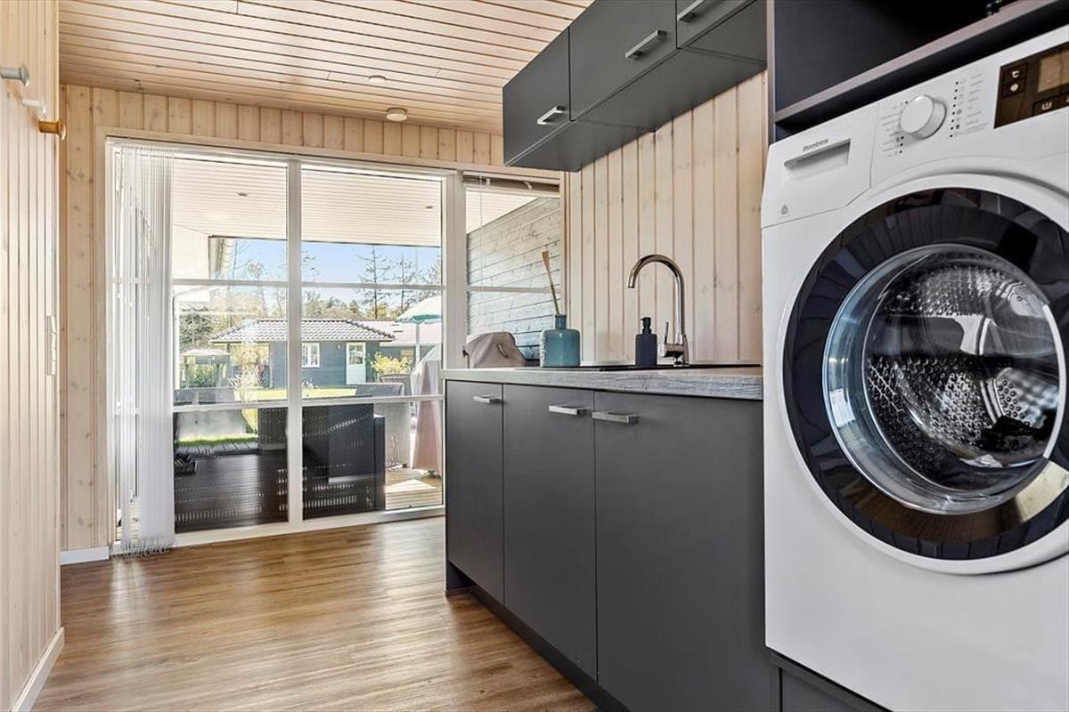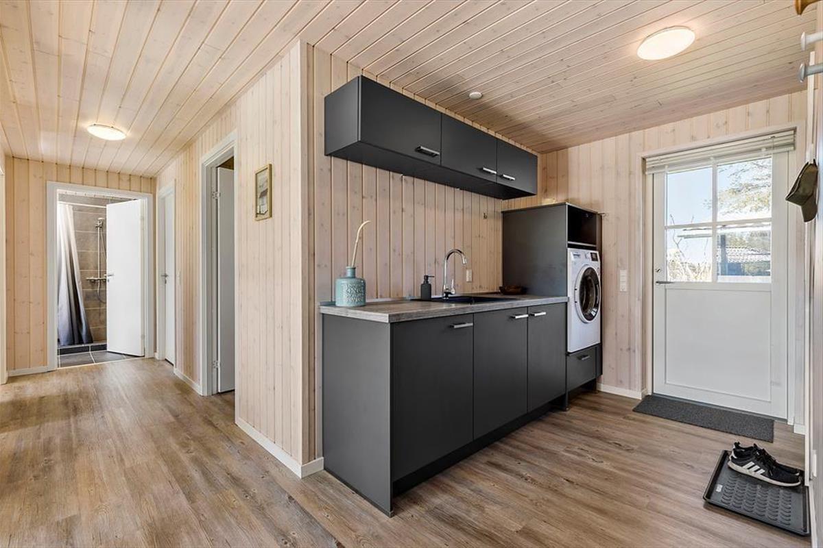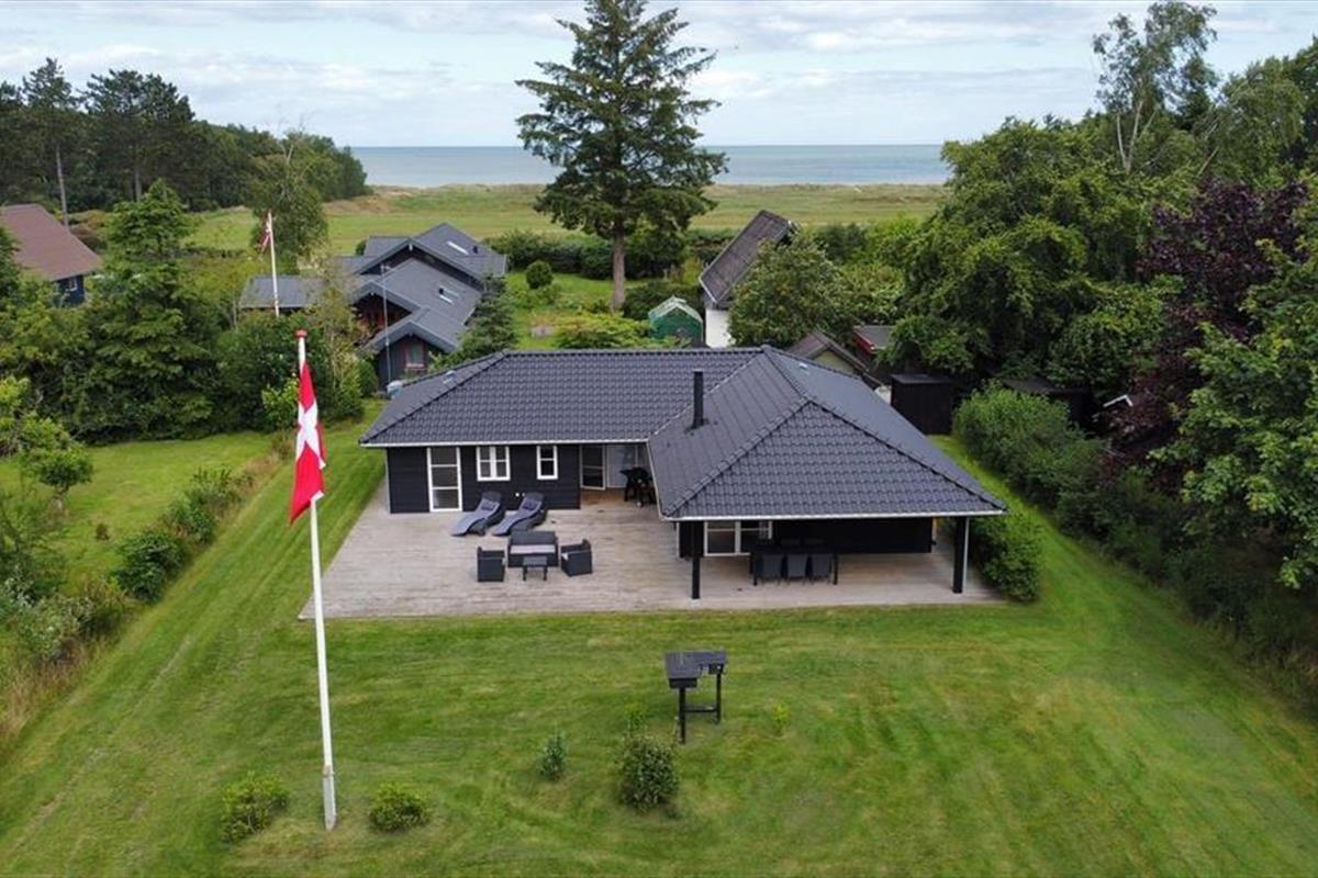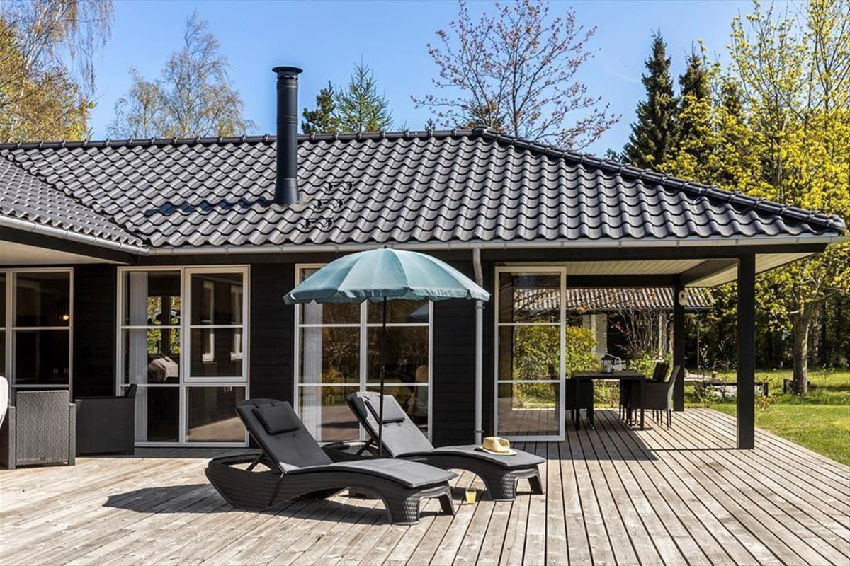 Nah am schönen Badestrand Gjerrild Nordstrands empfängt Sie dieses tolle Ferienhaus mit einer Wohnfläche von 121 m². Das Haus ist gemütlich und geräumig. Es verfügt über eine wohldurchdachte Raumaufteilung. Die gut ausgestattete Küche ist offen mit dem Essbereich und dem Wohnraum kombiniert. Für Unterhaltung sorgt ein Fernseher. Im gesamten Raum erfreuen Sie sich am knisternden Kaminofenfeuer. Mehrere Ausgänge führen hinaus auf die hervorragende Sonnenterrasse. Zwei der insgesamt vier Schlafräume beinhalten ein Doppelbett. Im Dritten stehen zwei Etagenbetten mit vier Schlafplätzen bereit. Der vierte Raum verfügt über ein Schlafsofa. Ein schönes Badezimmer und ein Gäste-WC sind ebenso vorhanden wie ein Hauswirtschafts-/Eingangsbereich mit Waschmaschine. Dieses Mietobjekt präsentiert sich ausgesprochen schön und einladend.