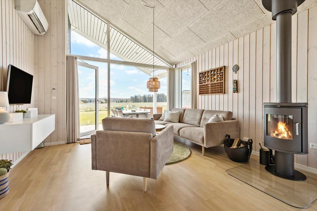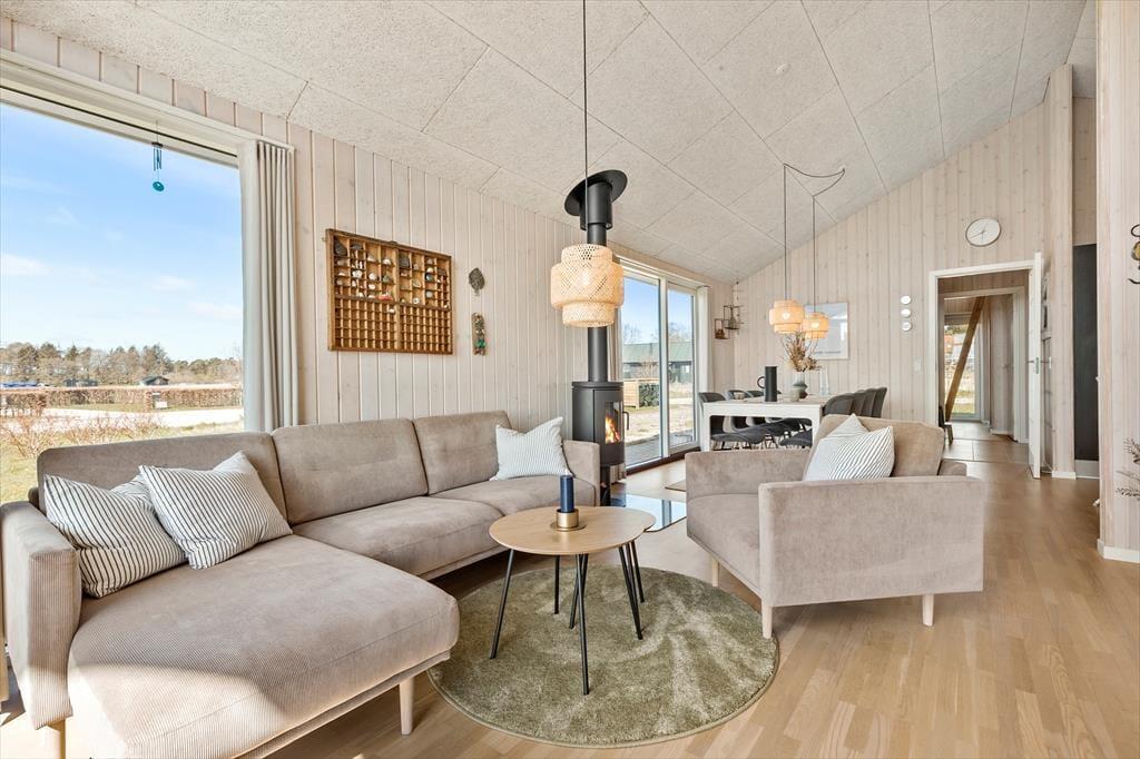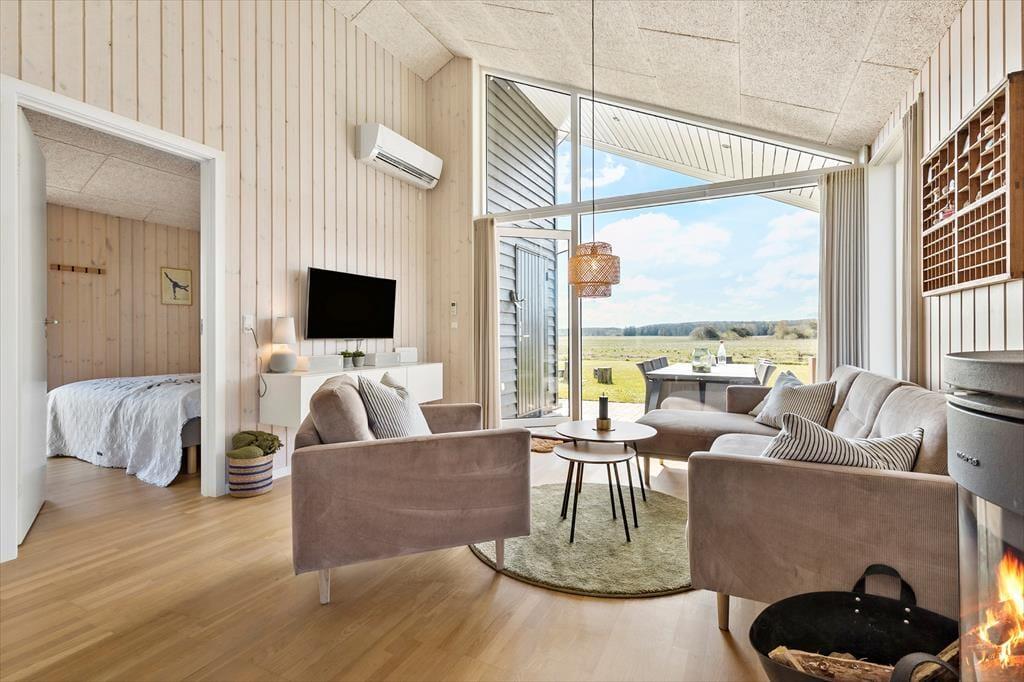 Dieses moderne Schmuckstück vereint Stil, Komfort und Funktionalität auf perfekte Weise. Das Haus ist top gepflegt und überzeugt mit einer geschmackvollen Einrichtung, die Qualität und Eleganz ausstrahlt. Hier kannst du dich in hellen, freundlichen Räumen entspannen und einen Urlaub ohne Kompromisse genießen. Dank Kaminofen und Wärmepumpe ist das Haus das ganze Jahr über angenehm temperiert – egal, ob du im Sommer oder im Winter hier bist. Der offene Wohn- und Küchenbereich ist mit allem ausgestattet, was du für die Zubereitung leckerer Mahlzeiten brauchst – von der Spülmaschine bis zu modernen Haushaltsgeräten, die das Kochen einfach und bequem machen. Das Haus ist ideal für Familien mit Kindern und bietet durchdachte, praktische Lösungen – etwa eine Waschmaschine, die den Alltag im Urlaub erleichtert. Für eine erholsame Nachtruhe sorgen drei großzügige Schlafzimmer mit komfortablen Doppelbetten. Als zusätzliches Highlight gibt es einen gemütlichen Schlafboden mit Platz für zwei Personen – perfekt für Kinder oder Gäste. Am Abend kannst du das Badefass anheizen und dich in warmem Wasser entspannen – vielleicht nach einem erlebnisreichen Tag oder wenn die Kinder schon schlafen.