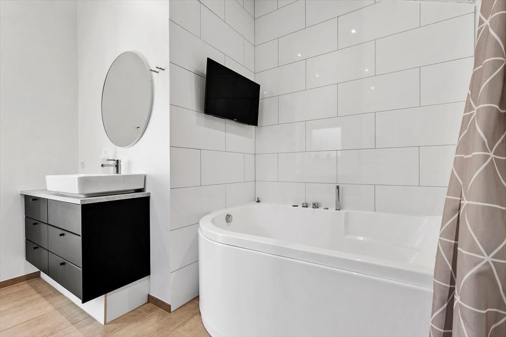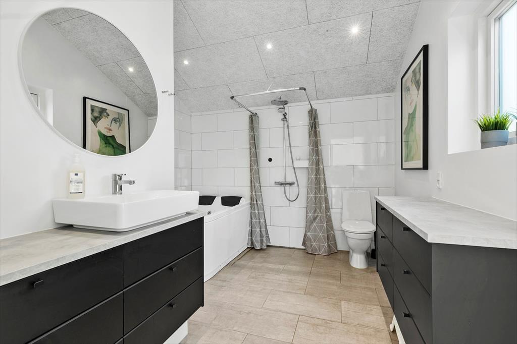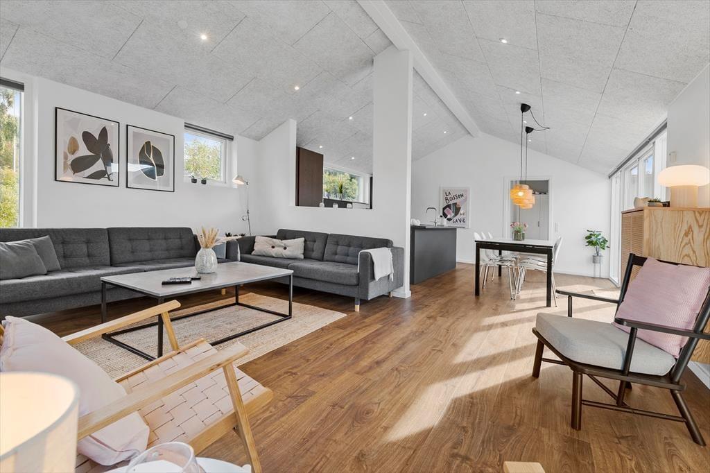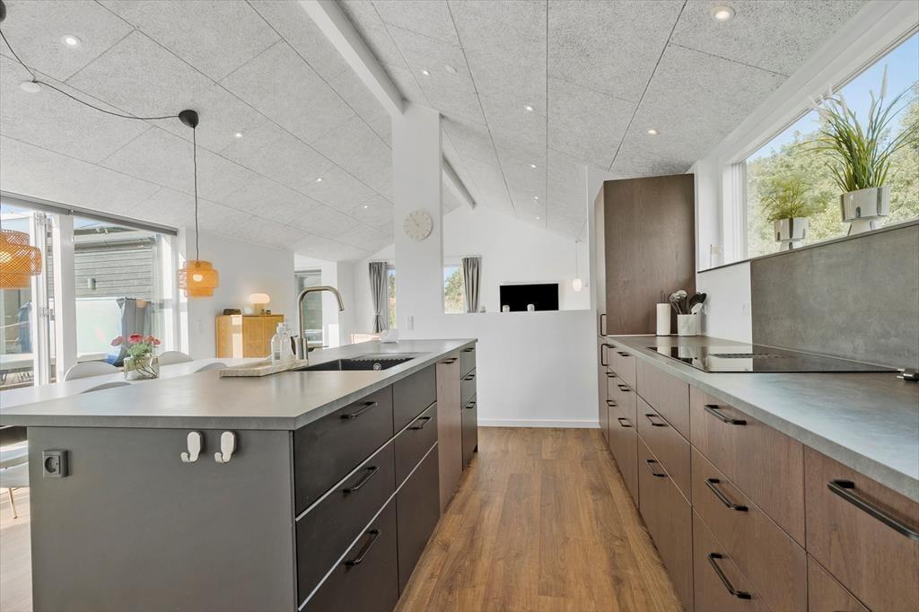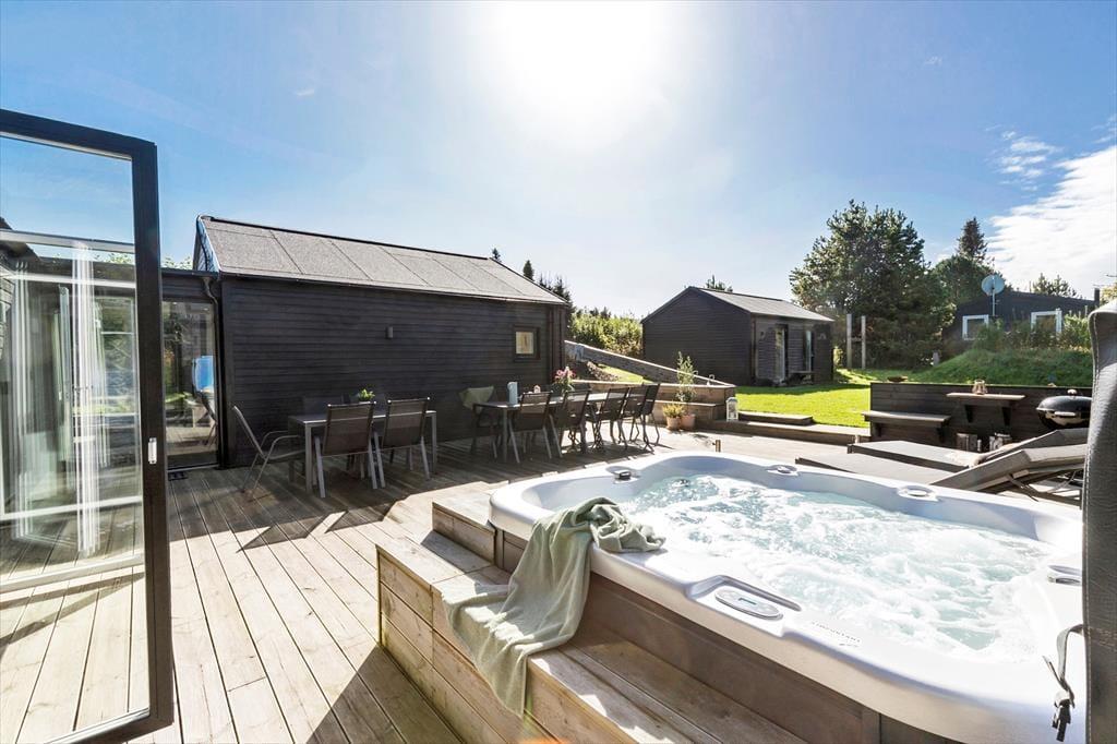 Freue dich bereits jetzt auf dieses helle, einladende Ferienhaus, das einen tollen Rahmen für erholsame Urlaubstage darstellt. Jeder Winkel des Urlaubsdomizils besticht mit moderner Eleganz und zeugt von gutem Geschmack. Im gemütlichen Aufenthaltsbereich mit offen integrierter Küche bereitet ihr bei angeregten Gesprächen zusammen die Mahlzeiten zu. Das fertige Essen genießt ihr anschließend in geselliger Runde am schönen Esstisch. Nach dem Essen lasst ihr euch entspannt auf den weichen Polstermöbeln nieder, unterhaltet euch oder schaut zusammen einen spannenden Film an. Dein Ferienhaus verfügt über zwei elegante Badezimmer, von denen eines mit einem Whirlpool und einem TV-Bildschirm glänzt - perfekt für pure Entspannung mit einem Hauch von Luxus.
