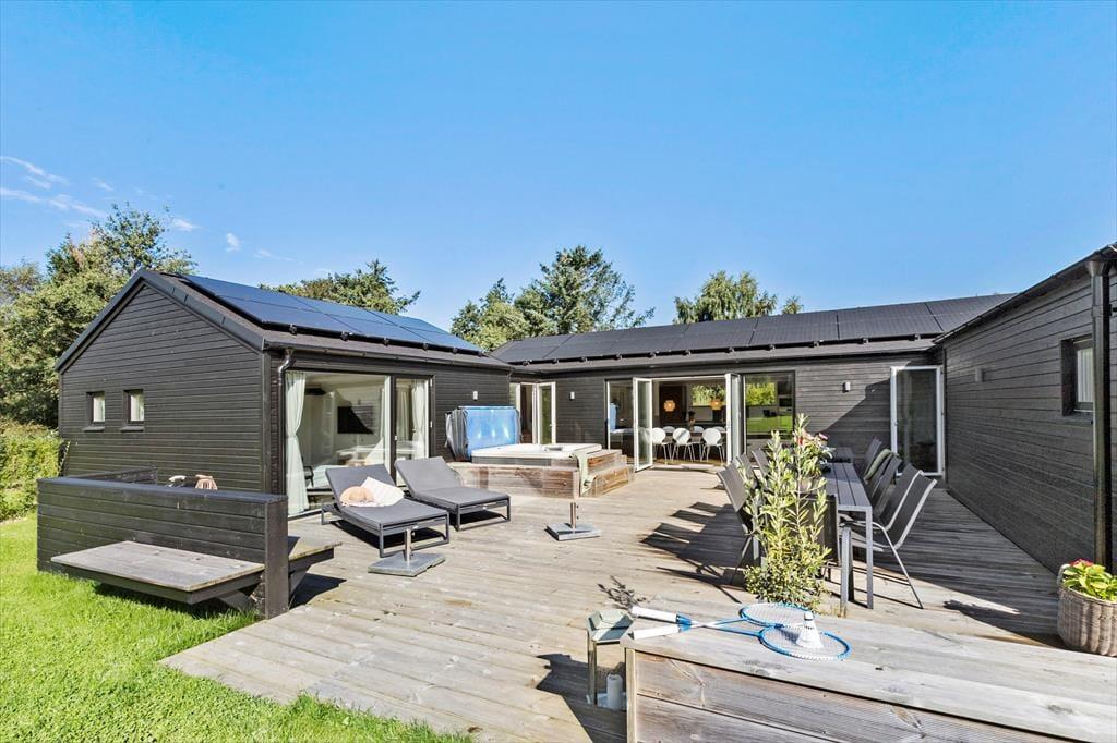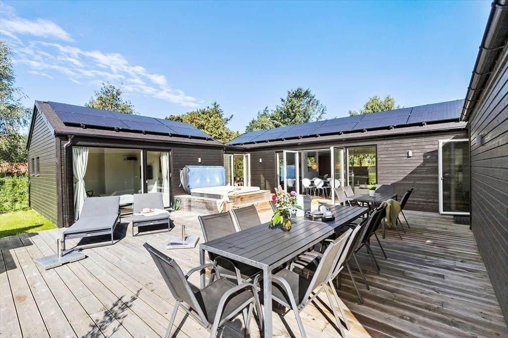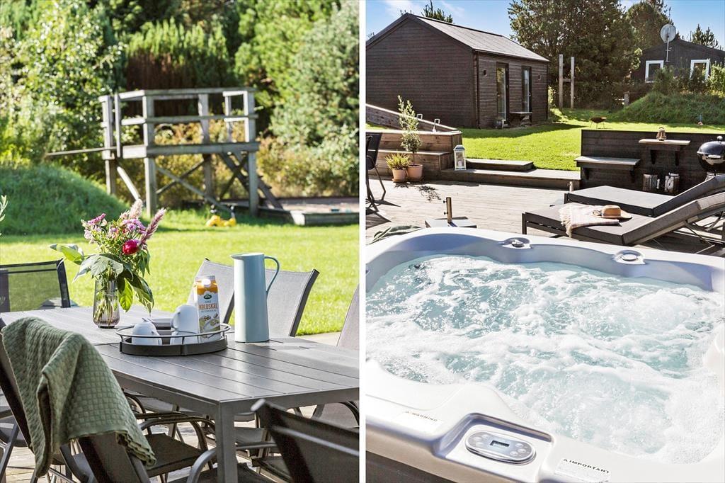 Sobald du hinaus auf die Terrasse trittst, eröffnet sich dir eine Welt voller Luxus und schönster Erholung. Alles ist so konzipiert, dass du dich im Kreise deiner Lieben bestmöglich erholst. Stelle dir nur vor, wie du dich früh am Morgen mit dem ersten Becher Kaffee des Tages in den eleganten Loungemöbeln niederlässt, während deine Kinder vergnügt auf der großen, grünen Rasenfläche umhertollen und lachend auf dem Trampolin hüpfen. Wenn sich bei dir und deiner Familie der Appetit regt, bereitest du alles für einen gemütlichen Essen vom Grill vor. Bei Einbruch der Dämmerung empfehlen wir dir ein warmes Bad im sprudelnden Outdoor-Whirlpool, bei dem du die herrliche Ruhe und das schöne Urlaubsleben in vollen Zügen genießt.