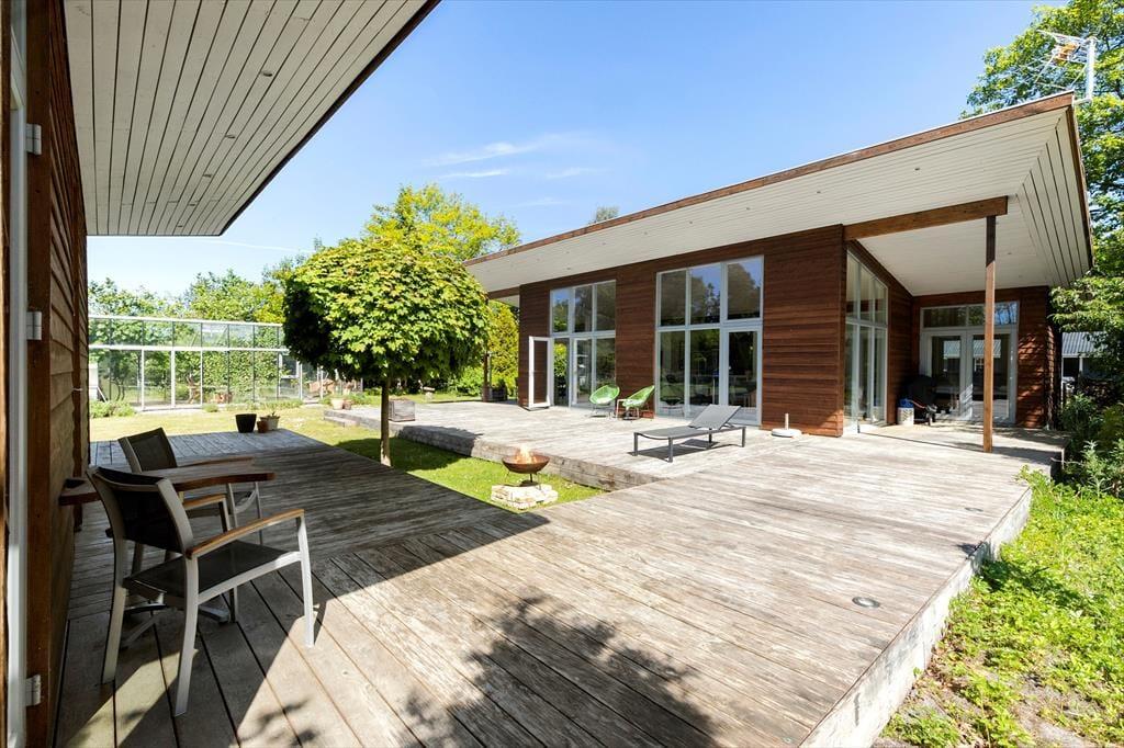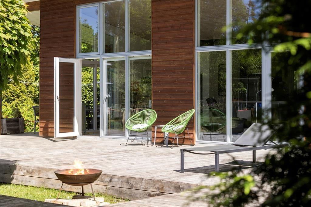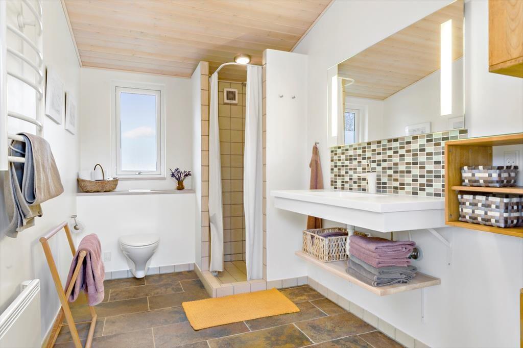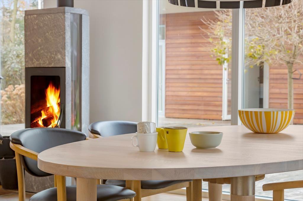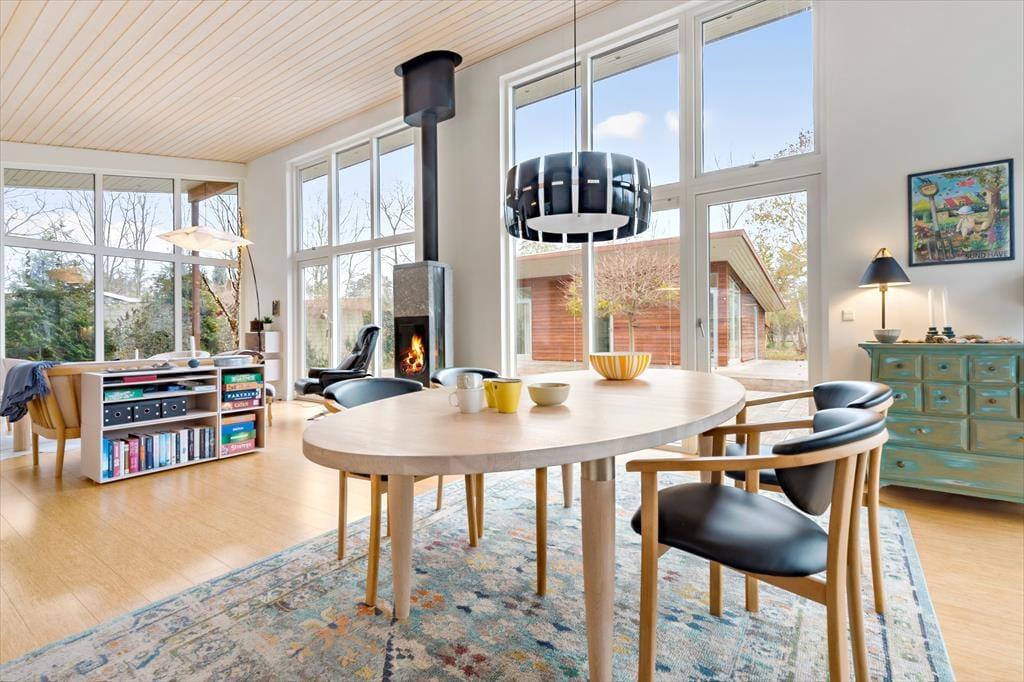 Nur 450 Meter vom herrlichen Badestrand Gjerrild Nordstrand entfernt, begrüßt dich dieses einzigartige, überaus reizende Urlaubsparadies. Das außergewöhnliche Urlaubsdomizil ist der Inbegriff von Qualität und wohldurchdachtem Design - geschaffen mit viel Liebe und Sinn für Ästhetik. Die Badezimmer, die Küche und der Eingangsbereich bestechen mit einem eleganten Schieferboden. Der Rest des Hauses ist mit einem Bambusboden versehen, der dazu einlädt, die Schuhe auszuziehen und das angenehm Gefühl unter den Fußsohlen zu genießen. Die Decken des Hauses sind hoch. Die großen Fenster gewähren einen tollen Tageslichteinfall und schaffen eine schöne Verbindung zur umliegenden Natur. Unmittelbar nach dem ersten Betreten spürst du schon im Eingangsbereich deines Ferienhauses, dass du dich für ein angenehm geräumiges, überaus funktionelles Mietobjekt entschieden hast. Im Eingangsbereich kannst du Strandtaschen und Ähnliches abstellen, Jacken aufhängen und dergleichen. Von dort gelangst du direkt in den hellen Wohnraum, der mit einem tollen Panoramablick in den Garten, auf die Orangerie und das gemütliche Nebengebäude zu überzeugen weiß. Ganz gleich, ob du in der Küche Kartoffeln schälst, den Esstisch deckst oder es dir mit einem spannenden Buch auf dem Sofa gemütlich machst, zu jeder Zeit genießt du den hübschen Ausblick. Der im Wohnraum platzierte Kaminofen untermalt das wertvolle Beisammensein mit deinen Lieben an kühlen Abenden mit behaglicher Wärme und einem Maximum an echter Ferienhausstimmung. Im Haupthaus stehen zwei gemütliche Schlafräume und ein schönes Duschbadezimmer bereit. Einer der Schlafräume empfängt dich mit einem Doppelbett, der andere mit einem doppelten Schlafsofa. Das schöne Nebengebäude umfasst zwei zusätzliche Schlafräume mit doppelten Schlafsofas und ein weiteres Badezimmer. Dieses Ferienhaus eignet sich hervorragend für Urlauber, die ein Urlaubsdomizil weit abseits des Gewöhnlichen suchen.
