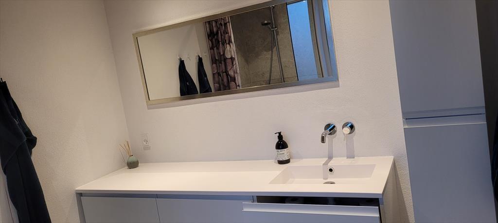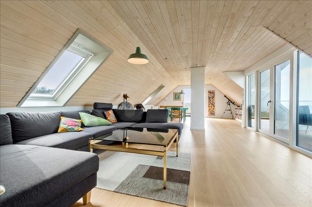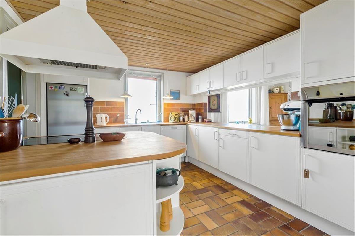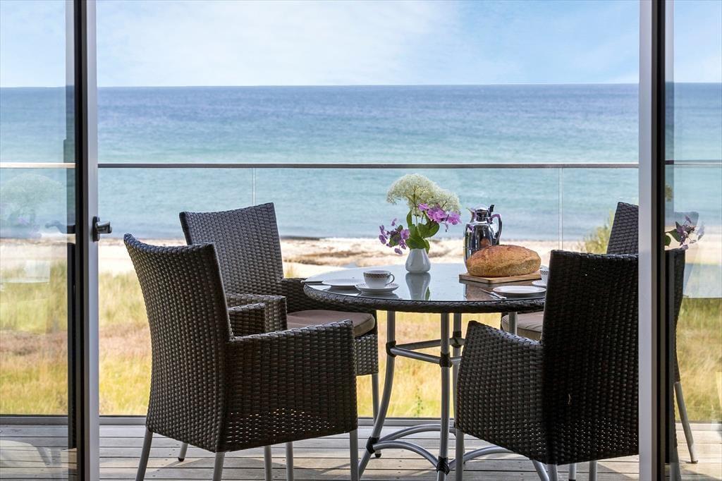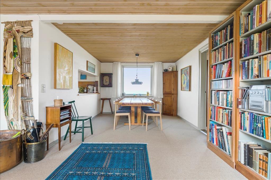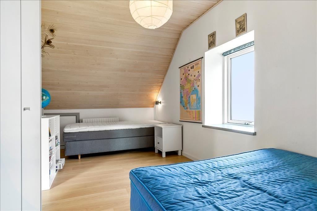 Das reizende, zweigeschossige Haus ist der Inbegriff von Geschichte und Gemütlichkeit. Das Erdgeschoss empfängt dich mit einem stimmungsvollen Wohnraum, in dem ein knisternder Kaminofen an kühlen Tagen mit behaglicher Wärme verwöhnt. Die gemeinsamen Mahlzeiten am Esstisch werden von einer Aussicht untermalt, die schöner kaum sein könnte. Du blickst mit deinen Lieben direkt hinaus auf das Kattegat, das sich täglich, gar stündlich, von einer andere Seite zeigt. Die Küche ist gemütlich und funktionell und bietet alles, was du für die Zubereitung eurer täglichen Mahlzeiten brauchst. Das Erdgeschoss umfasst darüber hinaus zwei schöne Schlafräume mit Doppelbetten und ein neu renoviertes Badezimmer.