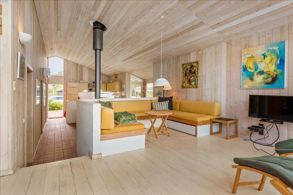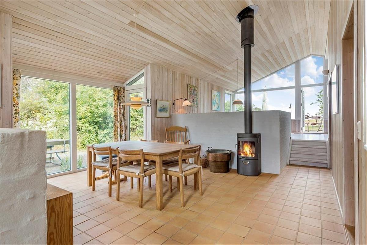 Nahe eines schönen Badestrandes, auf einem schönen Naturgrundstück, erwartet Sie dieses ältere, aber durchweg richtig gemütliche Ferienhaus. Das Urlaubsdomizil besticht mit unterschiedlichen Wohnebenen und beinhaltet eine gemütliche Küche, in der Ihnen unter anderem ein Geschirrspüler und eine Mikrowelle hilfreich zur Seite stehen. Die Küche ist offen mit dem guten Essbereich verbunden. Für behagliche Wohlfühltemperaturen sorgen der romantisch knisternde Kaminofen und die Wärmepumpe. Der helle, gemütlich eingerichtete Wohnraum verwöhnt nicht nur mit einem direkten Zugang zur Terrasse, sondern auch mit einer schönen Aussicht zum Wasser. Das ansprechende Badezimmer bietet Ihnen einen direkten Zugang zur Sauna. Die Schlafplätze des Hauses verteilen sich auf zwei Schlafräume. Auf dem Schlafboden stehen Ihnen zwei weitere Schlafplätze zur Verfügung. Für die kleinen Urlaubsgäste sind ein Hochstuhl und ein Kinderbett im Haus vorhanden.