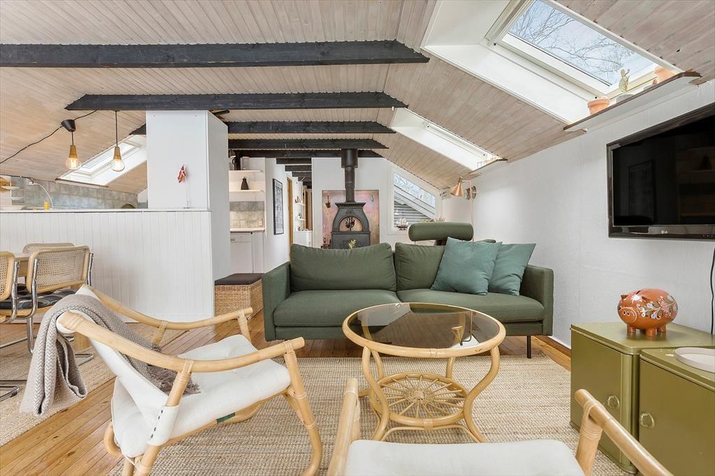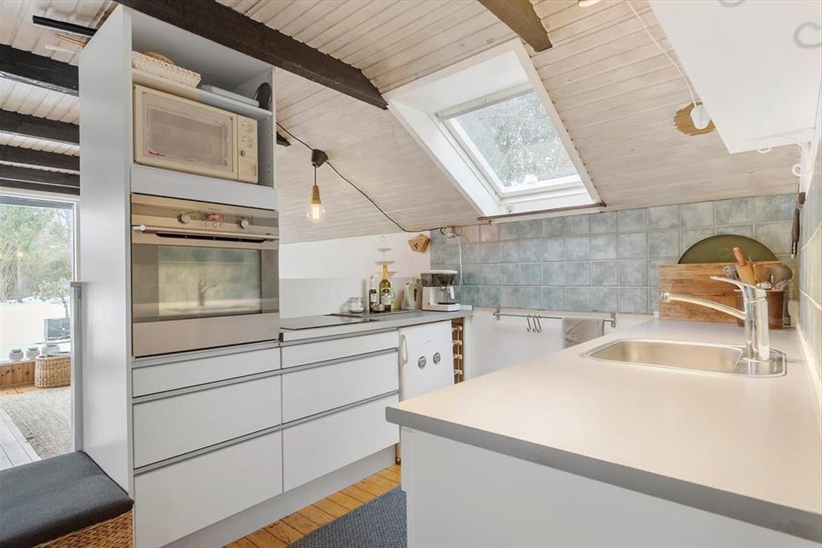 Das Ferienhausgebiet Gjerrild ist für seinen schönen Badestrand und die ganzjährig schönen umliegenden Laubwälder bekannt. Die Gegend bietet gute Wander- und Fahrradwege, die entlang der Nordküste Djursland verlaufen und zu aktiven Stunden animieren. Zu den beliebtesten Urlaubsaktivitäten gehören das Angeln im Meer und das Pflücken von Austern. In den Sommermonaten können Sie beim 400 Meter entfernten Campingplatz frische Brötchen, Eis und warme Snacks kaufen. Auf Ihrem Weg zum Haus passieren Sie das Dorf Gjerrild, bei dem es sich um ein schönes kleines Dorf mit einer Kirche, einem Lebensmittelgeschäft und einem Landgasthof handelt. Im Landgasthof freut man sich darauf, Sie mit traditionellen dänischen Gerichten verwöhnen zu dürfen. Hinter dem Gasthof befindet sich Schloss Sostrup, das eine interessante Historie und ein abwechslungsreiches Aktivitätsprogramm bietet. Nach rund 15 Kilometern erreichen Sie die Hafenstadt Grenaa mit beschaulichen Fußgängerzonen und vielen Cafés. Im beliebten Kattegatcentret können Sie mit Haien und Pinguinen auf Tuchfühlung gehen. Vom Hafen legen täglich die Fähren zur Insel Anholt und nach Schweden ab. Rund eine Stunde Fahrzeit trennt Sie von der malerischen Handelsstadt Ebeltoft, vom faszinierenden Nationalpark Mols Bjerge und den familienfreundlichen Touristenattraktionen Djurs Sommerland, Ree Park und Skandinavisk Dyrepark.