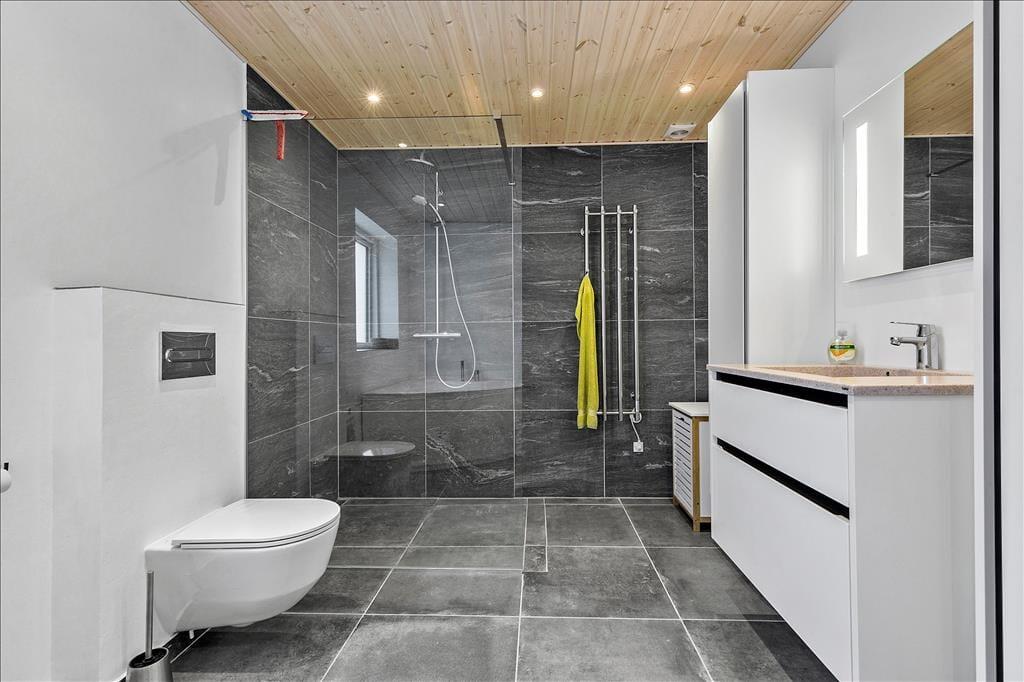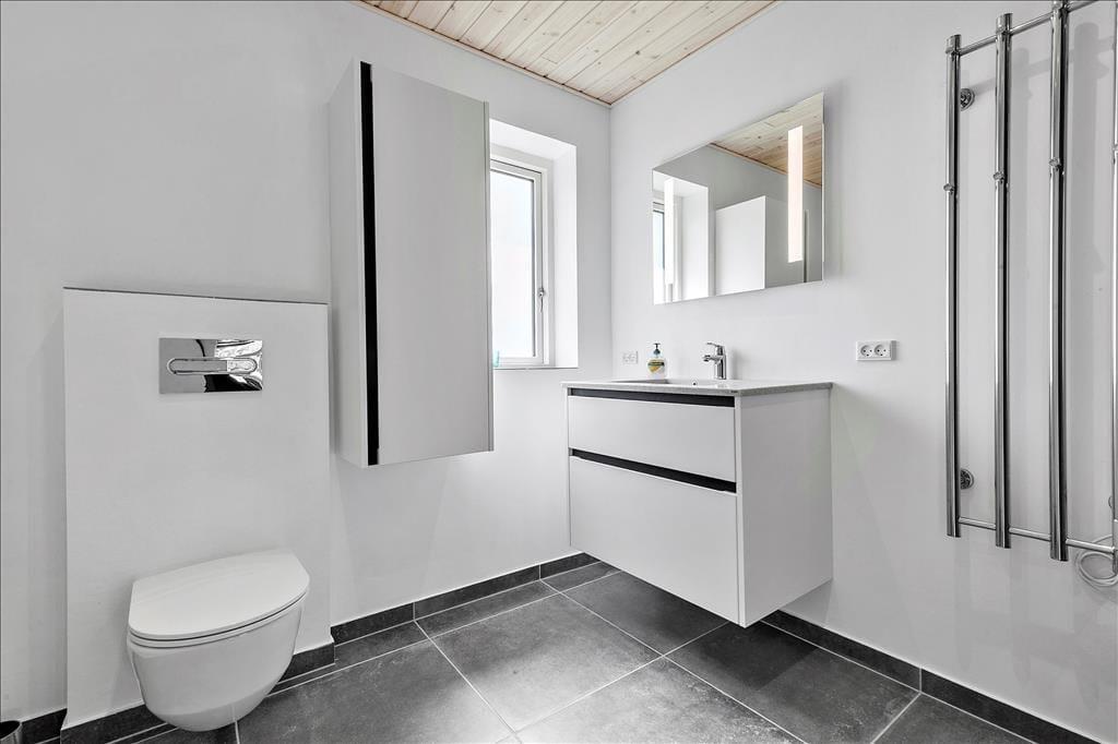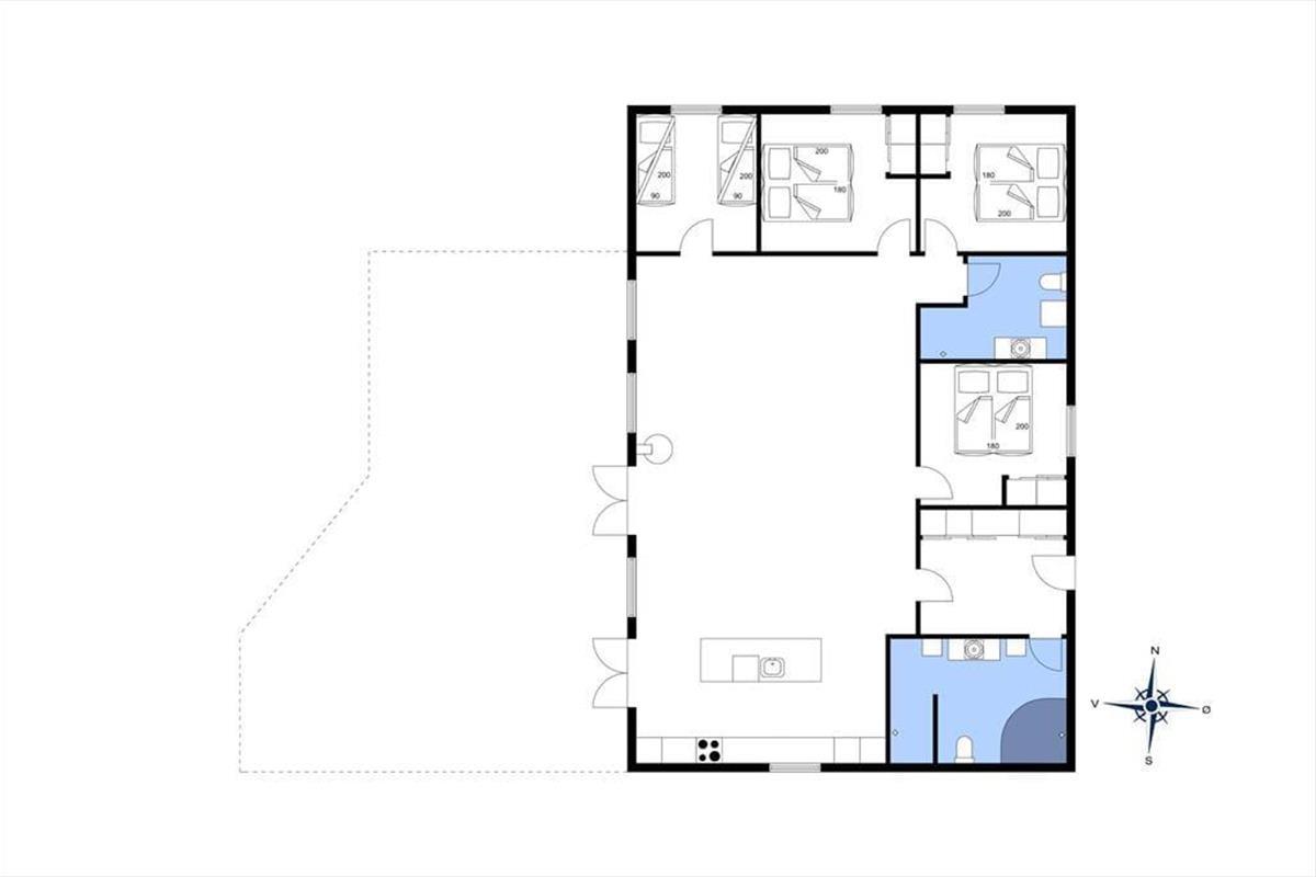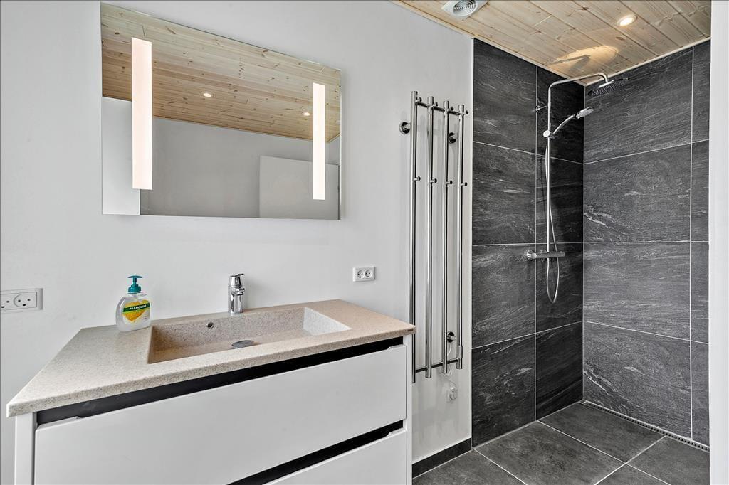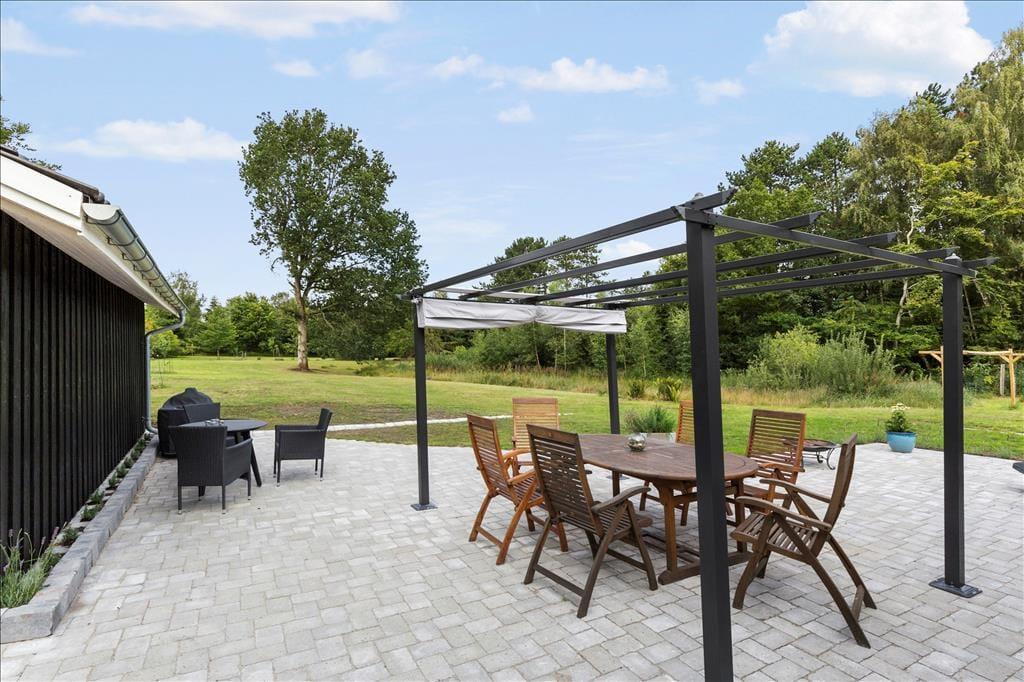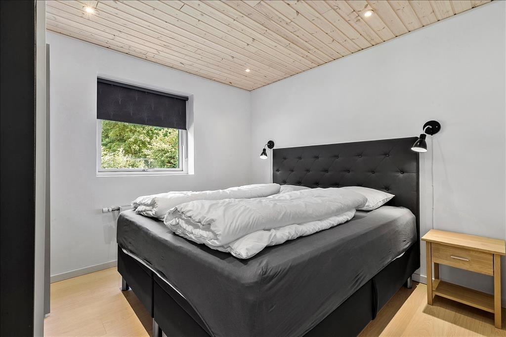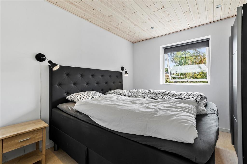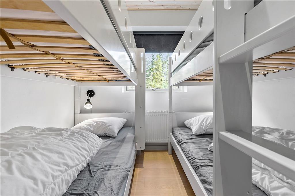 Nahe einem der besten Badestrände Jütlands erwartet Sie dieses fantastische Freizeithaus, das sich mit einem idyllischen See im Garten präsentiert, der direkt vor dem Fenster platziert ist. Die herrliche Aussicht auf den See genießen Sie natürlich nicht nur im Hausinneren, sondern von der schönen Steinterrasse. Die tolle Küche, die sich direkt neben dem schönen Essplatz befindet, präsentiert sich stilvoll, schlicht und mit ansprechendem Design. Sie bietet Ihnen wirklich ALLE Annehmlichkeiten, die die Zubereitung köstlicher Mahlzeiten zum reinsten Vergnügen machen - inklusive eines Geschirrspülers, eines großen Kühl- und Gefrierschranks, eines modernen Backofens, großer Kochplatten und eines tollen, effektiven Dunstabzuges. Die Küche grenzt wie erwähnt direkt und offen an den geräumigen Essbereich, von dem Sie weiter in den gemütlichen Wohnraum gelangen. In diesem stimmungsvollen Raum können Sie sich wunderbar in ein gutes Buch vertiefen, gemeinsam spielen oder den ein oder anderen spannenden Film auf dem Fernseher anschauen. Untermalt werden Ihre wertvollen gemeinsamen Stunden vom behaglichen Knistern des Kaminofens. Vom Essbereich und von der Küche aus haben Sie direkten Zugang zu einer stimmungsvollen Steinterrasse, auf der Sie nach Herzenslust die Sonne, das Beisammensein und gesellige, entspannte Grillabende genießen können. Die Schlafplätze verteilen sich auf vier richtig gute Schlafzimmer, von denen drei mit je einem Doppelbett eingerichtet sind. Im letzten Schlafraum stehen vier Schlafplätze in Form von Etagenbetten für Sie bereit. Der geräumige Eingangsbereich beherbergt problemlos einen Kinderwagen oder andere sperrige Dinge. Zwei schöne Badezimmer stehen selbstverständlich ebenfalls zu Ihrer Verfügung. Eines der Bäder begeistert mit einem Whirlpool, der zu traumhaft erholsamen Momenten voller Wellnessflair und Ruhe einlädt.