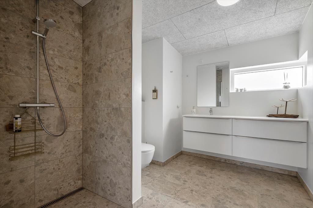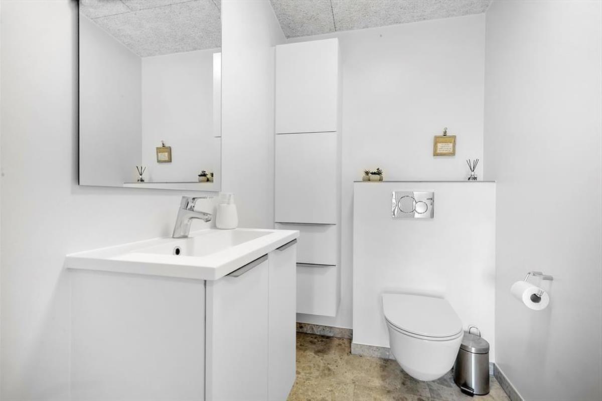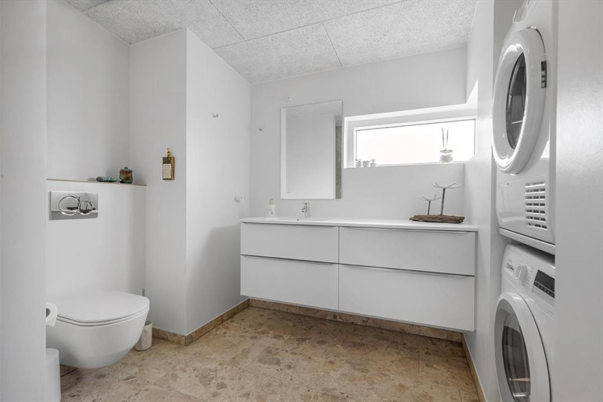 Genauso schön wie der Rest des Hauses, präsentiert sich das helle, tolle Badezimmer. Im Badezimmer genießt du ausgiebige Duschbäder und erfreust dich an der praktischen Waschmaschine und am Wäschetrockner, die beide tagtäglich für saubere und trockene Badesachen sorgen. Dank des zusätzlich vorhandenen Gäste-WCs sind unangenehme Warteschlangen am Morgen kein Thema.